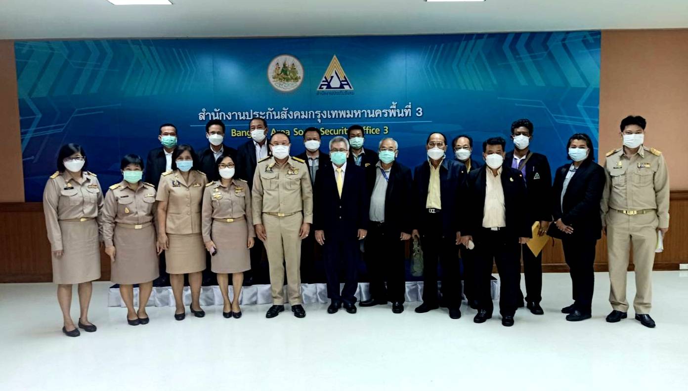 On February 21, 2022, at 10.00 hours, Labour Minister Mr. Suchart Chomklin assigned Assistant to the Labour Minister Mr. Surachai Chaitrakulthong as chairperson of the meeting with the Thailand Labour Organization. The Labour Minister’s Advisor Mr. Manas Kosol, Deputy Permanent Secretary of Labour, Mrs. Tongjai Suthat Na Ayutthaya, the Department of Skill Development’s Deputy Director-General, Ms. Pailin Jindamaneeporn, the Social Security Office’s Deputy Secretariat Mrs. Natchanon Chaithawornpong and the Ministry of Labour’s executives joined the meeting. The meeting considered the minimum wage, the annual wage structure, and the payment of social security pensions when insured persons retire to cover ongoing medical expenses. It also discussed issues in establishing a risk insurance fund to assist employees if employers close their businesses and canceling the NCPO’s announcements that exercise the employer’s right to amend work regulations without passing through the Department of Labour Protection and Welfare’s Director-General. The occasion took place at the meeting room of the Bangkok Social Security Office Area 3, Ministry of Labour.