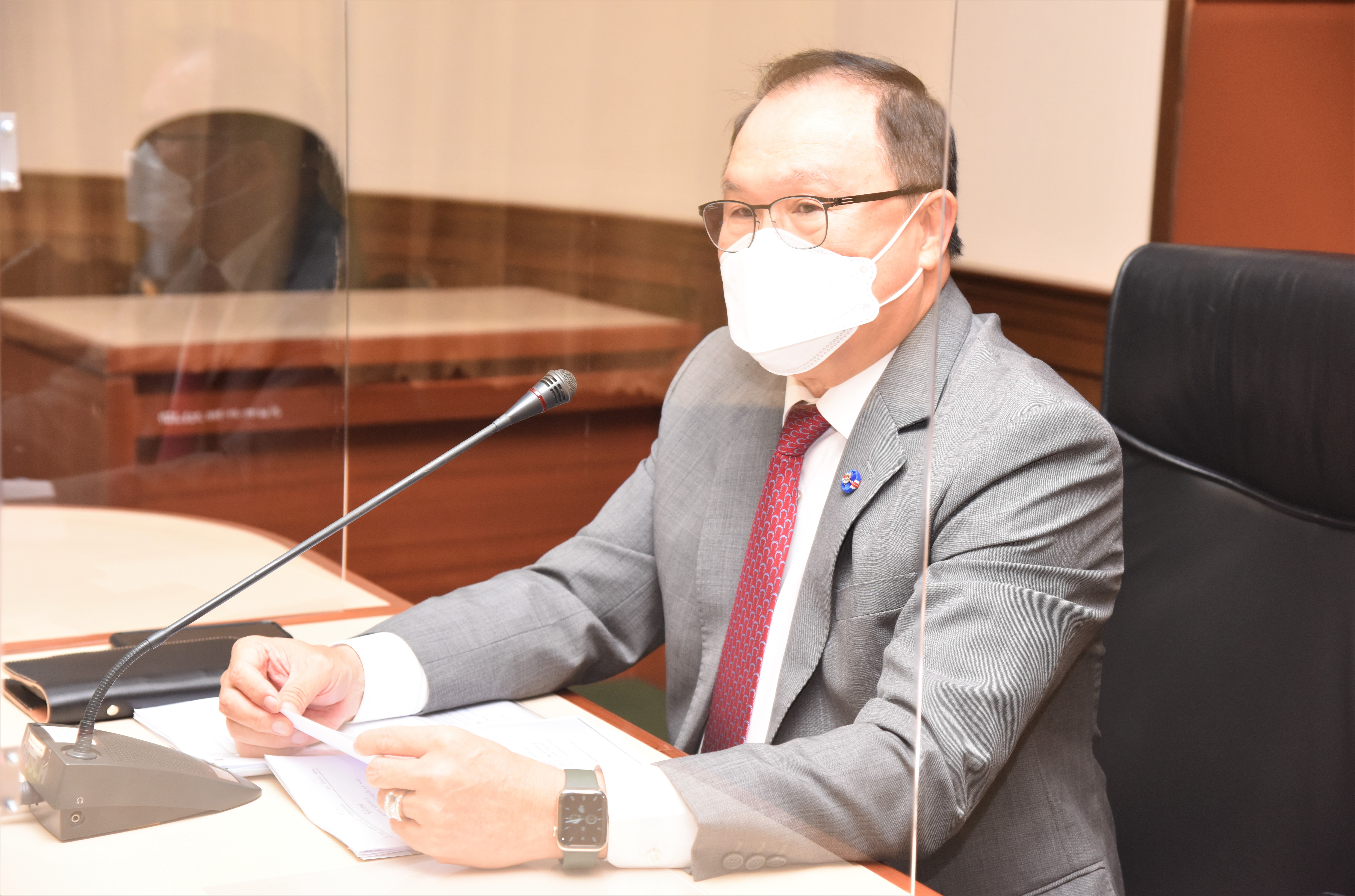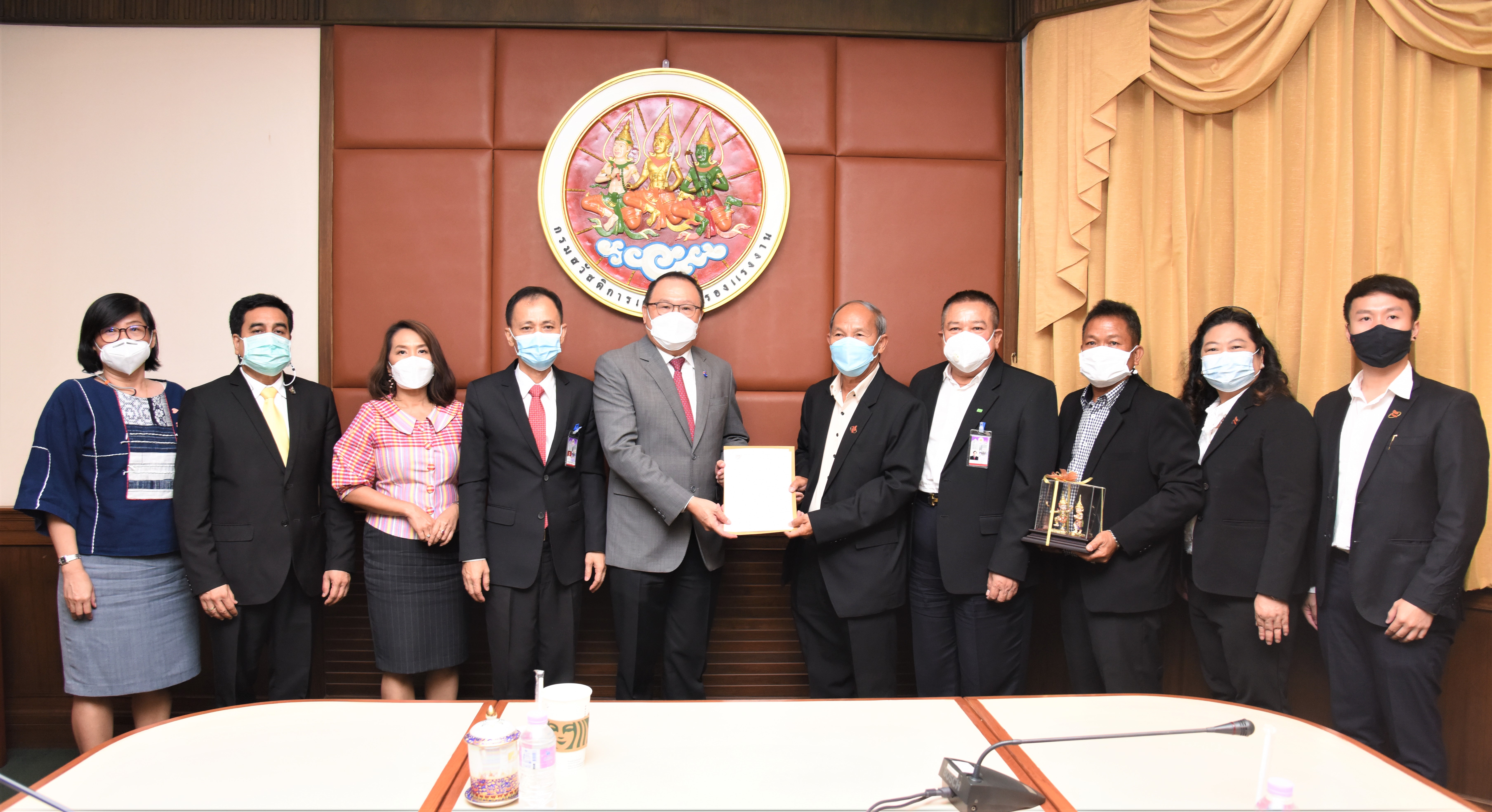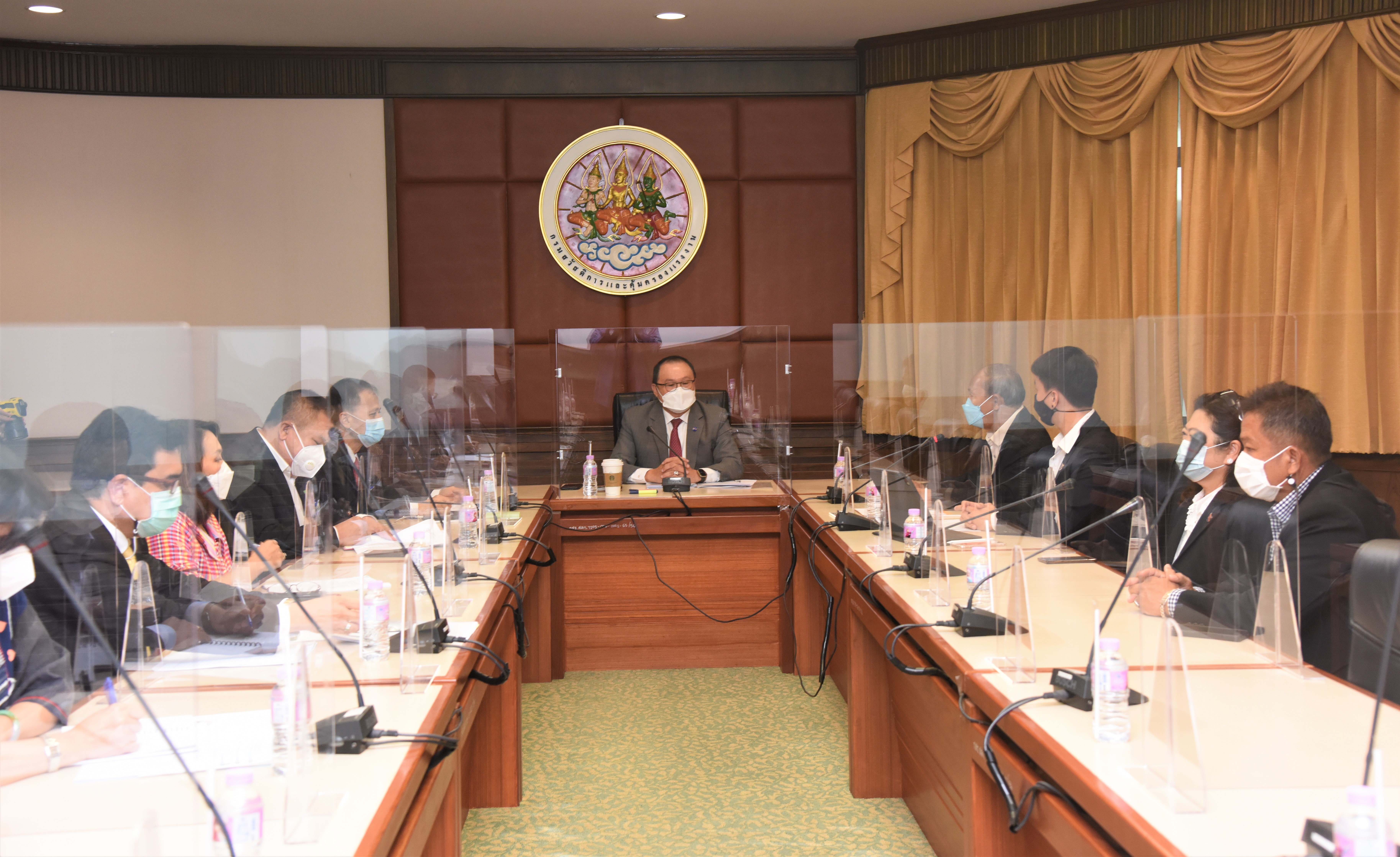 On July 6, 2021, Labour Minister Mr. Suchart Chomklin assigned Assistant to the Labour Minister Mr. Surachai Chaitrakulthong, to represent the Labour Minister in receiving a complaint letter from Mr. Suthichai Piyaratanaworasakul, President of the Crane Operators Association and committee, regarding the impact caused by the CCSA’s measures to close construction worker camps. The measure aims to restrict the traveling and movement of workers in the six dark red provinces, namely Bangkok, Pathum Thani, Nonthaburi, Samut Sakhon, Samut Prakan, and Nakhon Pathom month to control the spread of COVID-19. Advisors to the Labour Minister Air Chief Marshal Fuengsak Ruangkol, Dr. Thongyu Kongkhan, and the Ministry of Labour’s executives also joined the occasion at the Mitmaitri Conference Room 2, 5th floor, Ministry of Labour.