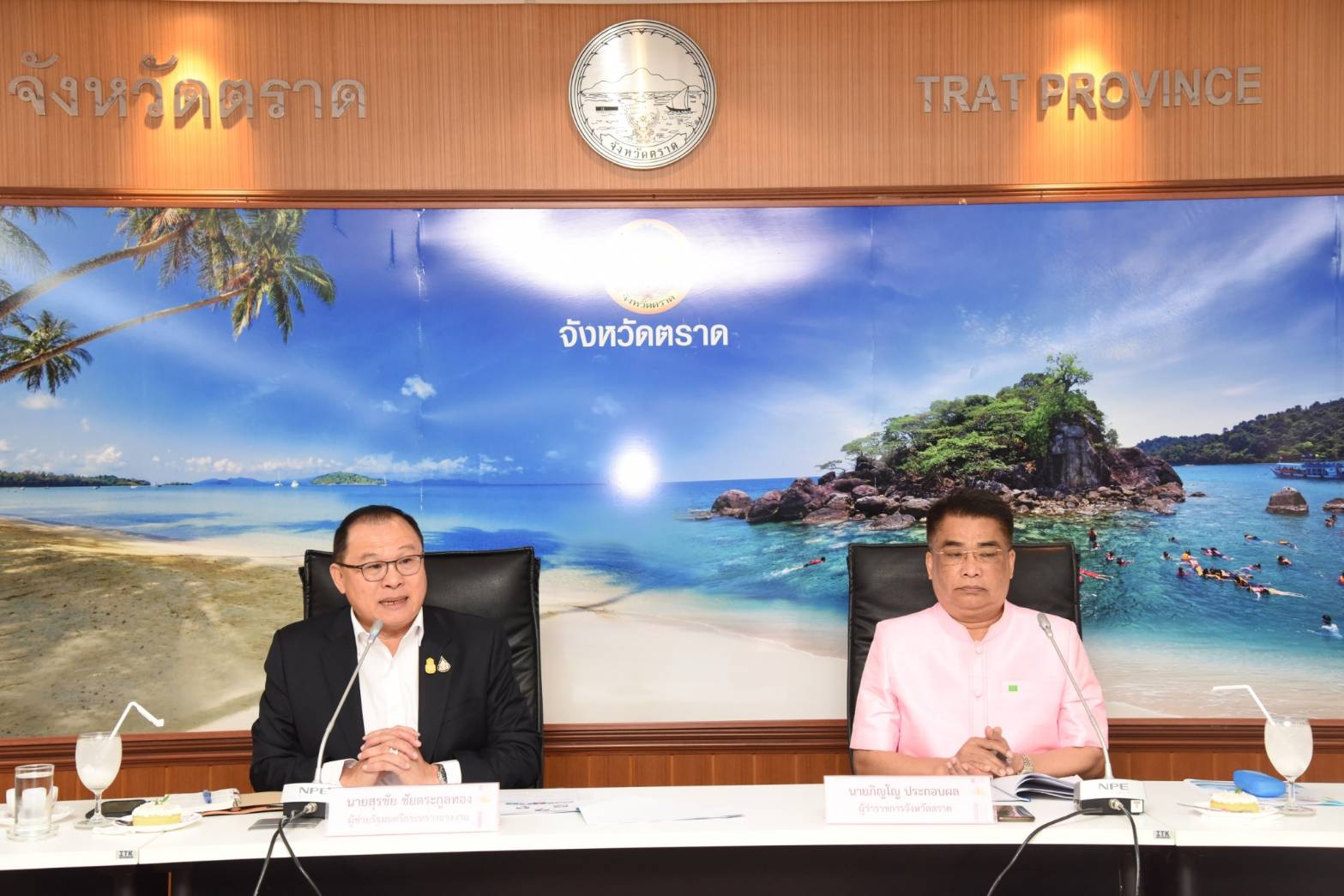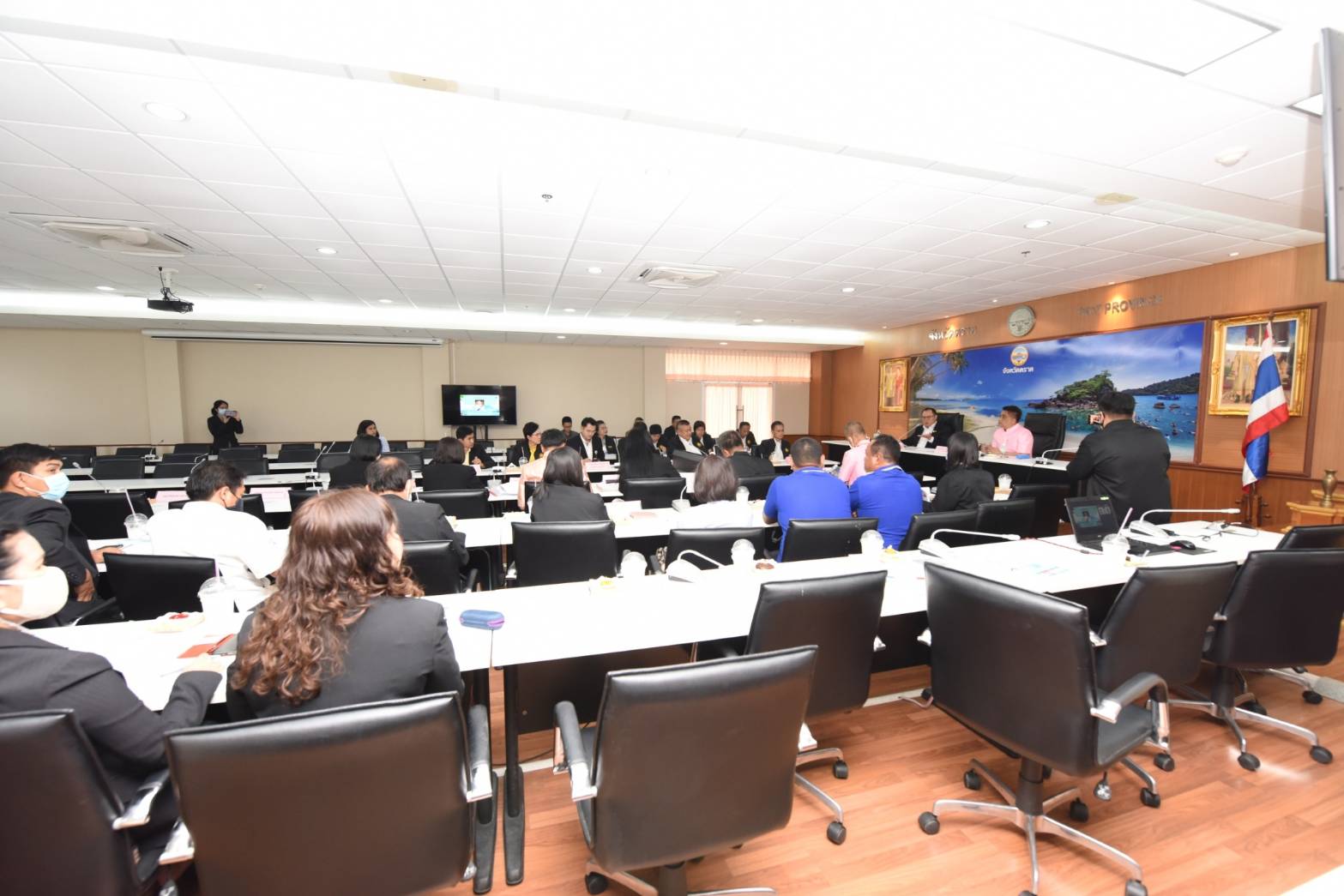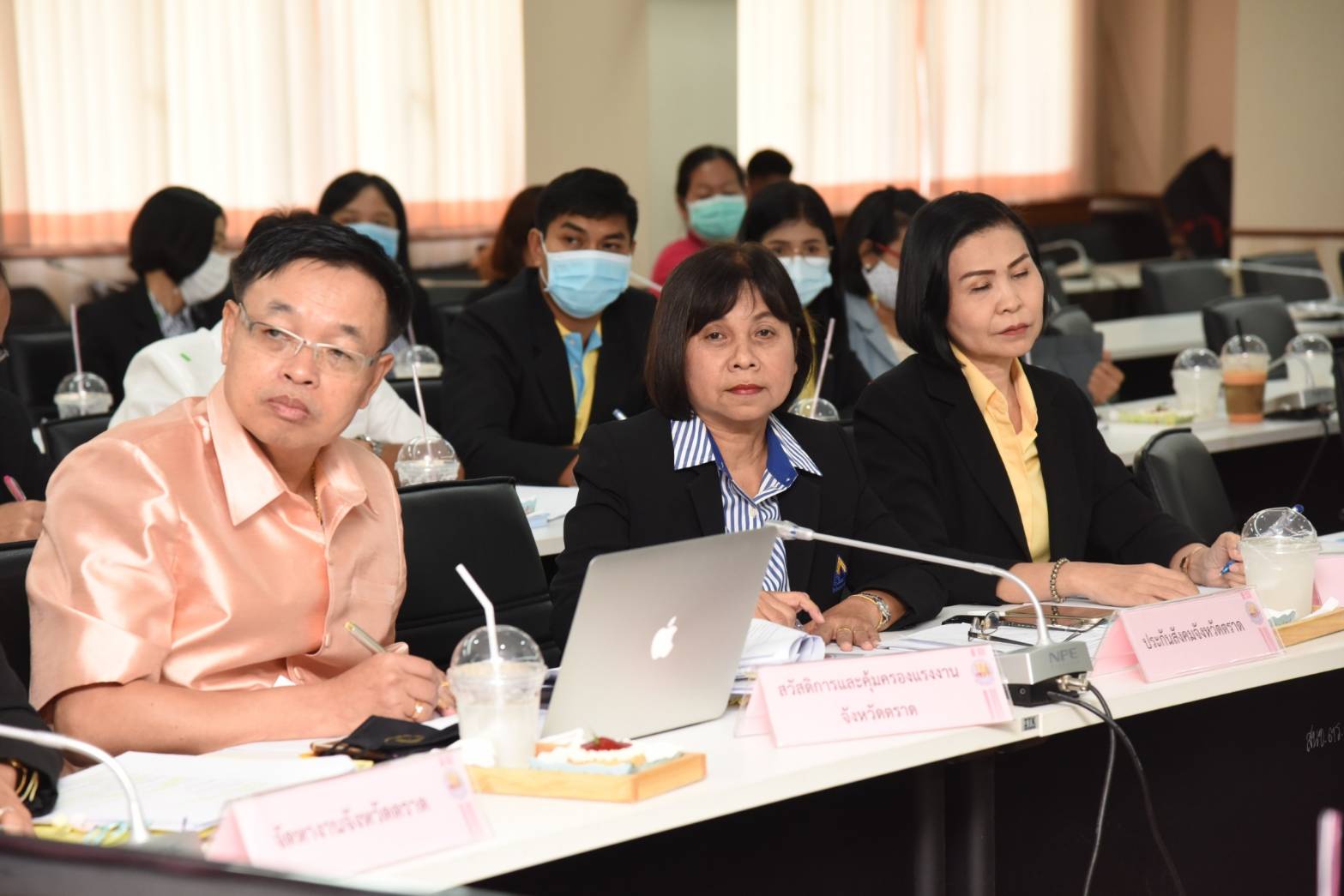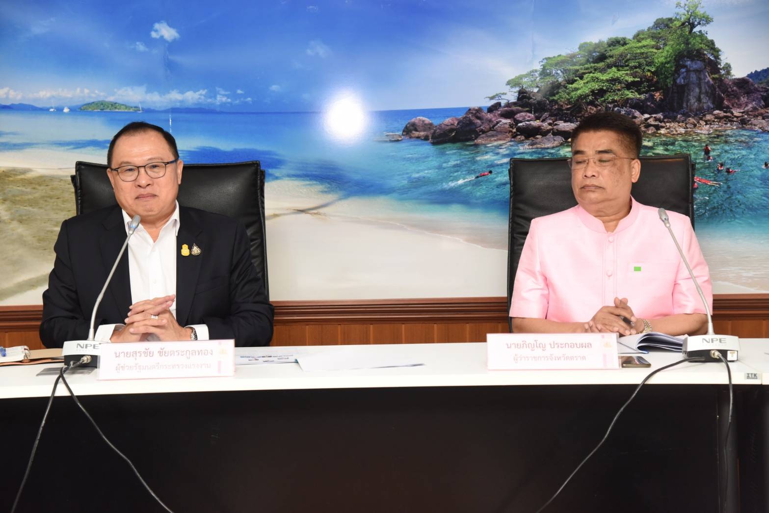 On November 24, 2020, at 13.10 hours, Labour Minister Mr. Suchart Chomklin assigned Assistant to the Labour Minister Mr. Surachai Chaitrakulthong to chair the meeting of the head of government agencies under the Ministry of Labour in Trat province, to monitor the Minister of Labour’s missions, along with delivering the Ministry of Labour’s policies for 2021. The meeting also followed up on resolving labor problems following the orders by Prime Minister and Minister of Defense General Prayuth Chan-ocha, and Deputy Prime Minister General Prawit Wongsuwan. Trat Provincial Governor Mr. Pinyo Prakobphol and Trat Deputy Provincial Governor Mr. Nataphong Sanguanchit gave welcoming at the Ploy Daeng meeting room, 4th floor, Trat City Hall.