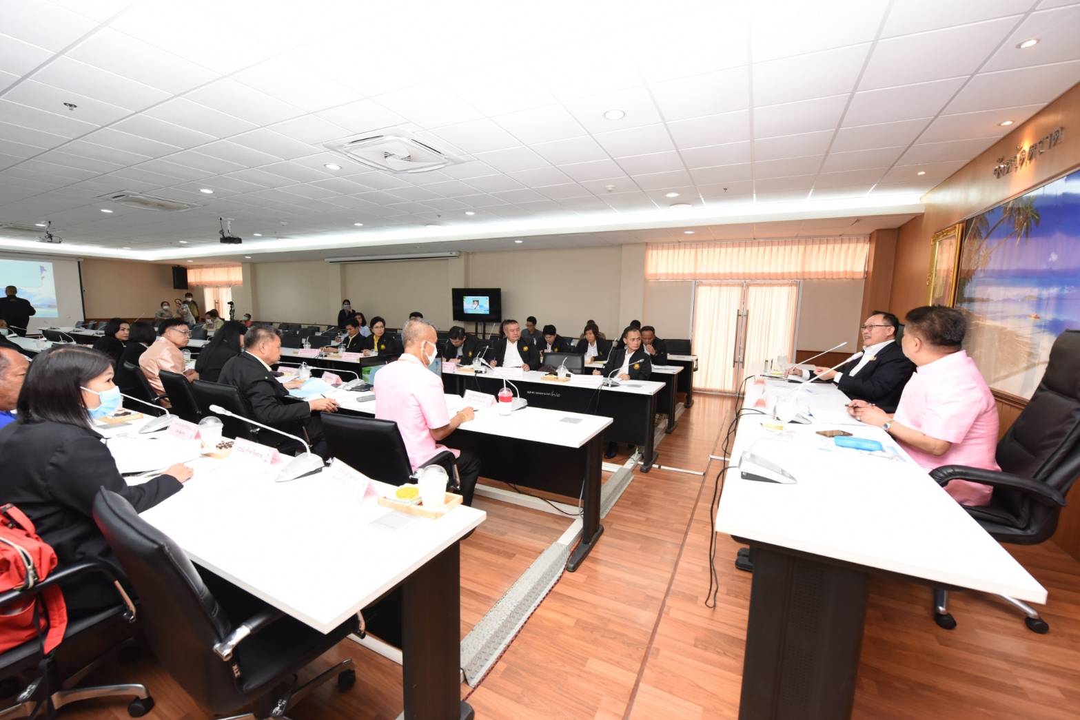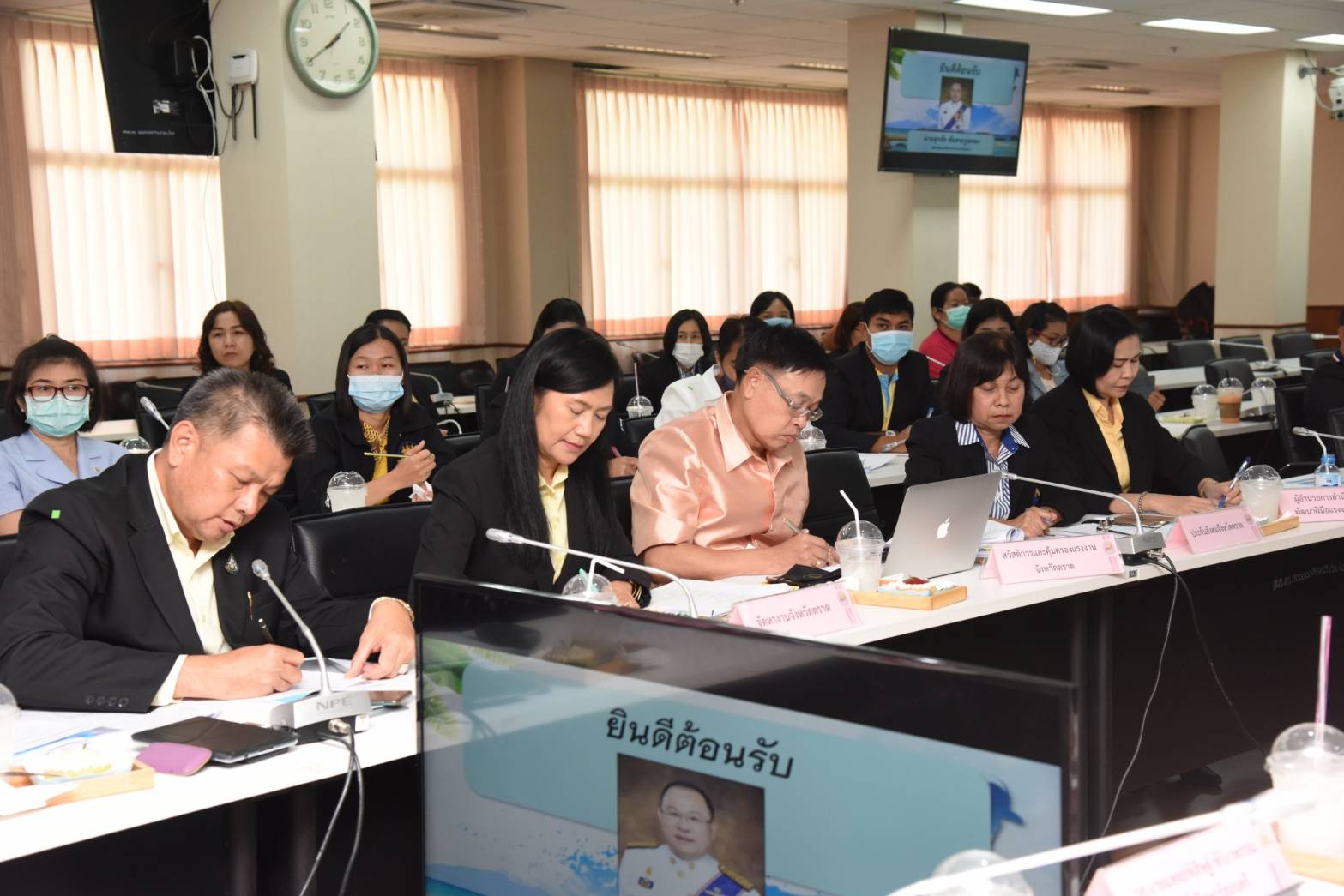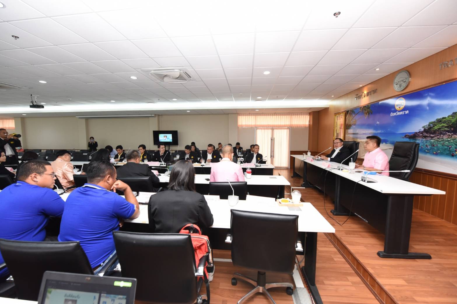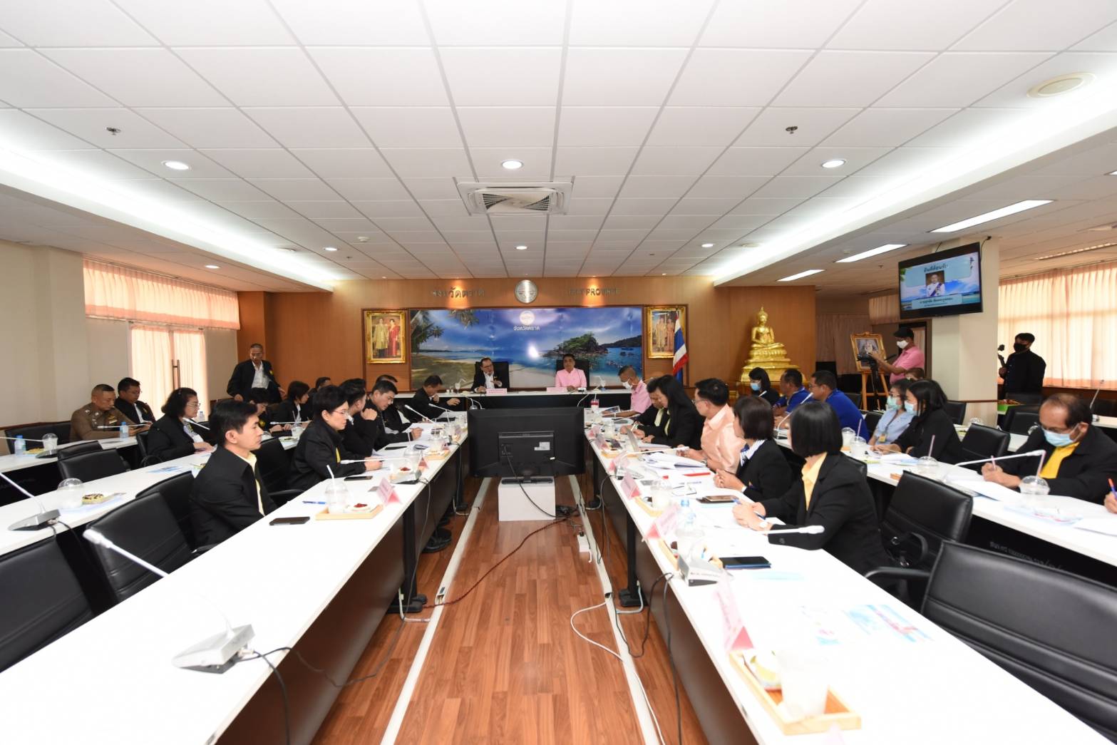 On November 24, 2020, at 13.10 hours, Labour Minister Mr. Suchart Chomklin assigned Assistant to the Labour Minister Mr. Surachai Chaitrakulthong to chair the meeting of the head of government agencies under the Ministry of Labour in Trat province, to monitor the Minister of Labour’s missions, along with delivering the Ministry of Labour’s policies for 2021. The meeting also followed up on resolving labor problems following the orders by Prime Minister and Minister of Defense General Prayuth Chan-ocha, and Deputy Prime Minister General Prawit Wongsuwan. Trat Provincial Governor Mr. Pinyo Prakobphol and Trat Deputy Provincial Governor Mr. Nataphong Sanguanchit gave welcoming at the Ploy Daeng meeting room, 4th floor, Trat City Hall.
