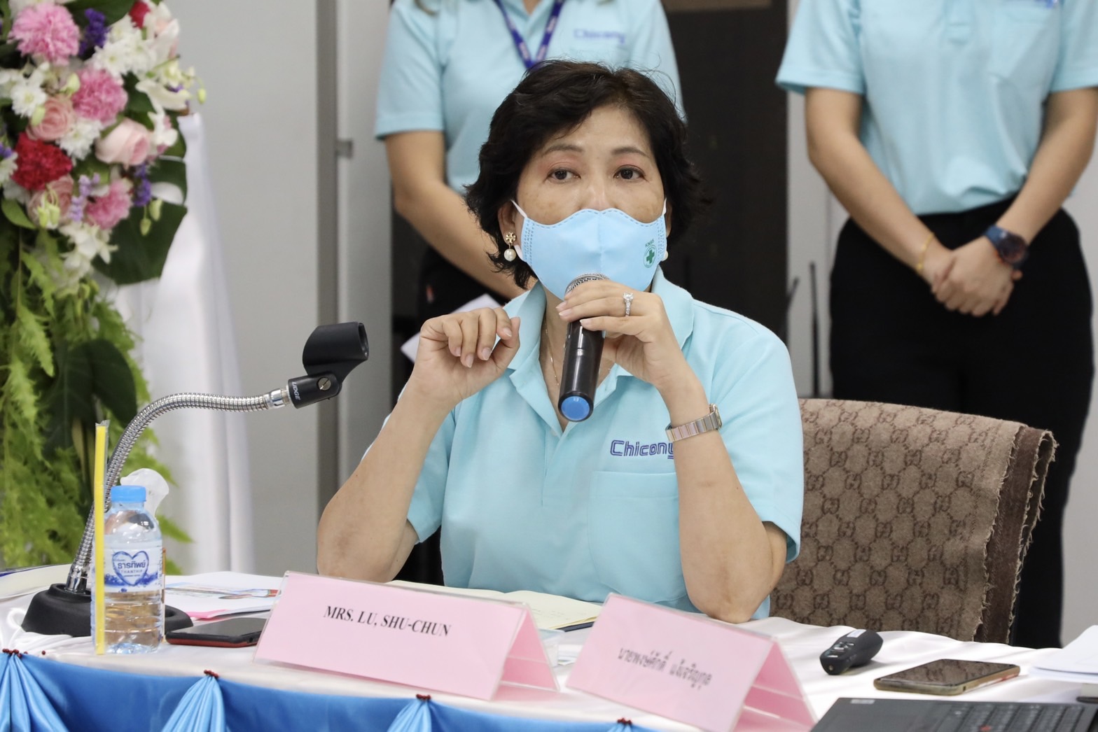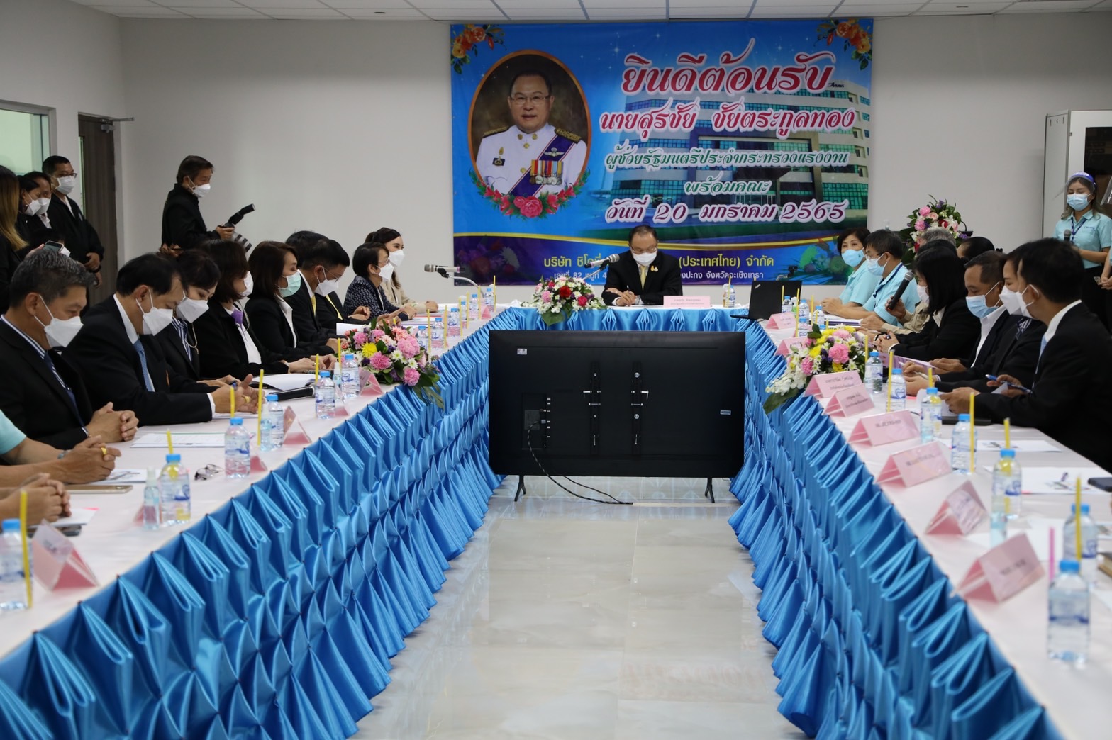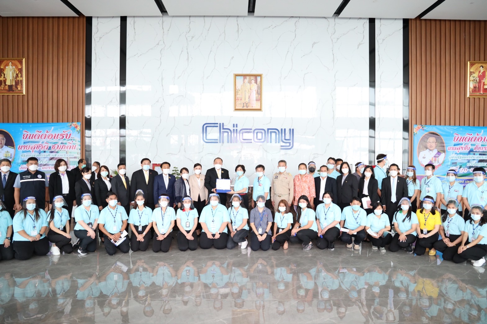 On January 20, 2022, Labour Minister Mr. Suchart Chomklin assigned Assistant to the Labour Minister Mr. Surachai Chaitrakulthong to visit Chiconi Electronics (Thailand) Co., Ltd., in Bang Pakong District, Chachoengsao Province. The company imports raw materials, materials, equipment, and spare parts to produce computer peripherals and software. This visit was attended by the Labour Minister’s Advisor, Mrs. Thiwalrat Angkinan, the Ministry of Labour’s Spokesperson (on politics), Mrs. Theanrat Nawamawat, along with the Ministry of Labour’s senior executives. Mrs. Lu Su Chun, Chairman of Chiconi Electronics (Thailand) Co., Ltd., and Mr. Surachai Thammanon, Bang Pakong District Chief, gave a welcoming.
