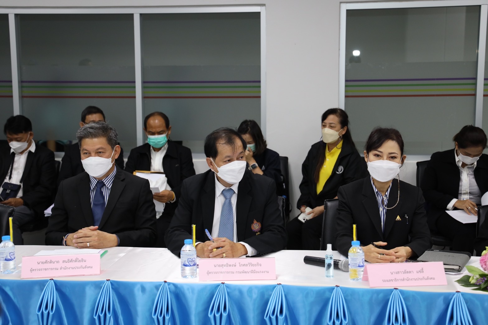 Mr. Surachai said that the government under the leadership of Prime Minister and Minister of Defense General Prayuth Chan-ocha, and the Ministry of Labour under the supervision of Deputy Prime Minister General Prawit Wongsuwan, are concerned for the people and those affected by the COVID-19 situation. The Ministry of Labour has been instructed to help and remedy those affected by the pandemic. The Ministry of Labour has launched various important measures, including proactive screening with RT-PCR 100% under the “Workforce Fighting Together” project, remedies for Section 33 insured persons through the “Section 33 We Love Each Other” project, remedies to insured persons under Sections 33, 39 and 40, in 29 provinces, reduced contributions, increased unemployment benefits and projects to promote and maintain employment levels in SMEs, the Factory Sandbox project and the establishment of vaccination centers for Section 33 insured persons.
