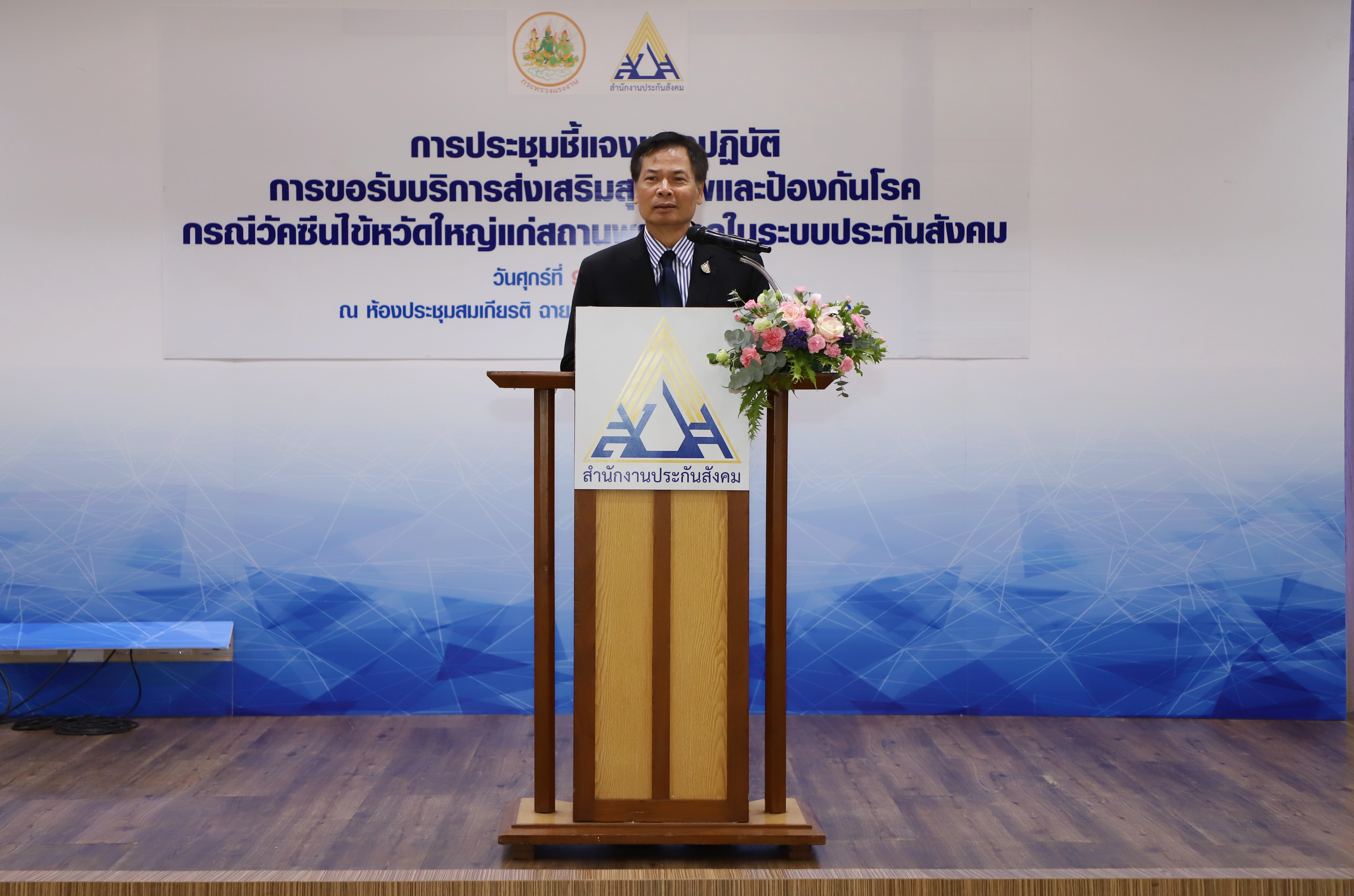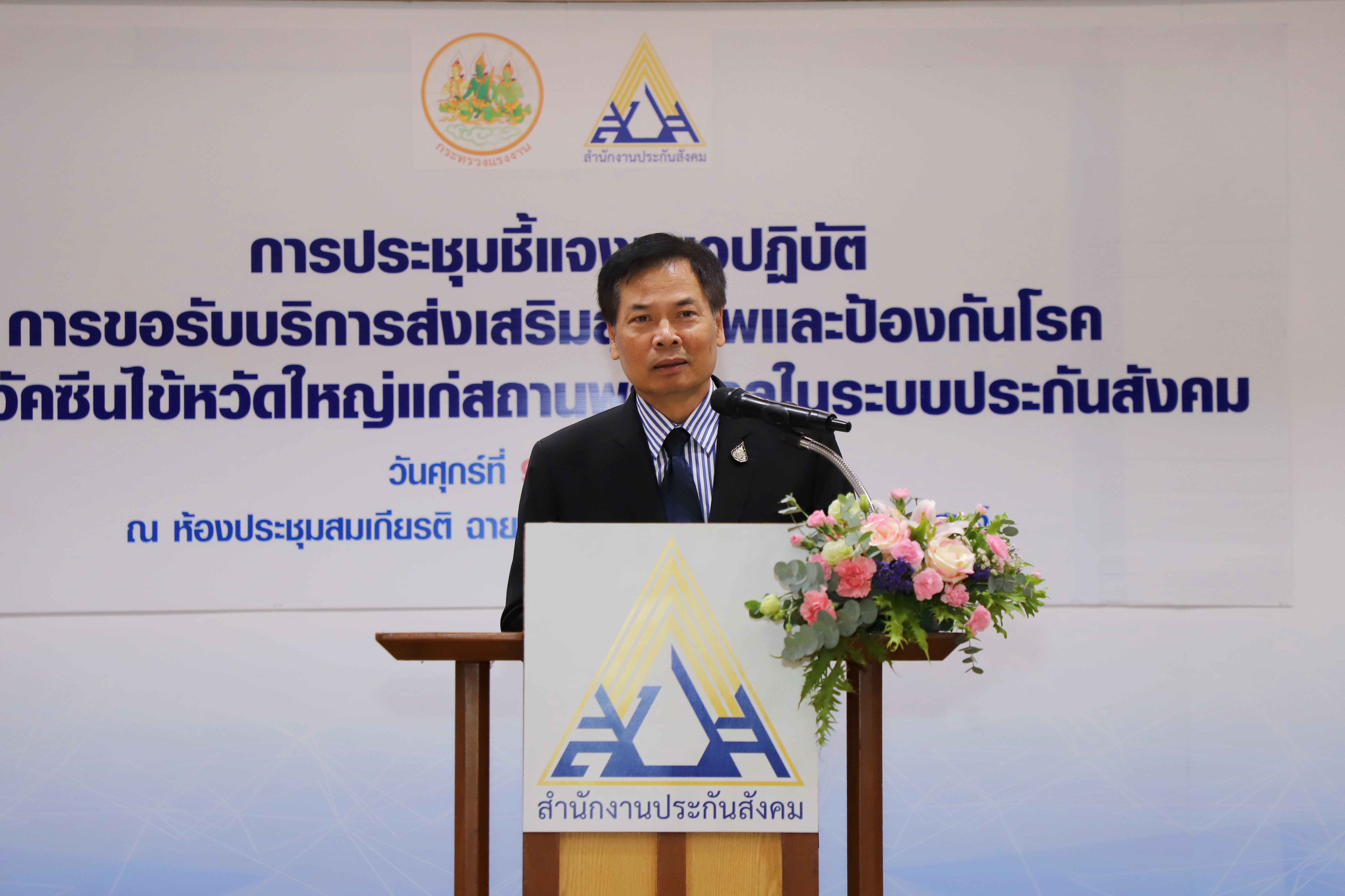 Labour Minister Mr. Suchart Chomklin assigned the Ministry of Labour’s Secretary-General Mr. Suthep Chitvong to commence a meeting to clarify guidelines on requesting health promotion and disease prevention services for the influenza vaccine to hospitals in the social security system. The objective is to build immunity among employers/insured persons to help businesses have a competent workforce prepared to work, reducing the chance of sick leaves for medical treatment and the burden of medical care expenses.