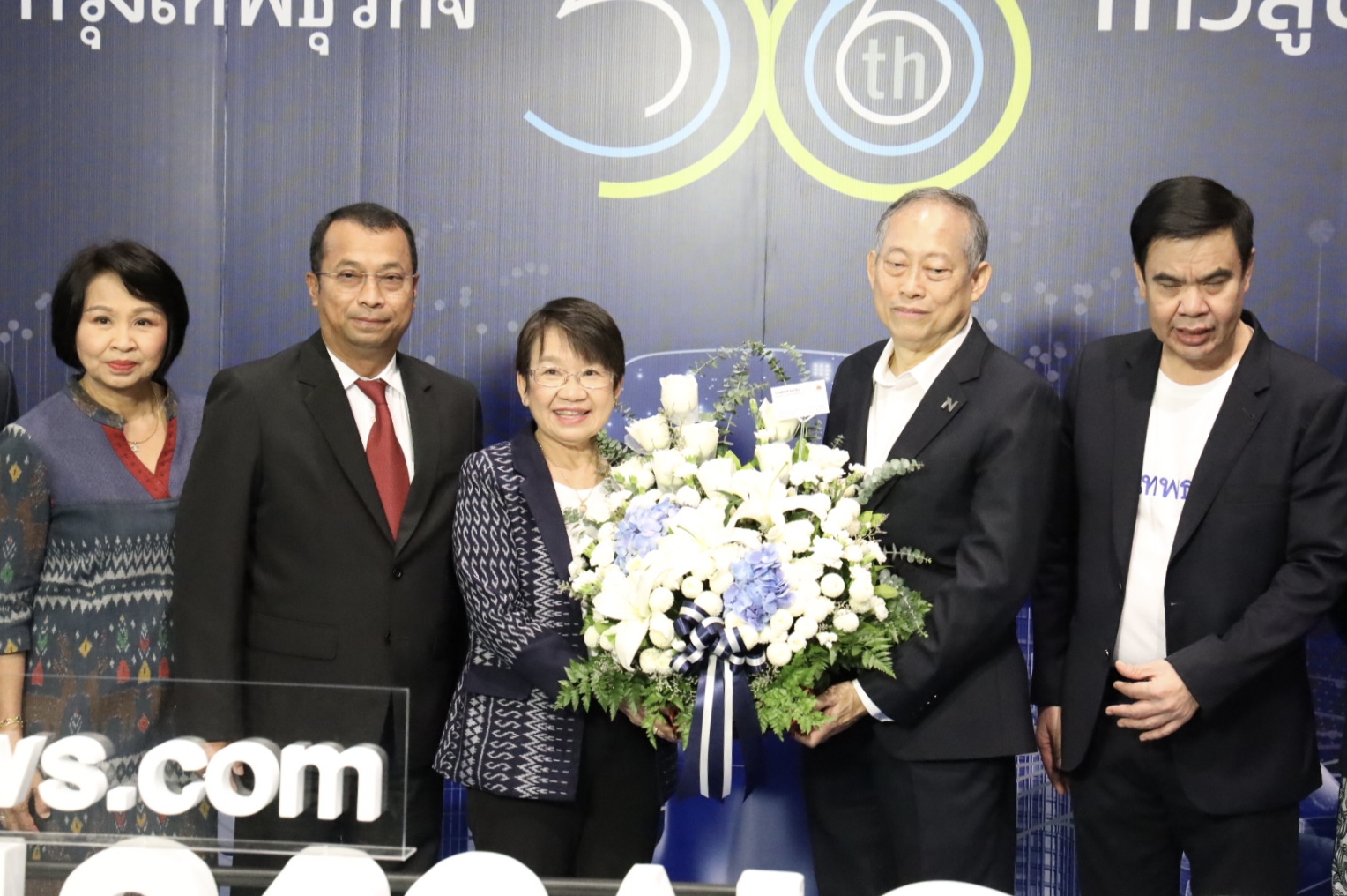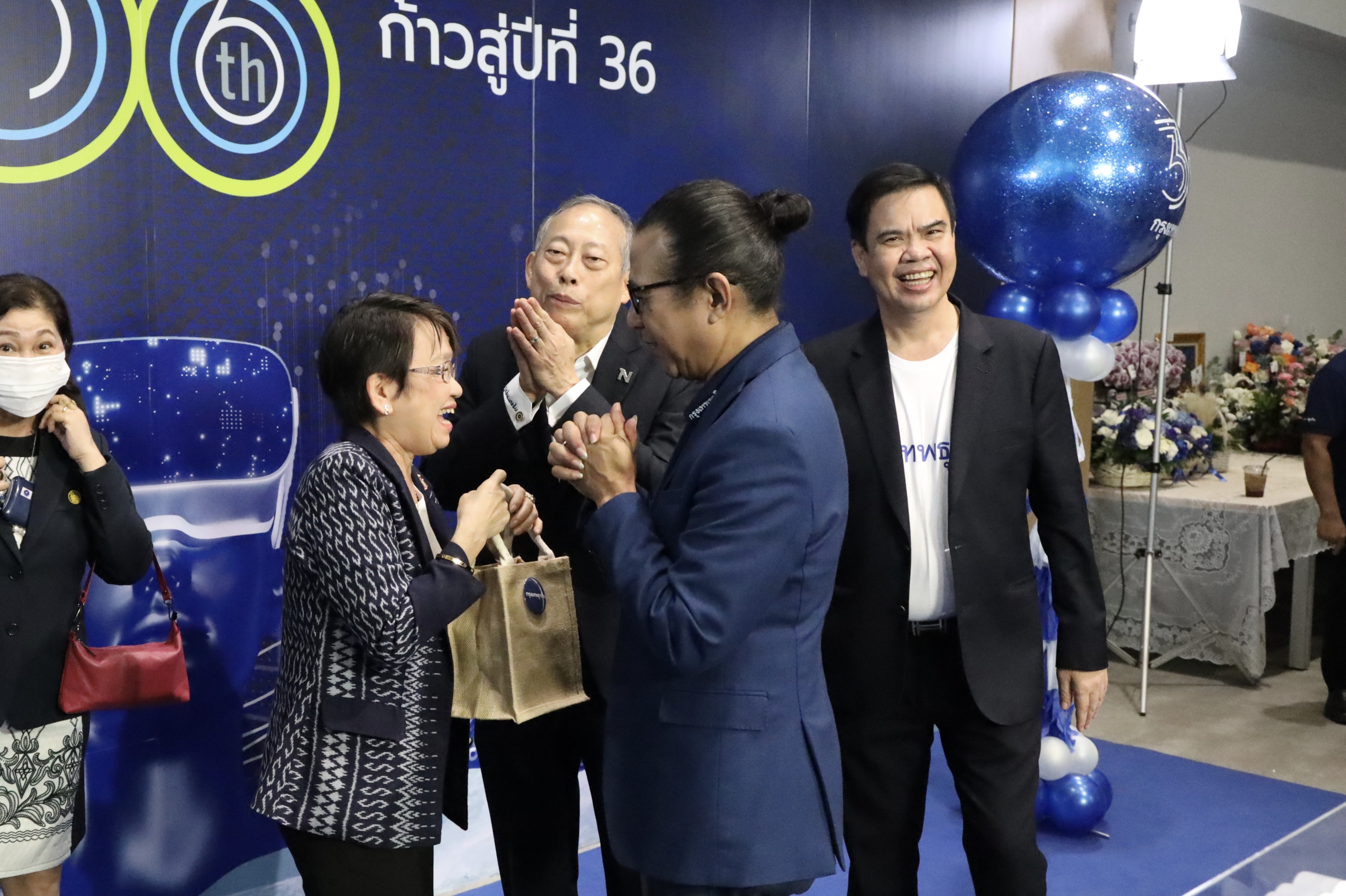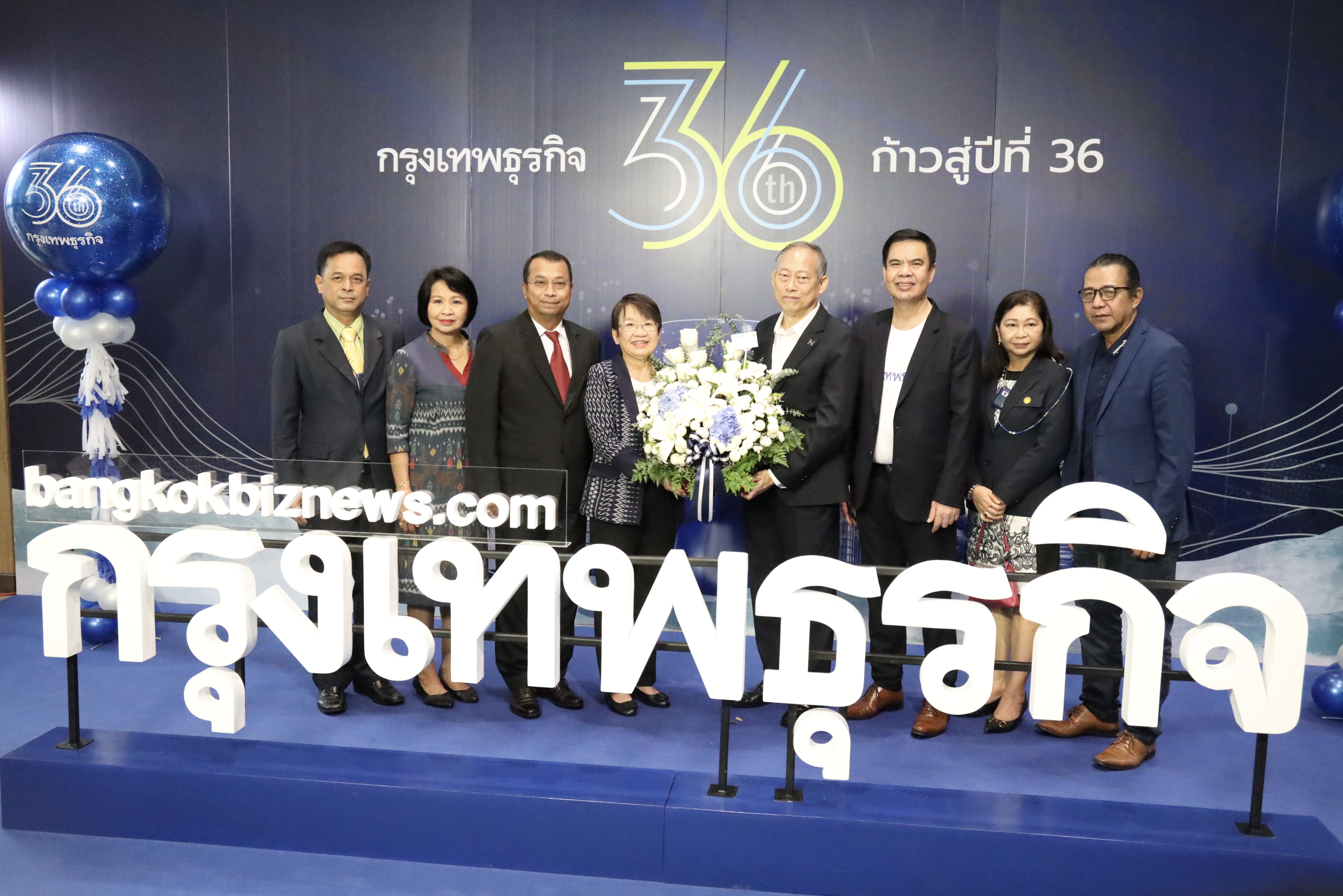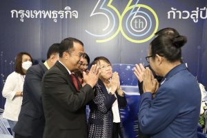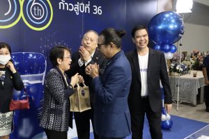 On October 6, 2022, at 10.00 hours, the Labour Minister, Mr. Suchart Chomklin, assigned the Ministry of Labour’s Spokesperson (on Politics), Mrs. Thienrat Navamawat, to lead the Ministry of Labour’s executive team to present a flower basket to congratulate Krungthep Turakij on its 35th anniversary, and the start of its 36th year. Executive Editor of Krungthep Turakij, Mr. Weerasak Phongaksorn, received the flowers. The Deputy Permanent Secretary of Labour, Mr. Wannarat Srisuksai, and the Ministry of Labour’s executives joined the occasion on the 1st floor, Interlink Building 1, Bangna-Trad Road, Bangna District, Bangkok.
