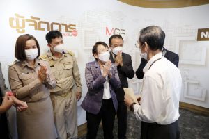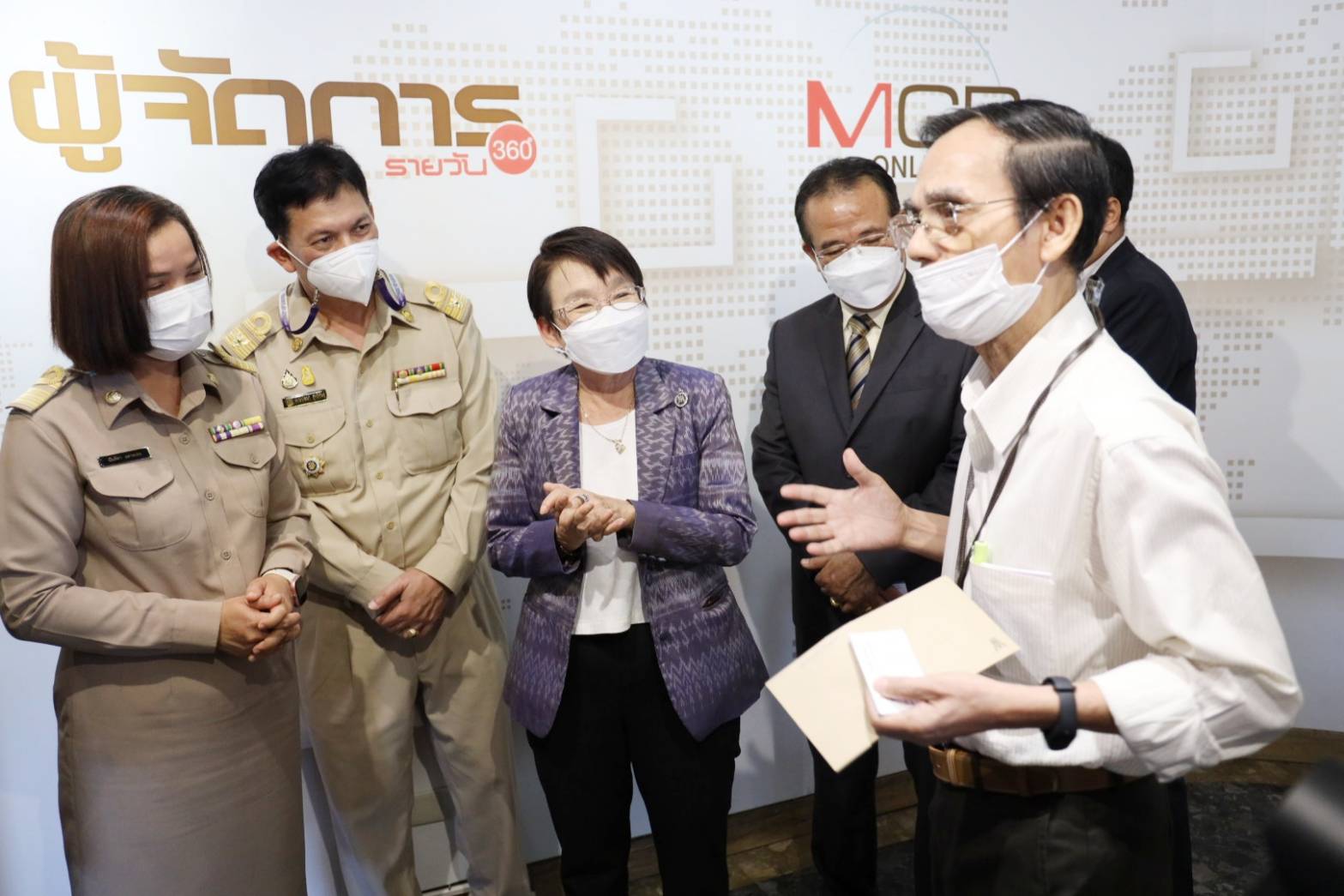 On November 7, 2022, at 13.30 hours, the Labour Minister, Mr. Suchart Chomklin, assigned the Ministry of Labour’s Spokesperson (on Politics), Mrs. Thienrat Navamawat, to lead the Ministry of Labour’s management team to present a flower basket to congratulate Manager Daily on their 15th anniversary, stepping into their 15th anniversary. The Manager Daily Editor-in-Chief, Dr. Suwat Thongthanakul, was the recipient on this occasion. The Department of Employment’s Inspector-General, Mr. Sibmuenchai Phothisin, the Department of Labour Protection and Welfare’s Inspector-General, Mr. Krirkkrai Nasomyont, and representatives from the Office of the Permanent Secretary of Labour, the Department of Skill Development and the Social Security Office joined to congratulate them at the Chao Phraya House, Phra Athit Road, Chana Songkhram Subdistrict, Dusit District, Bangkok.