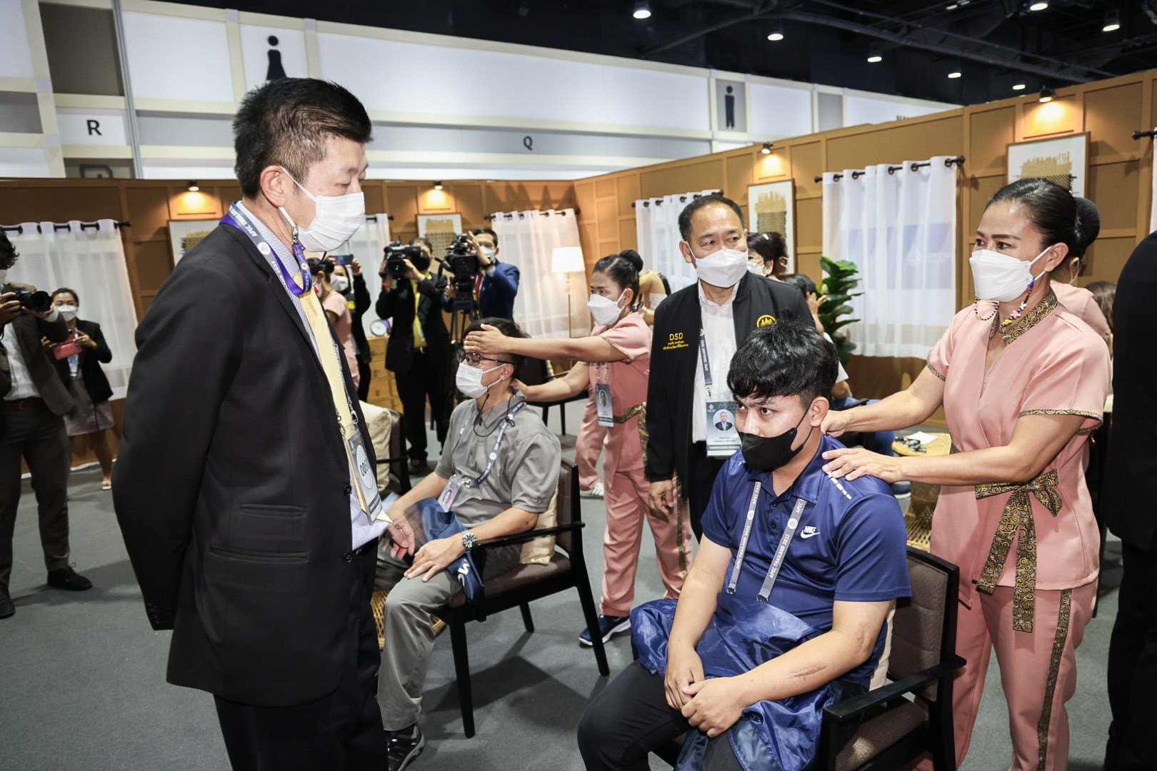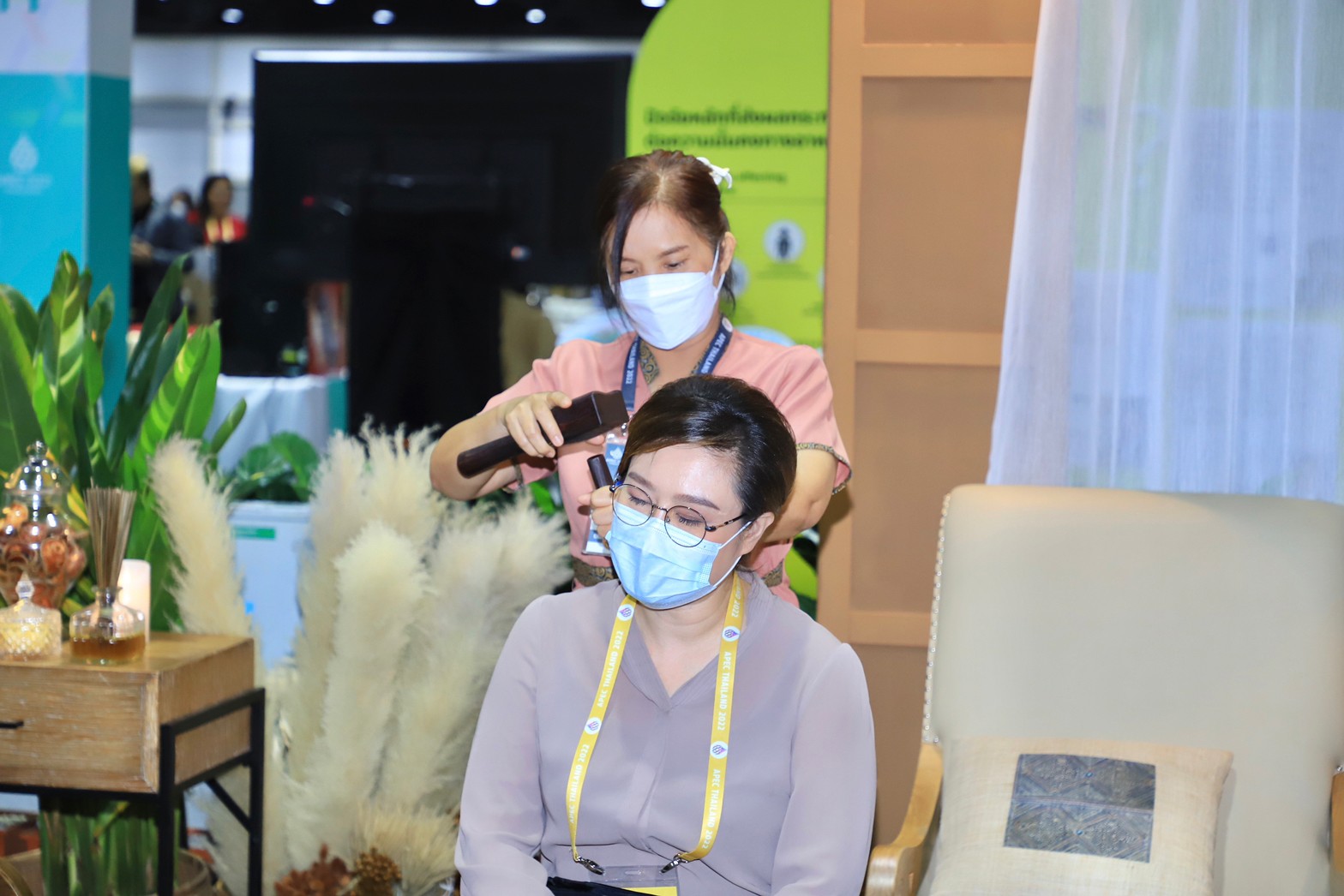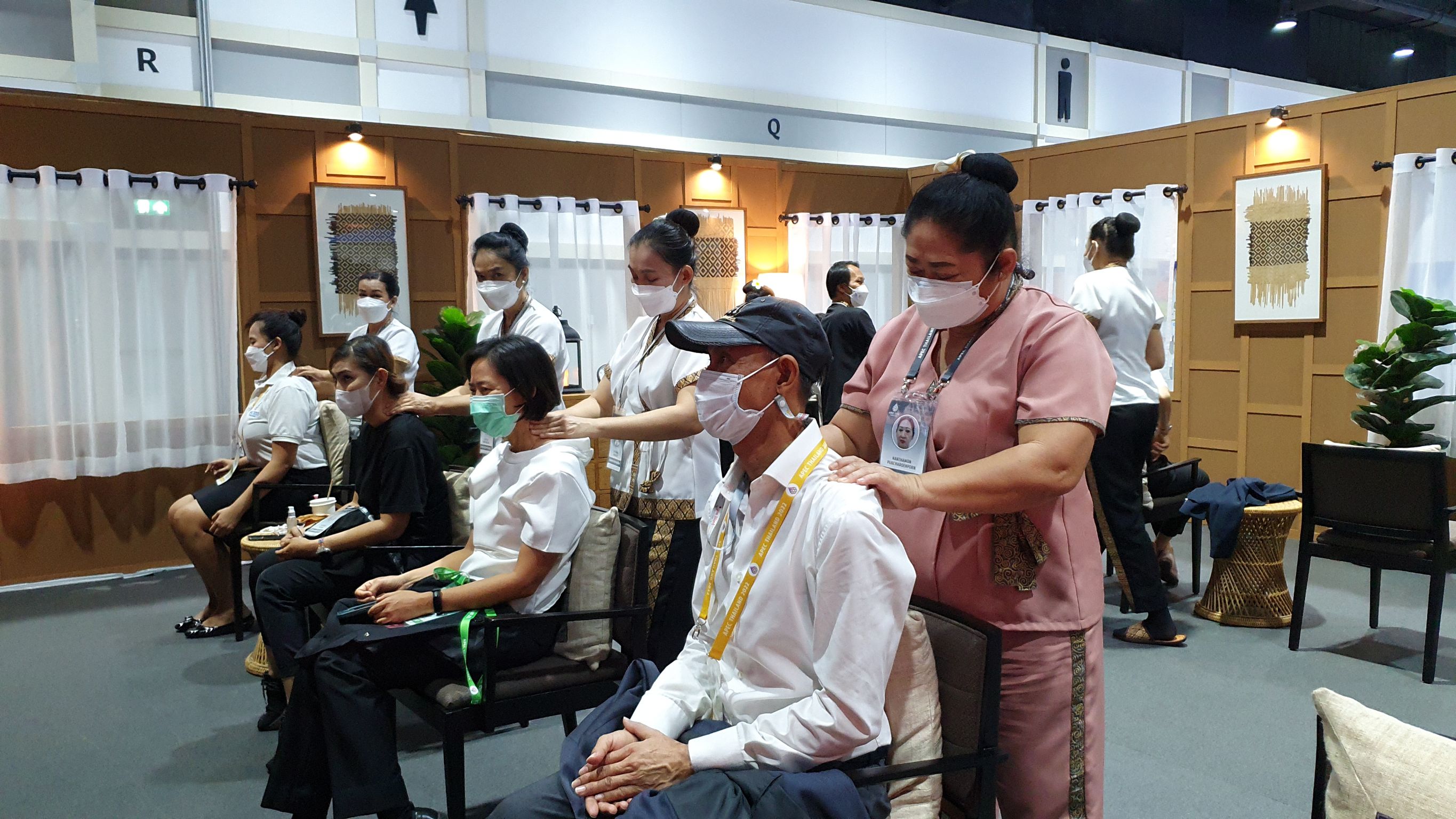 Mr. Boonchob continued that from today’s visit, which is the last day of the services, he found that over the past five days, 1,739 people have received the wellness massage services in the APEC event, comprising 1,338 Thai people and 260 foreigners, and another 141 staff. From meeting and talking with the foreign press covering the APEC meetings, who had a massage, for example, a Saudi journalist, they admired and were impressed by the Thai massages and called this activity ‘The Best.’ Another person was a French journalist who said that in Paris in France, Thai massages are also available, but the skills cannot compete with the original massage in Thailand. The feedback and outcome of organizing the Thai wellness massage and spa activities at the APEC meeting will result in employment, especially in the business and service sectors. It also raises the standard of Thai massage skills to the global level. This will help Thai people have jobs, careers, and more income, and it will help increase the country’s competitiveness.