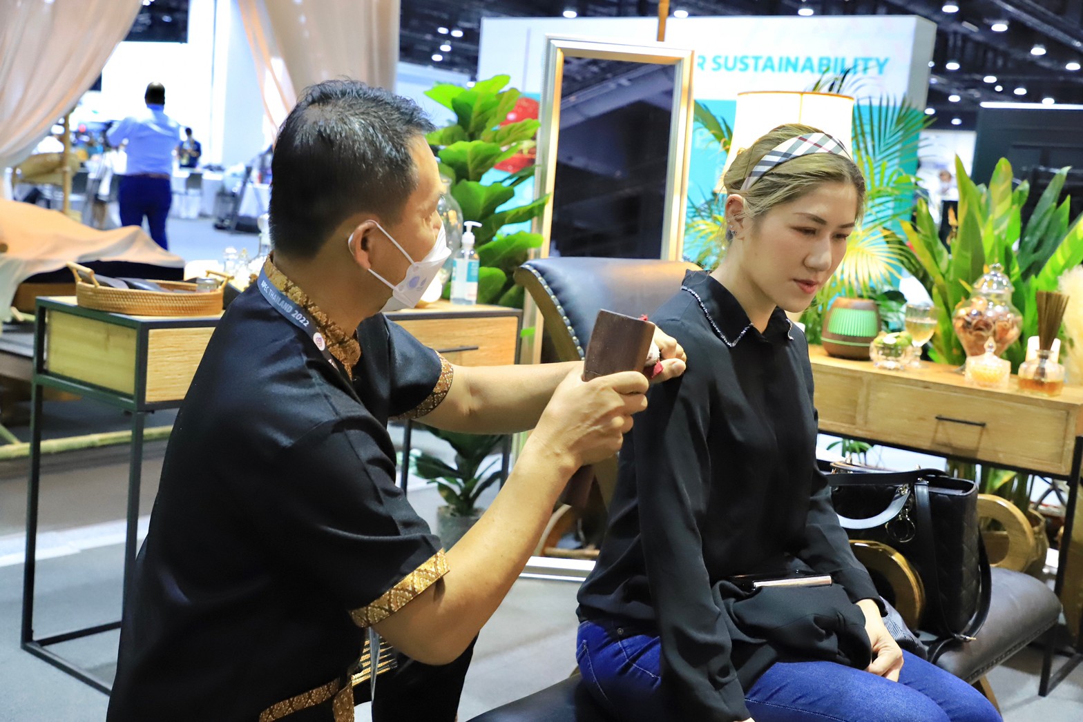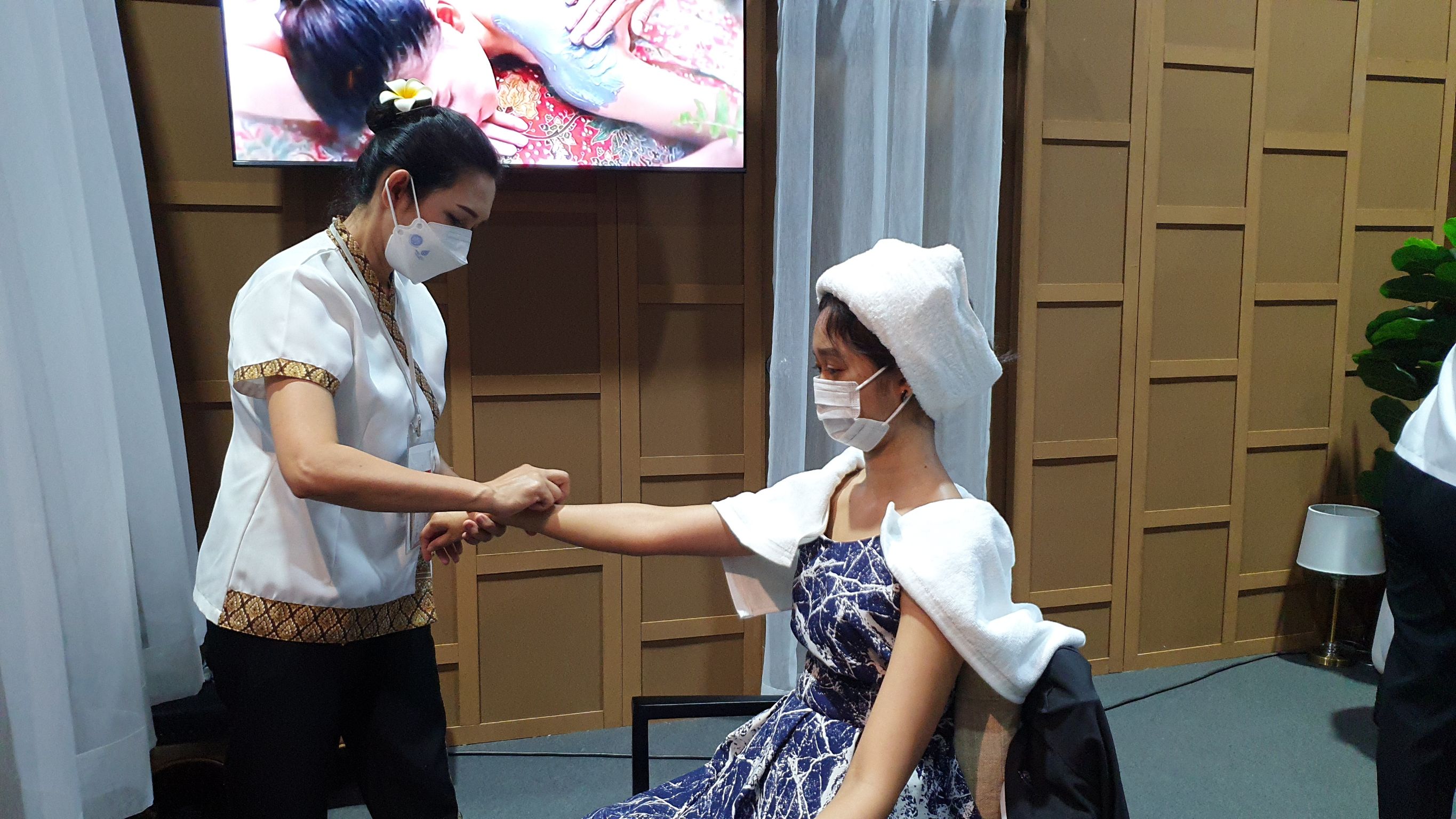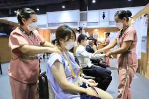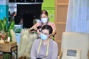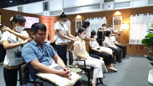 The Ministry of Labour’s Thai wellness massage and spa activities at the Queen Sirikit National Convention Center will be available for the last day today. The activities include neck and shoulder massage, Tok Sen massage, hot stone spa massage, making herbal products for Thai wellness massage and spa, such as compress making, and making healthy herbal drinks. Each day there were 50 masseuses from five agencies, including the Bangkok Institute of Skill Development 13, the Nonthaburi Skill Development Office, the Nakhon Nayok Skill Development Office, the Phra Nakhon Si Ayutthaya Skill Development Institute 15, and the Human Resource Development Institute for Health Service Industry, Chiang Mai Province. Each masseuse providing services has passed skills training in service standards, hospitality, and English skills in communicating with foreign clients and has taken the National Skills Assessment. The services are free and available 10 hours a day. The first group would offer services from 09.00 to 14.00 hours, and the second group from 14.00 to 19.00 hours.