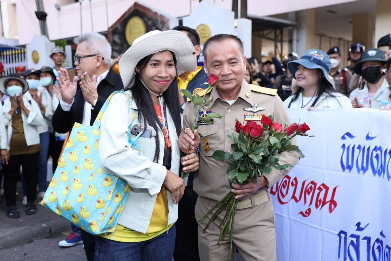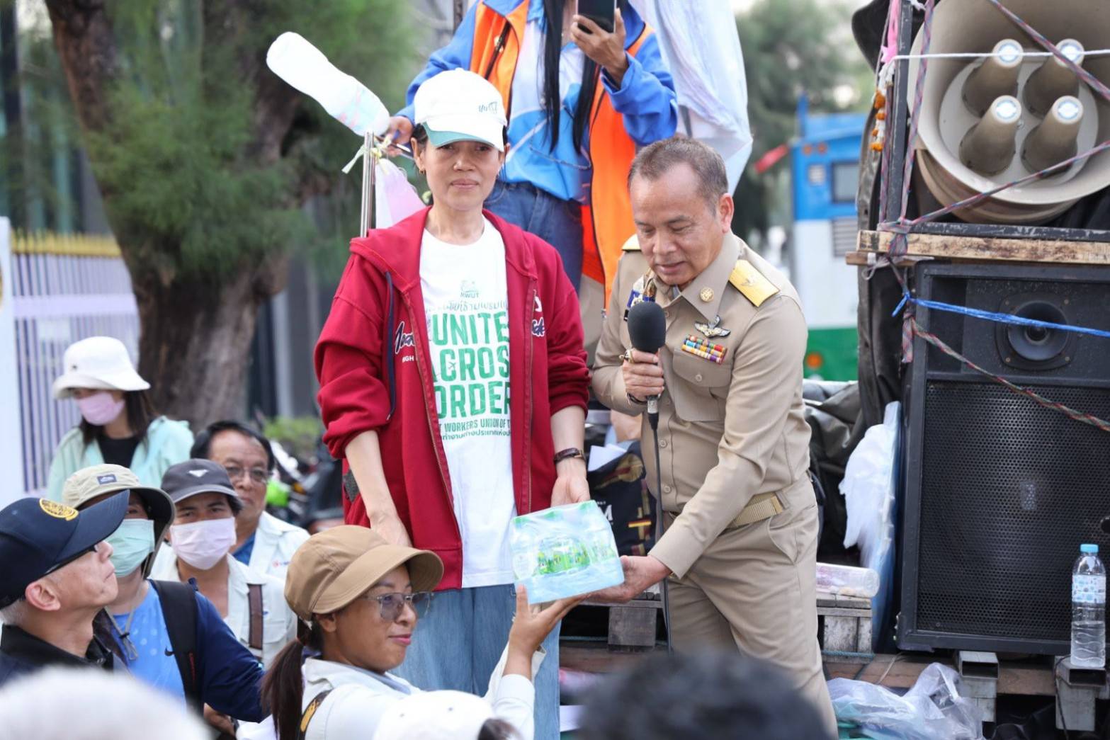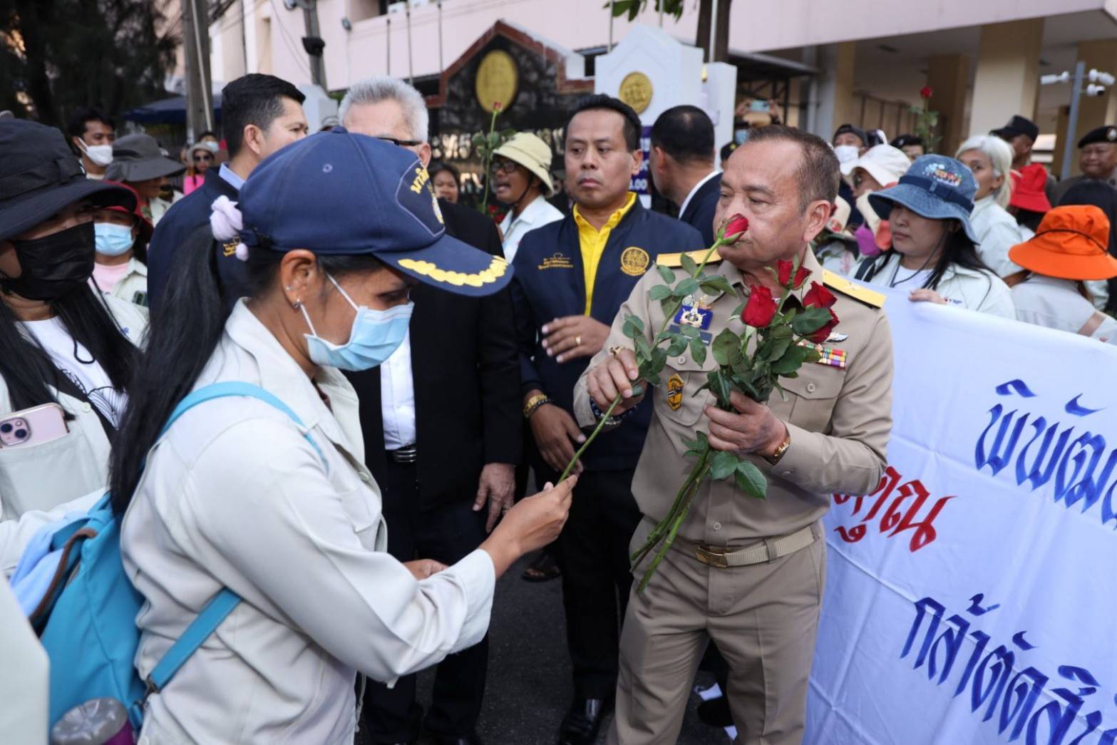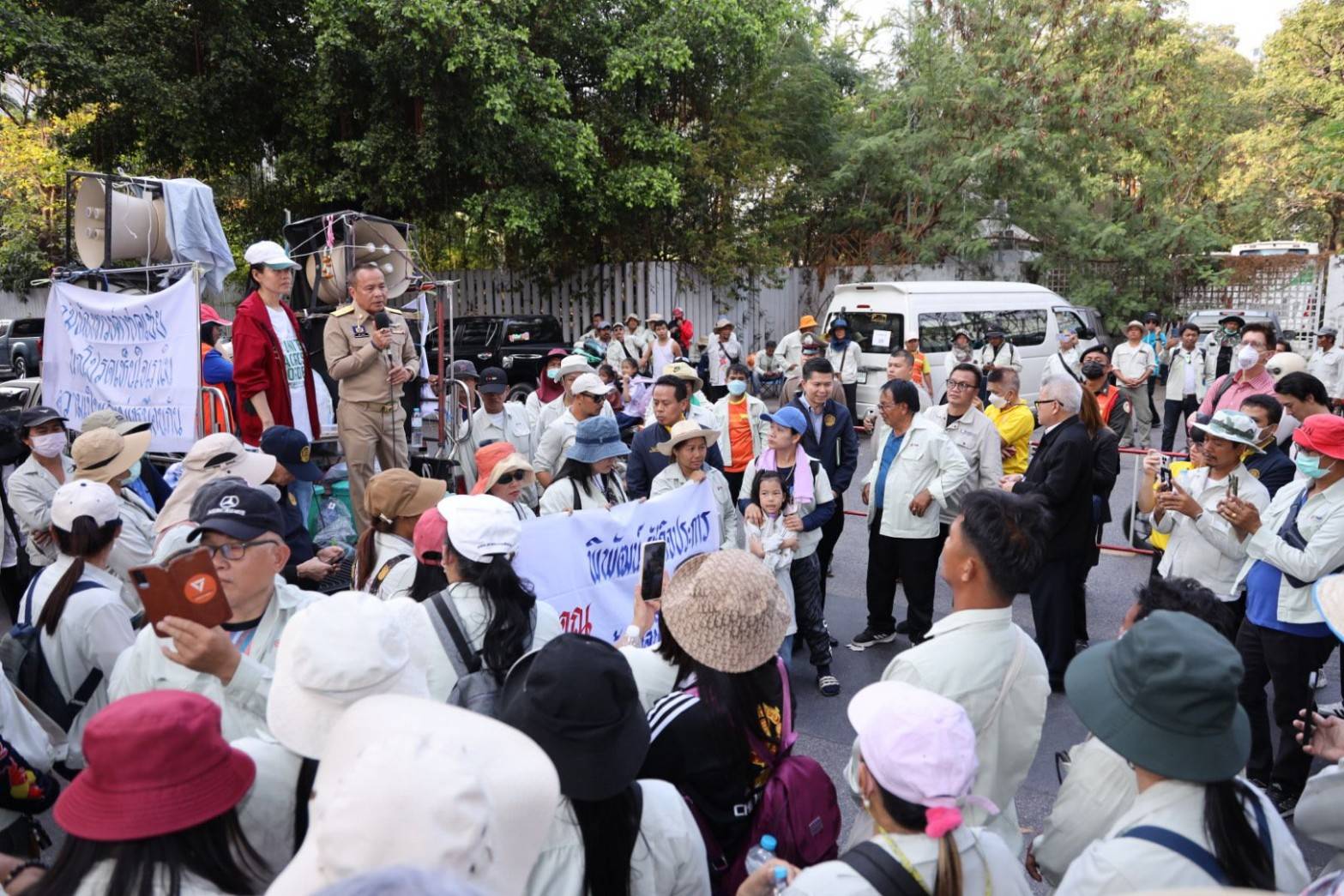 After receiving the flowers, Mr. Aree said that the Labour Minister cares about Thai workers affected by business closures and has no work to do. He said that he understood the situation, that the workers had made reports to the Ministry of Labour some time ago, and some compensation had been paid. However, it was still not enough, especially the salary. He said he understood the workers’ sentiments and that the Ministry of Labour is urgently coordinating with all relevant departments to find ways to support all those impacted.