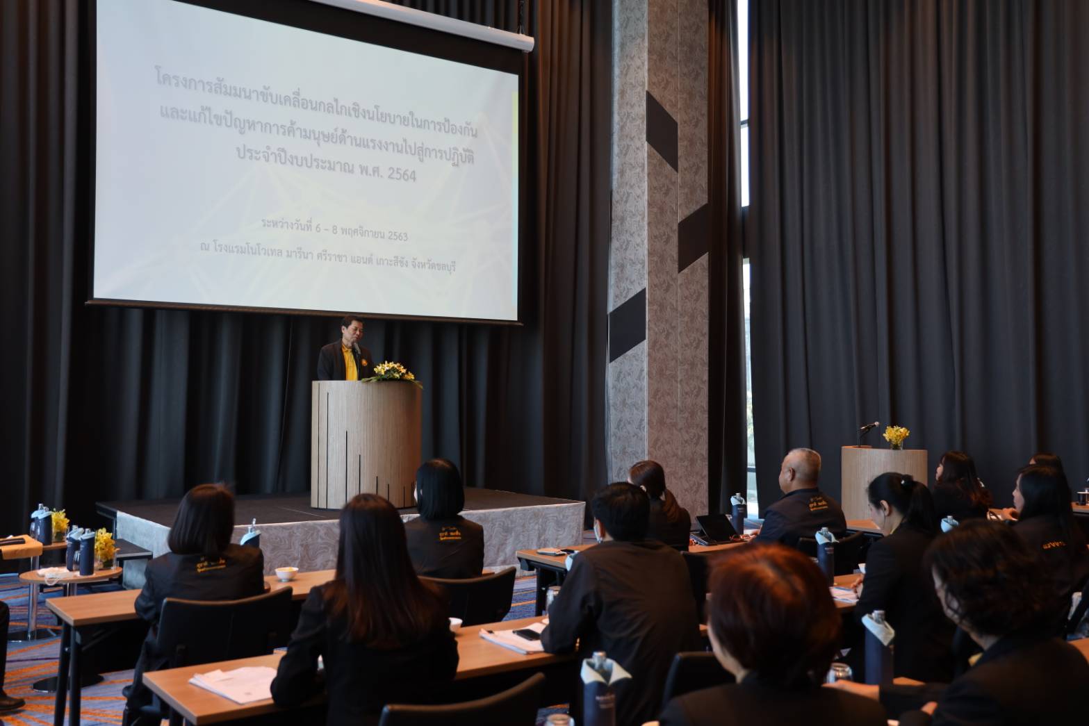 On November 6, 2020, Labour Minister Mr. Suchart Chomklin assigned the Labour Minister’s Secretary-General Mr. Suthep Chitayavong, to preside over the opening ceremony of the seminar to drive policy mechanisms on preventing and resolving the problem of human trafficking into action for 2021, at the Novotel Marina Sriracha and Koh Si Chang, Sriracha, Chonburi. Permanent Secretary Mr. Suthi Sukosol reported that the Labour Minister has said that Prime Minister General Prayuth Chan-ocha has emphasized sustainable eradication of human trafficking and forced labour from Thailand.