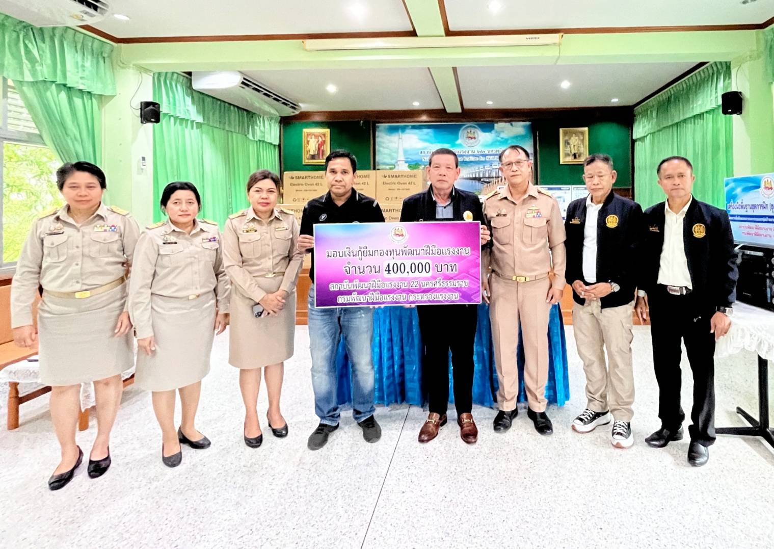 On August 27, 2024, the Labour Minister, Mr. Phiphat Ratchakitprakarn, assigned the Ministry of Labour’s Spokesperson, Mr. Phumiphat Mueanchan, to preside over the handover of a 400,000 Baht loan from the Skill Development Fund to Khao Mahachai Parawood Co., Ltd., with the Senior Director of Khao Mahachai Parawood Co., Ltd., Mr. Suwit Panbut, as the recipient. Advisors to the Labour Minister, Mr. Charan Khun-in and Major Prasert Saithongtae, also attended the event. The Director of Nakhon Si Thammarat Skill Development Institute 22, Mr. Wira Oun-ok, gave a warm welcome. The occasion took place at the Nakhon Si Thammarat Skill Development Institute 22.