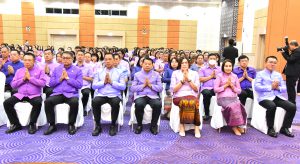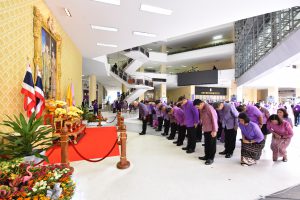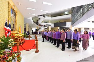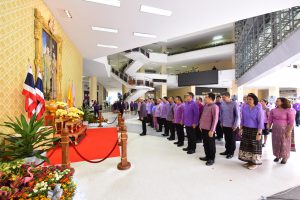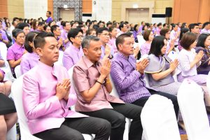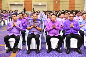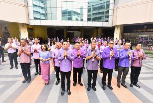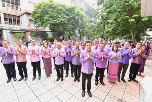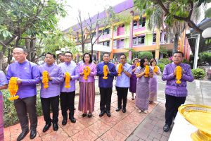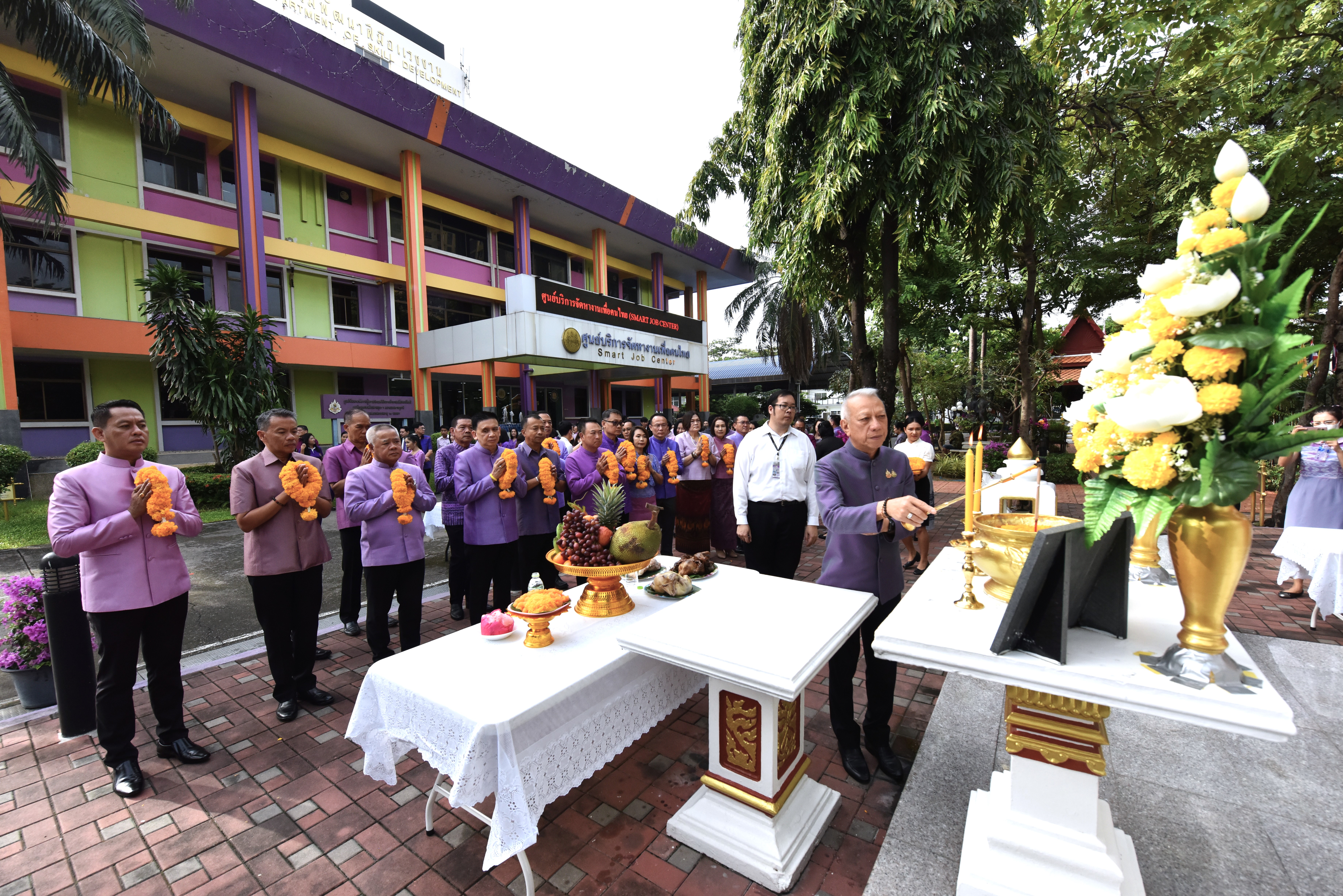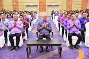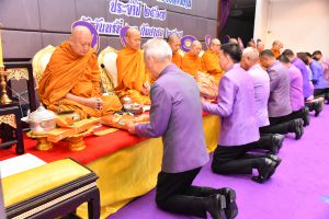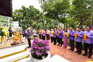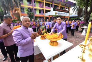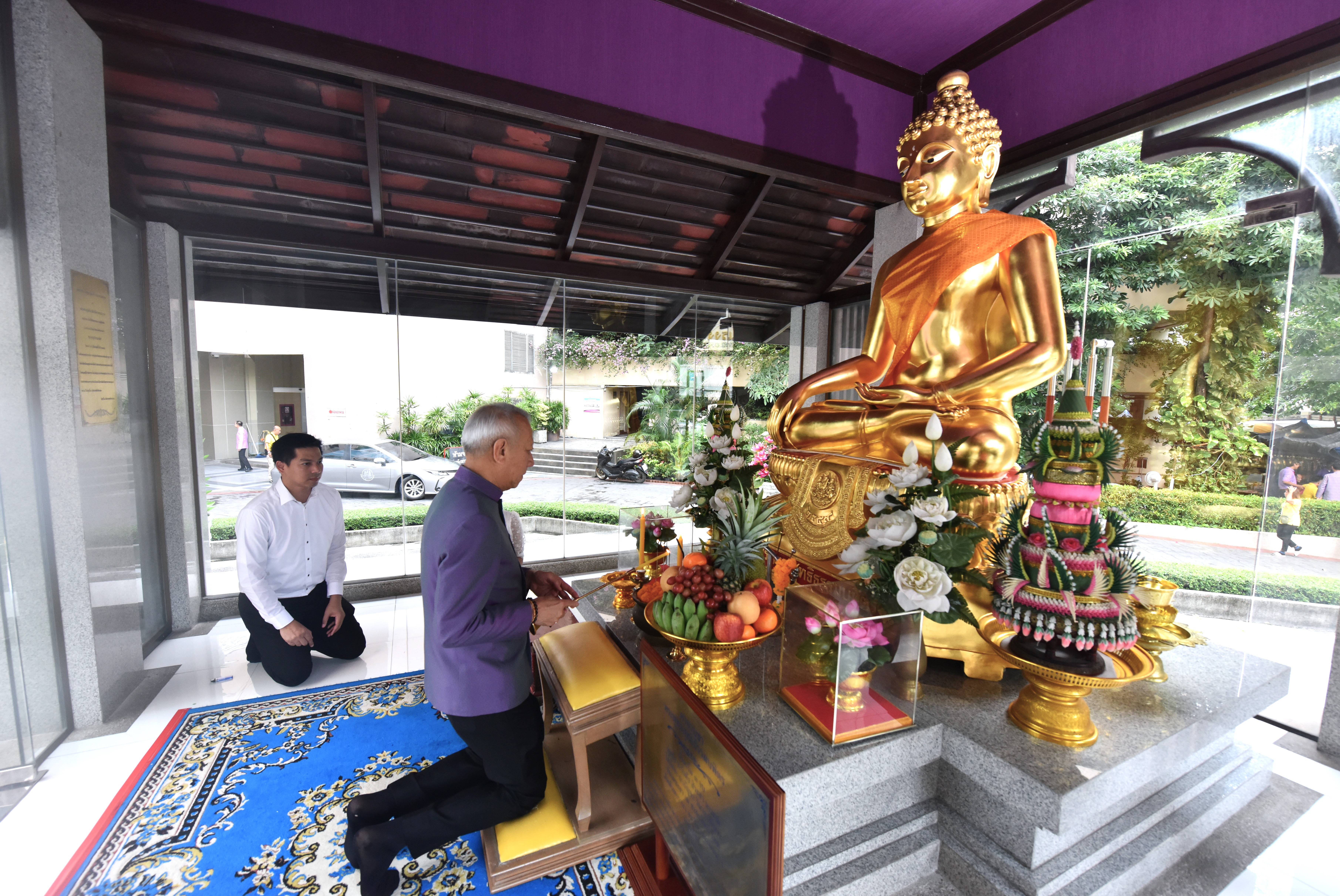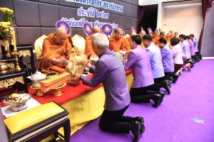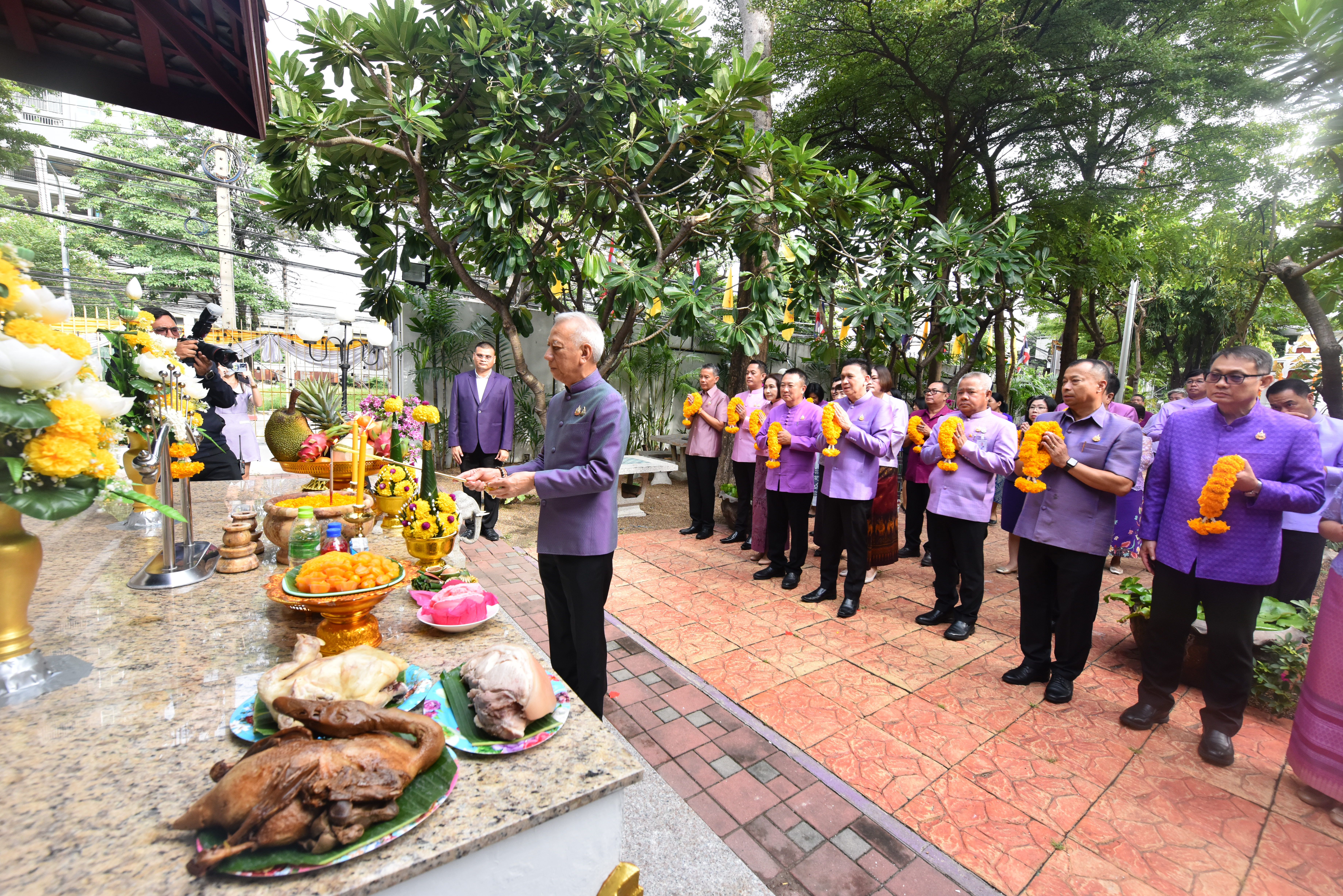 On September 23, 2024, at 07.00 hours, the Labour Minister, Mr. Phiphat Ratchakitprakarn, chaired the ceremony of chanting Buddhist prayers and offering morning alms to 10 monks, the ceremony of paying homage to the sacred objects of the Ministry of Labour, including Phra Phuttha Sutthithammabophit, Phra Phuttha Chinnarat, Phra Phum Chai Mongkol Shrine, Thao Maha Phrom Thewarit, and Pho Pu Suchin Phromma Shrine. They also paid homage in front of the portrait of His Majesty the King on the occasion of the Ministry of Labour’s 31st anniversary in 2024. The Permanent Secretary of Labour, Mr. Pairoj Chotikasathien, along with executives, civil servants, and officials of the Ministry of Labour, joined together at the Ministry of Labour’s Meeting Room, 5th floor, Ministry of Labour.