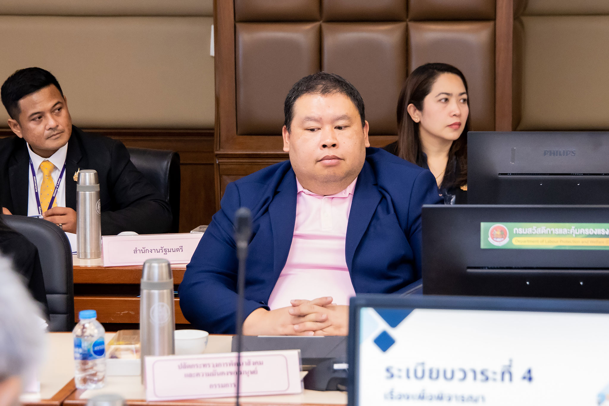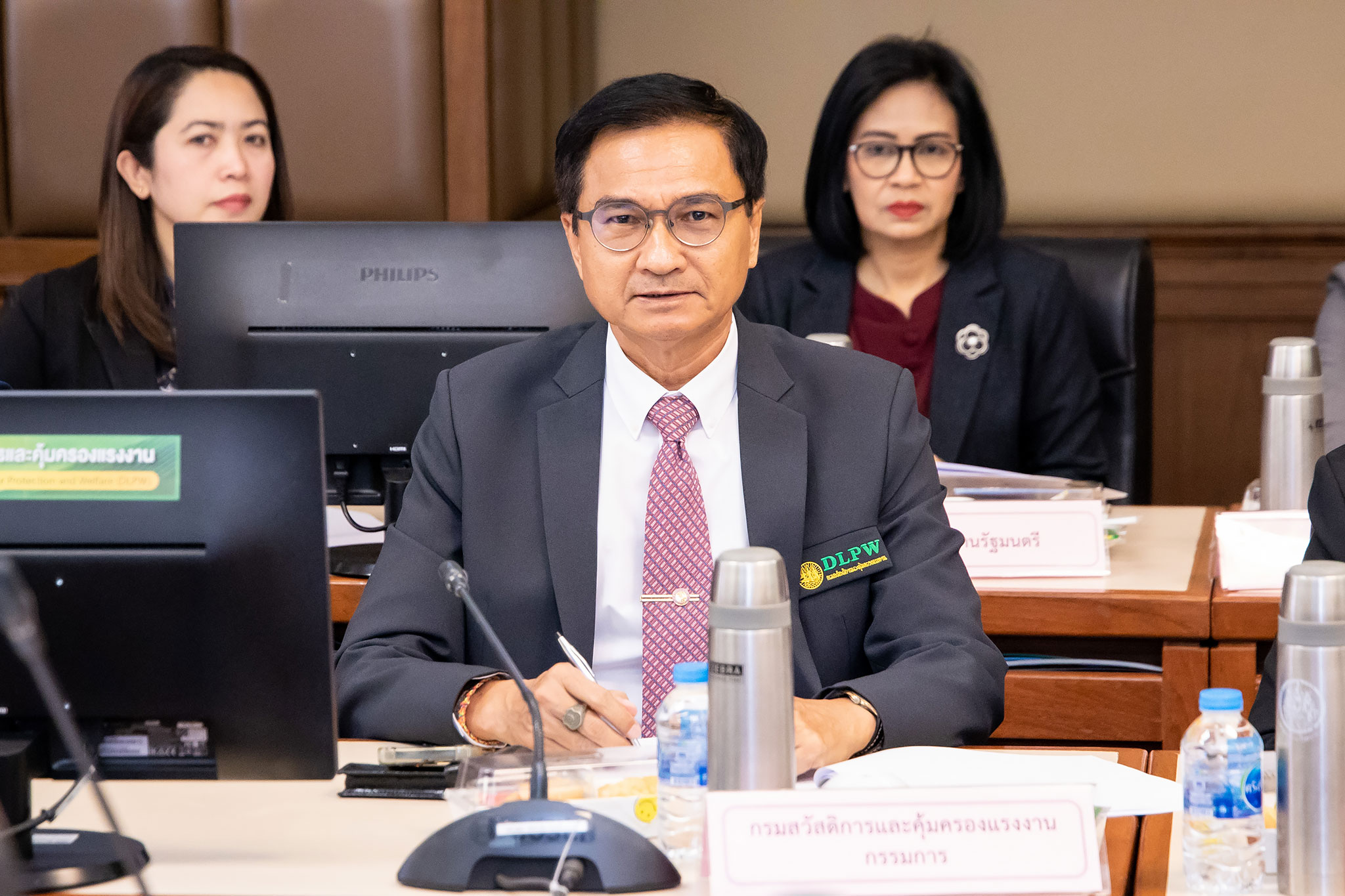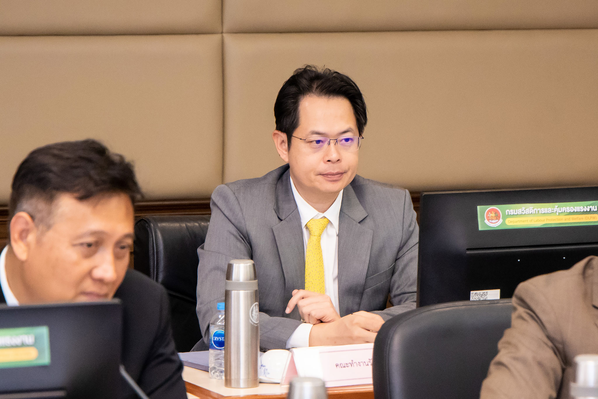 The meeting was attended by Mr. Boonsong Thapchaiyut, Permanent Secretary of Labour, Mr. Somchai Morakotsriwan, Director-General of the Department of Employment, senior officials from the Ministry of Labour, and representatives from relevant agencies, including the Ministry of Interior, Ministry of Defence, Ministry of Public Health, National Security Council, Internal Security Operations Command (ISOC), and private sector organisations. The meeting took place in the Prof. Nikhom Chandravithun Conference Room, 5th Floor, Ministry of Labour Building.