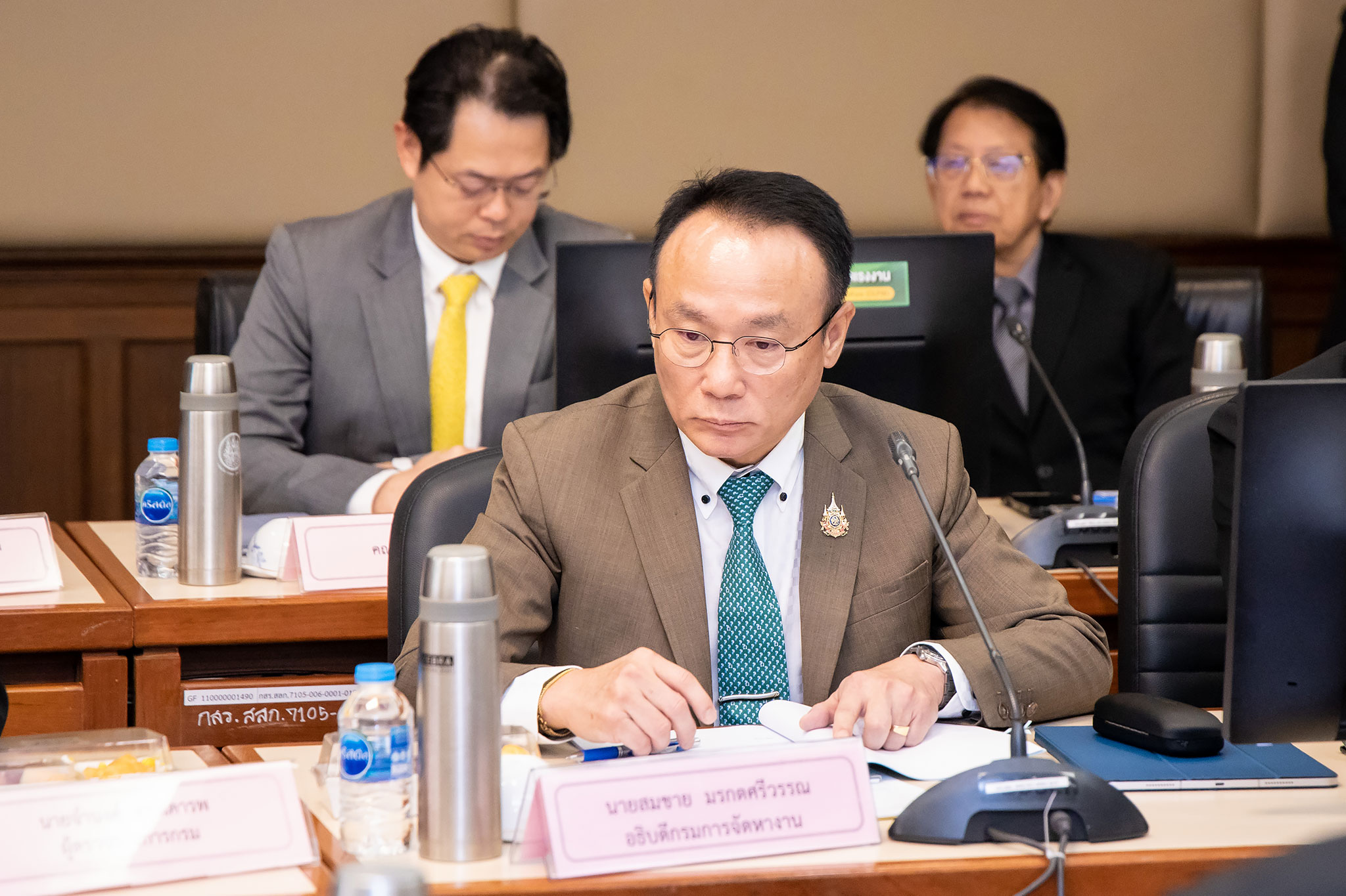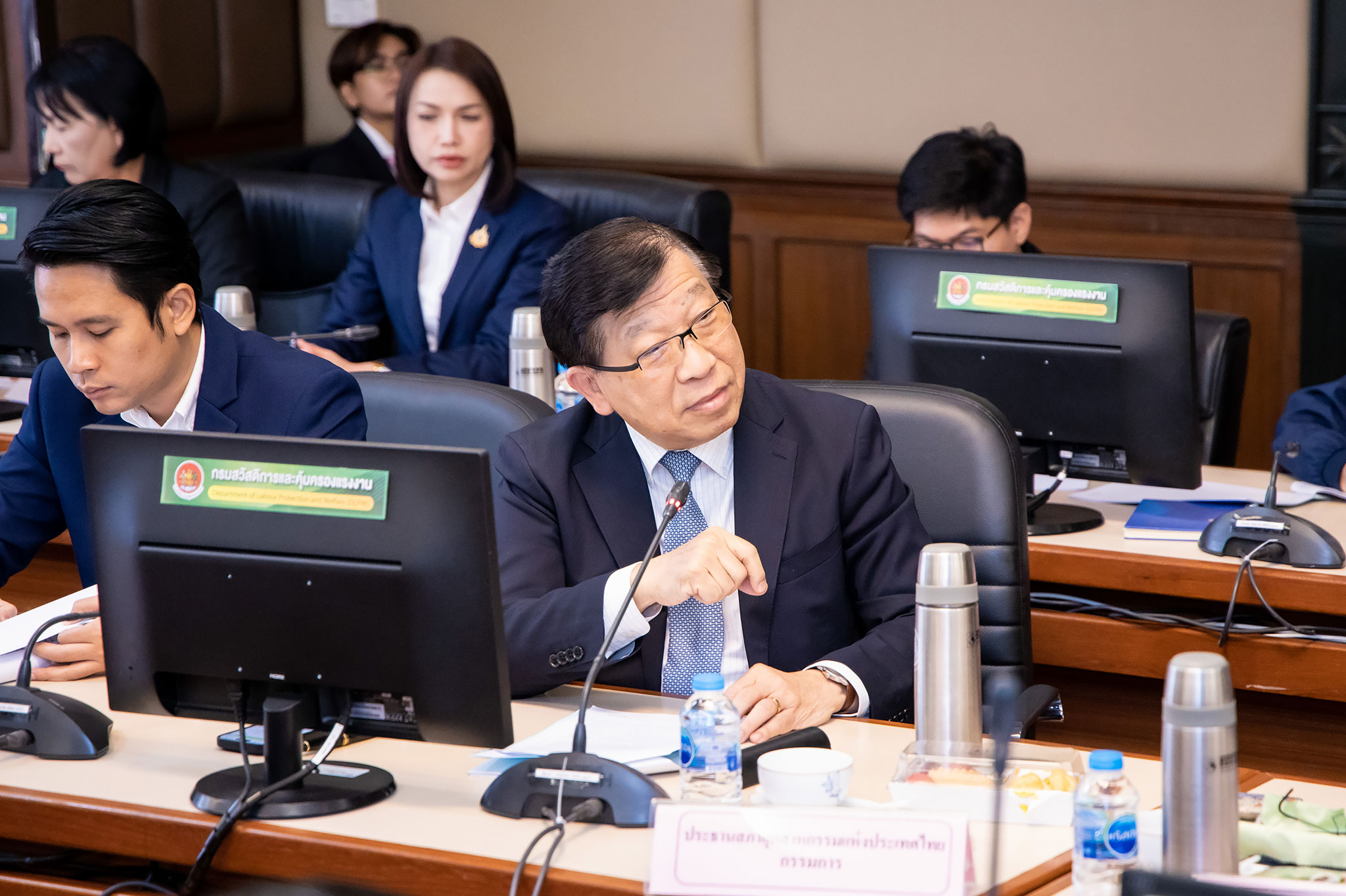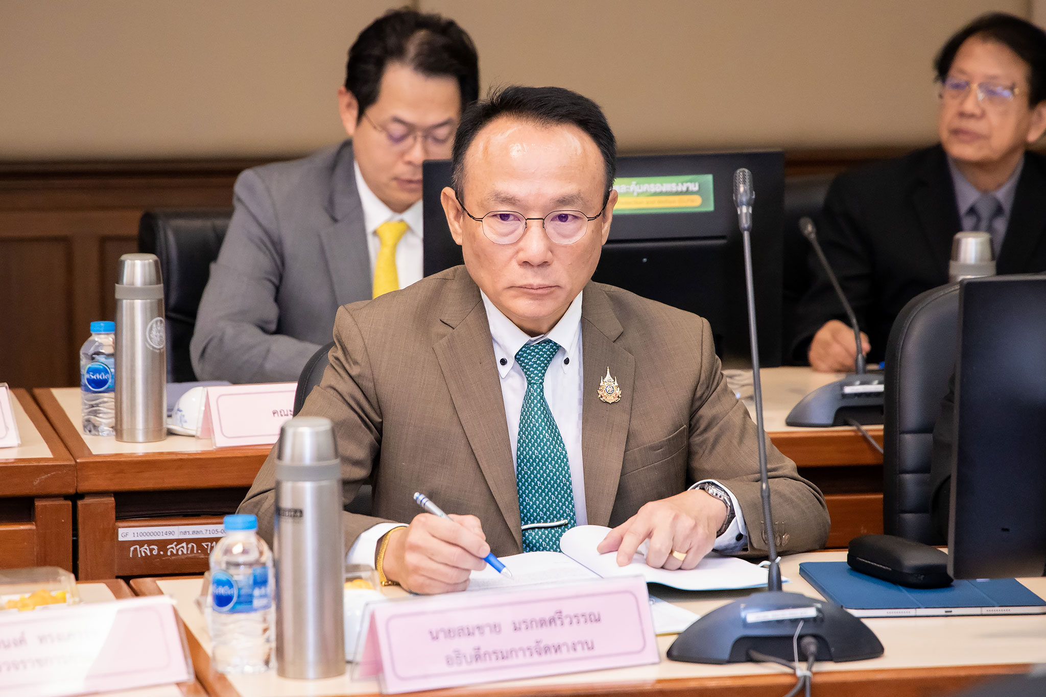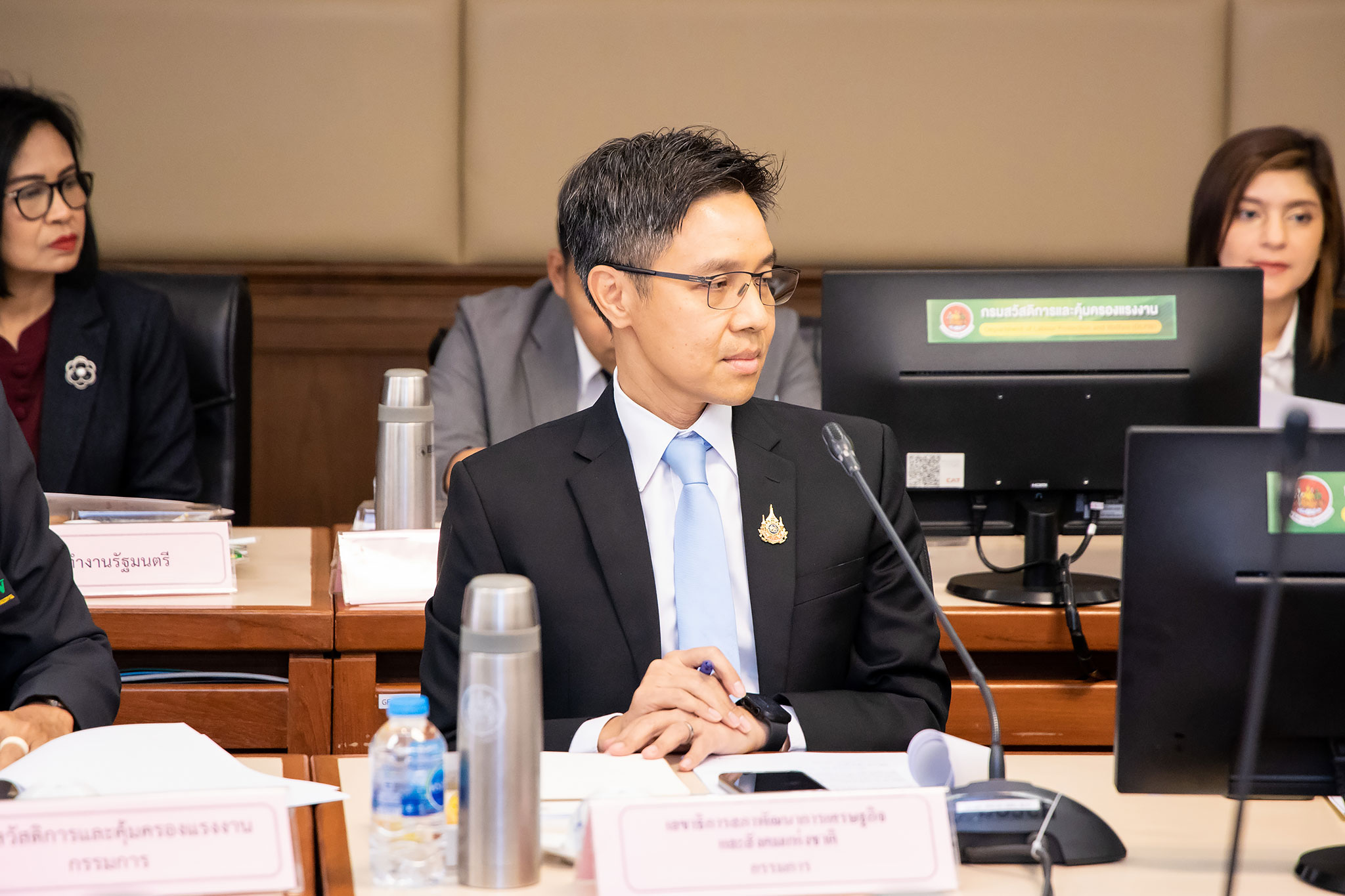 The meeting was attended by Mr. Boonsong Thapchaiyut, Permanent Secretary of Labour, Mr. Somchai Morakotsriwan, Director-General of the Department of Employment, senior officials from the Ministry of Labour, and representatives from relevant agencies, including the Ministry of Interior, Ministry of Defence, Ministry of Public Health, National Security Council, Internal Security Operations Command (ISOC), and private sector organisations. The meeting took place in the Prof. Nikhom Chandravithun Conference Room, 5th Floor, Ministry of Labour Building.