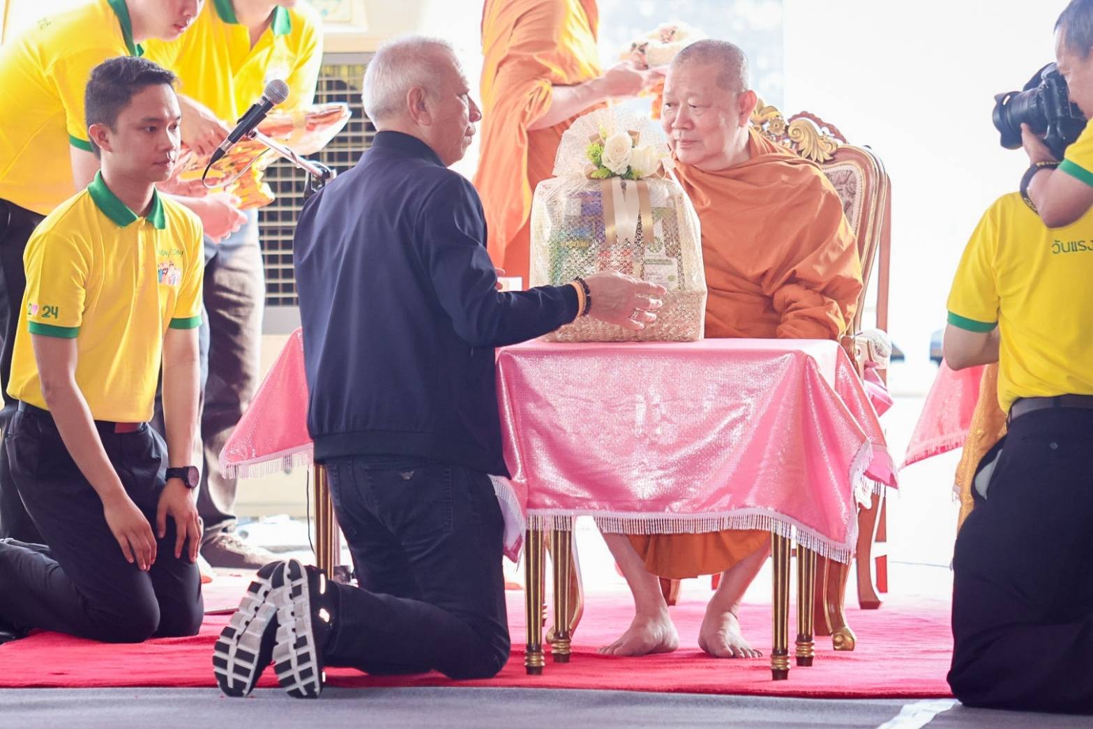 On May 1, 2024, at 07.30 hours, the Labour Minister, Mr. Phiphat Ratchakitprakarn, presided over the merit-making ceremony for nine monks on National Labour Day. Somdet Phra Maha Ratchamongkol Muni (Chao Khun Thongchai) from Wat Traimit Wittayaram Worawihan presided over the ceremony from the monk’s side.