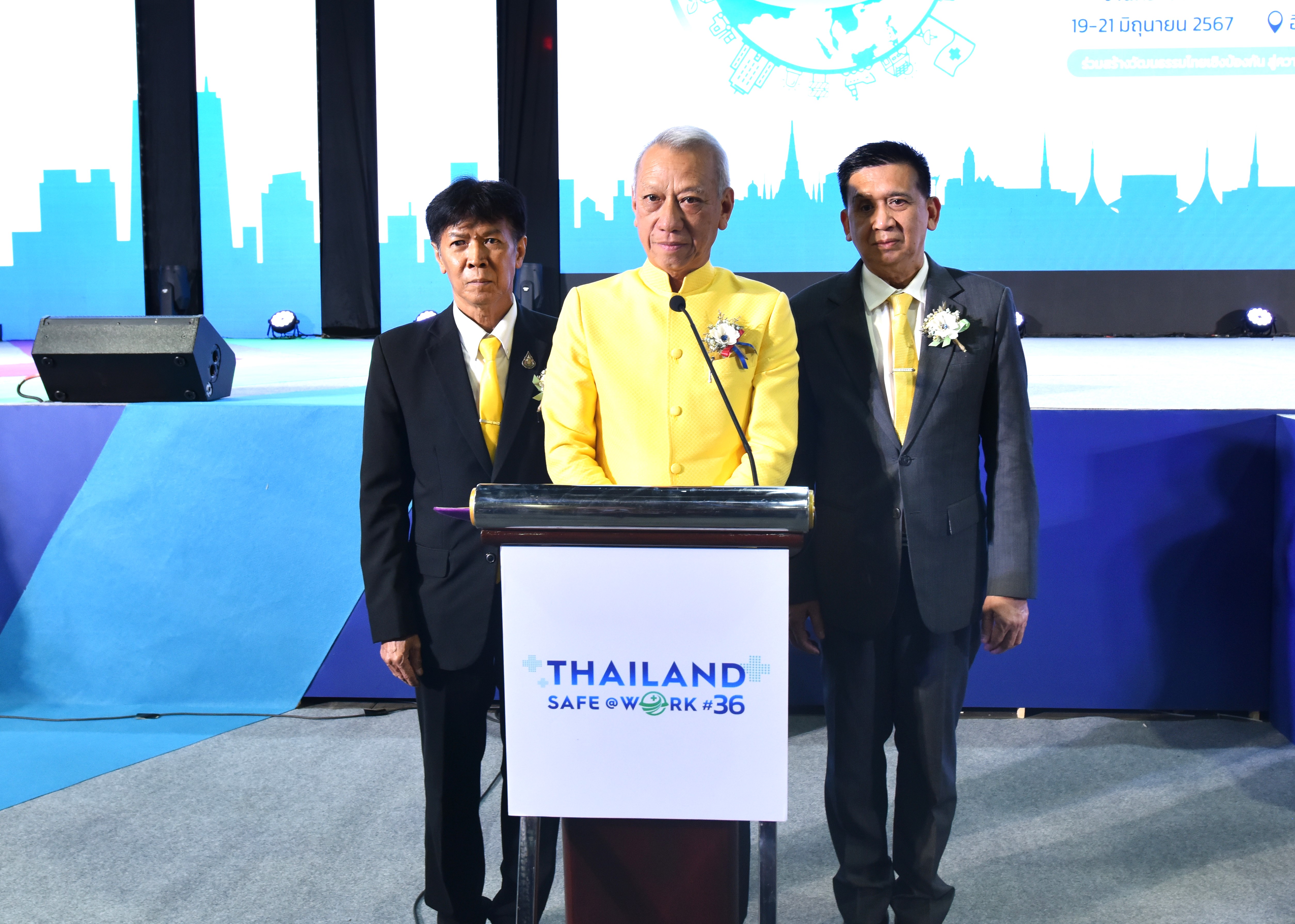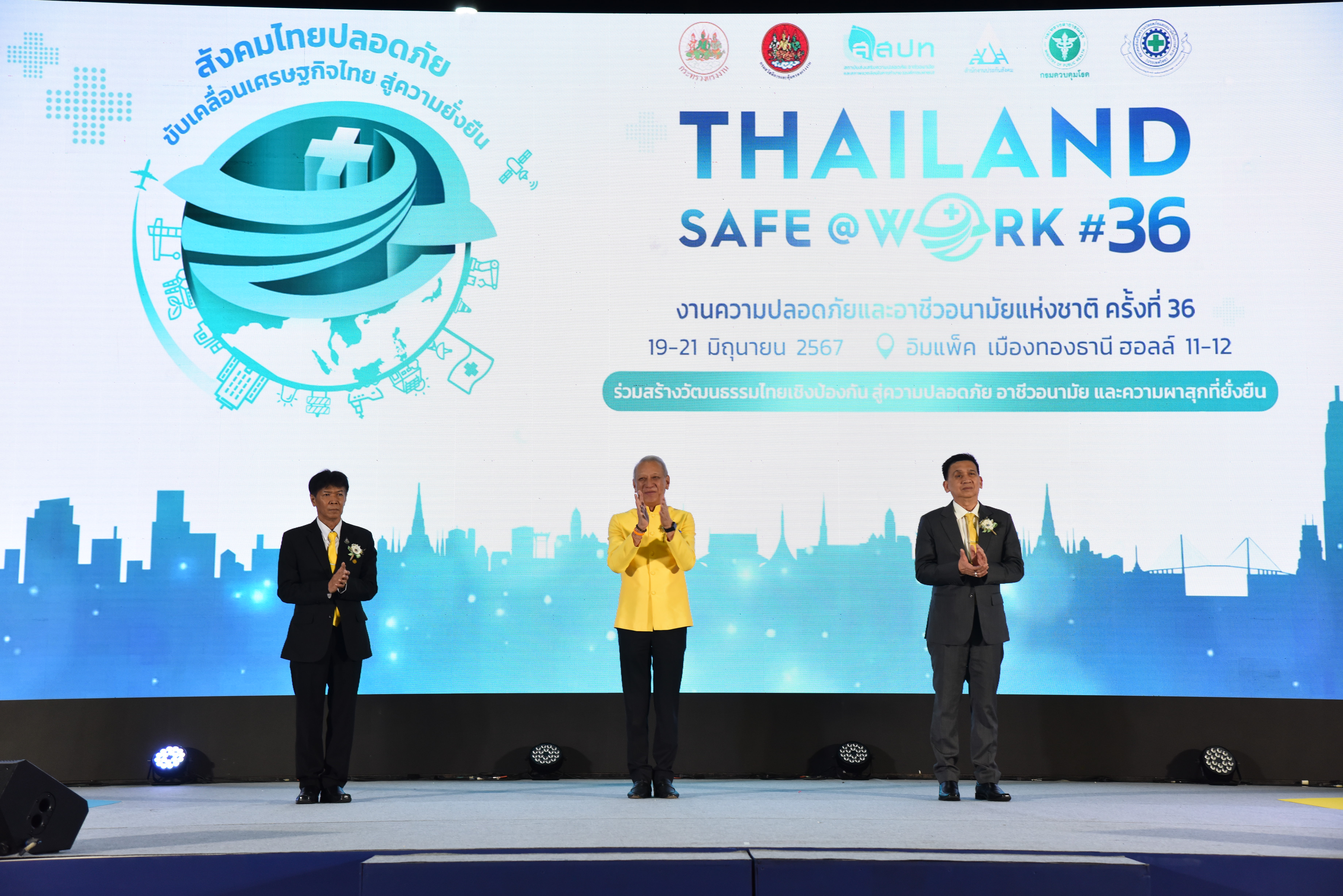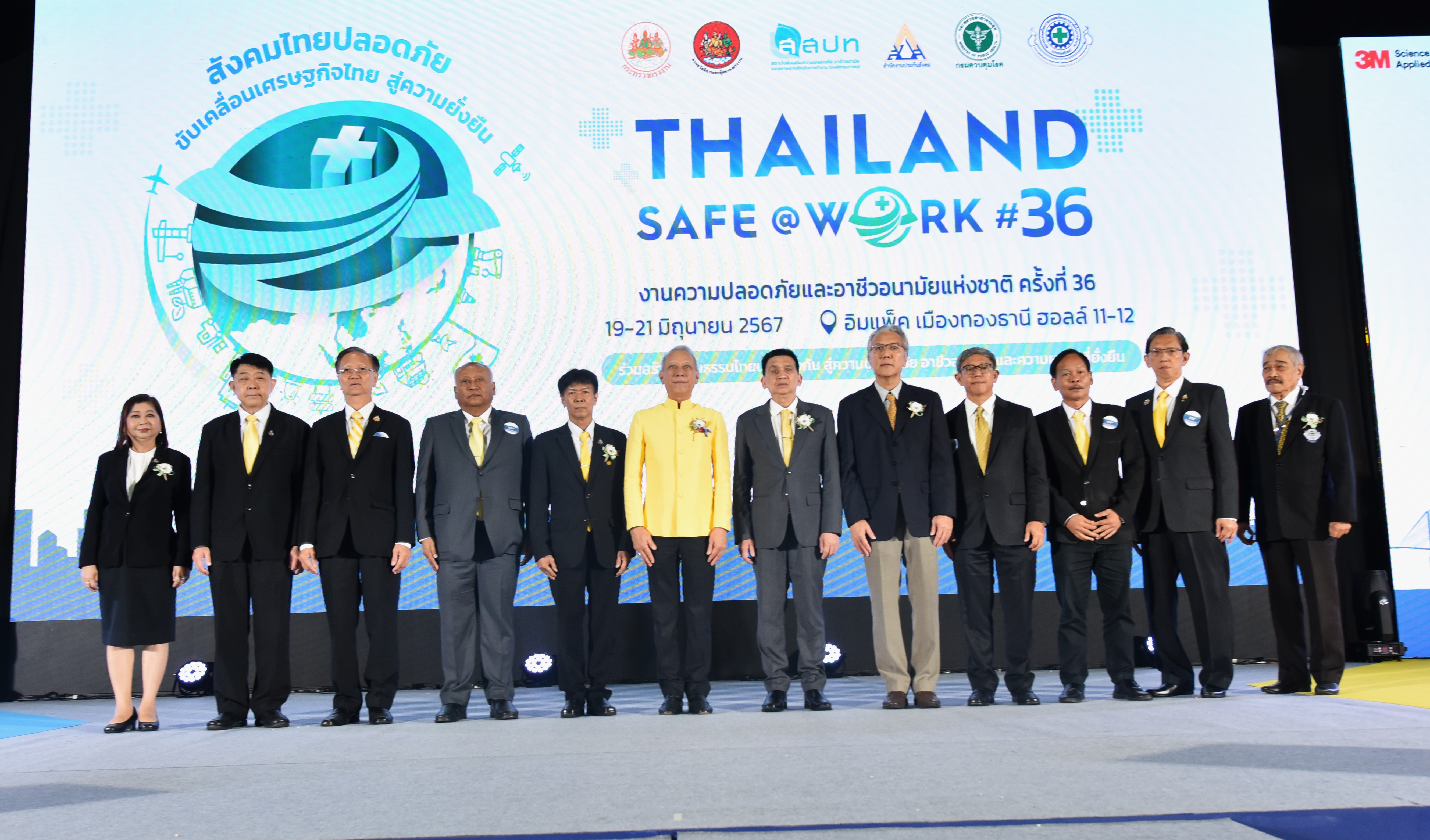 The Labour Minister, Mr. Phiphat Ratchakitprakarn, commenced the THAILAND SAFE@WORK#36 between June 19 to 21, 2024, at the IMPACT Muang Thong Thani. Mr. Amnuay Phurahong, serving as Chairman of the Executive Committee of the Thailand Institute Of Occupational Safety And Health (Public Organization) reported on the objectives of the event. The Assistant to the Labour Minister, Mr. Siraphop Duangsodsri, the Secretariat to the Labour Minister, Mr. Aree Krainara, from the Prime Minister’s Secretariat’s Office, performing duties for the Ministry of Labour, Mr. Phuchong Worasri, the Ministry of Labour’s Spokesperson, Mr. Phumiphat Mueanchan, the Permanent Secretary of Labour, Mr. Pairoj Chotikasathien, the Department of Skill Development’s Director-General, Ms. Bubpha Rueangsud, the Social Security Office’s Secretary-General, Mr. Boonsong Thapchaiyut, and the Ministry of Labour’s executives joined the occasion. The event was organized under the theme “A Safe Thai Society, Driving the Thai Economy Toward Sustainability,” emphasizing the goal of reducing work accidents to no more than 4 percent per year. The effort is by the Thailand Institute Of Occupational Safety And Health (Public Organization) or TOSH, together with the Department of Labour Protection and Welfare, the Social Security Office, the Department of Disease Control, and the Association for the Promotion of Safety and Health at Work (Thailand) under the Royal Patronage to create a forward culture of prevention for safety Thailand.