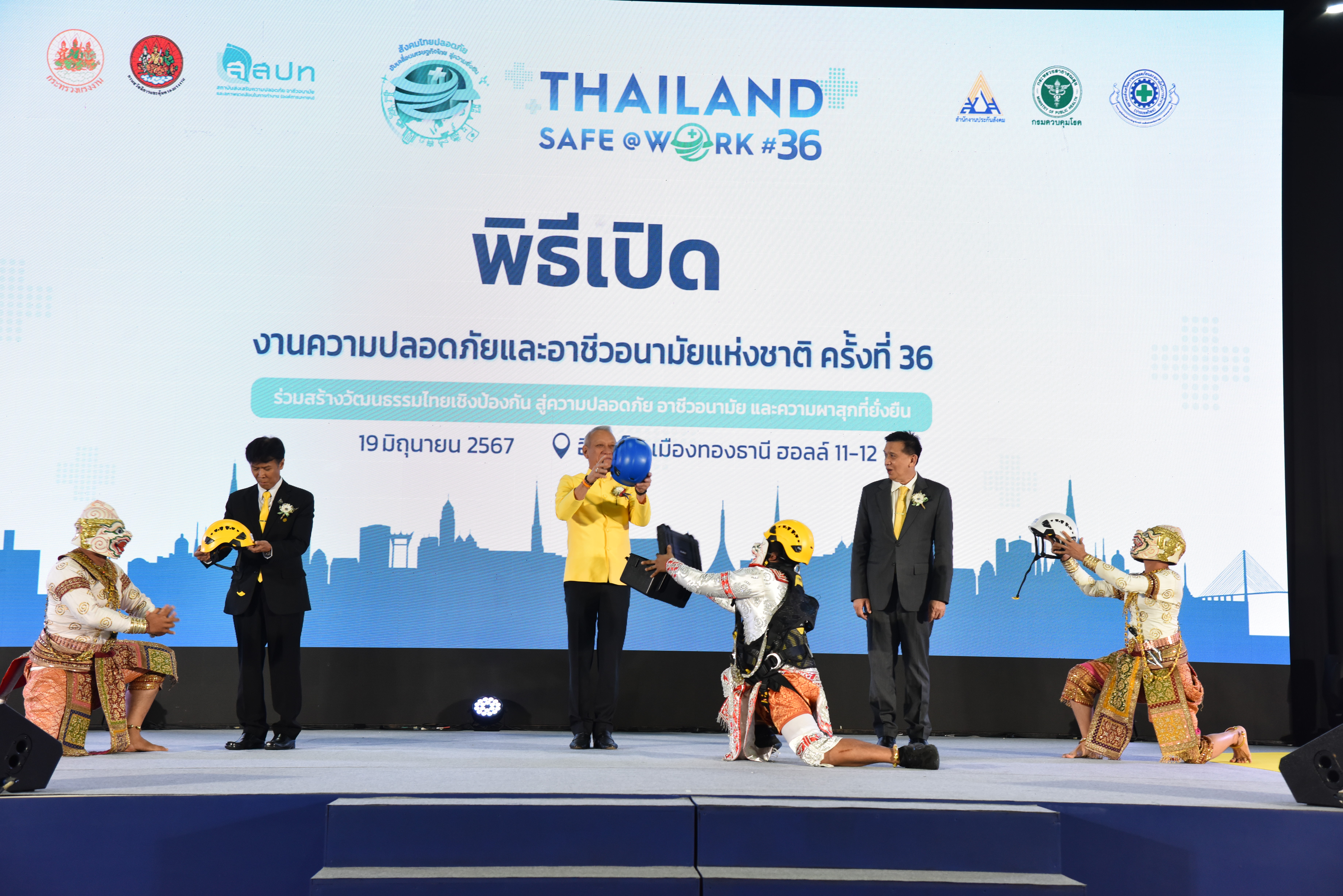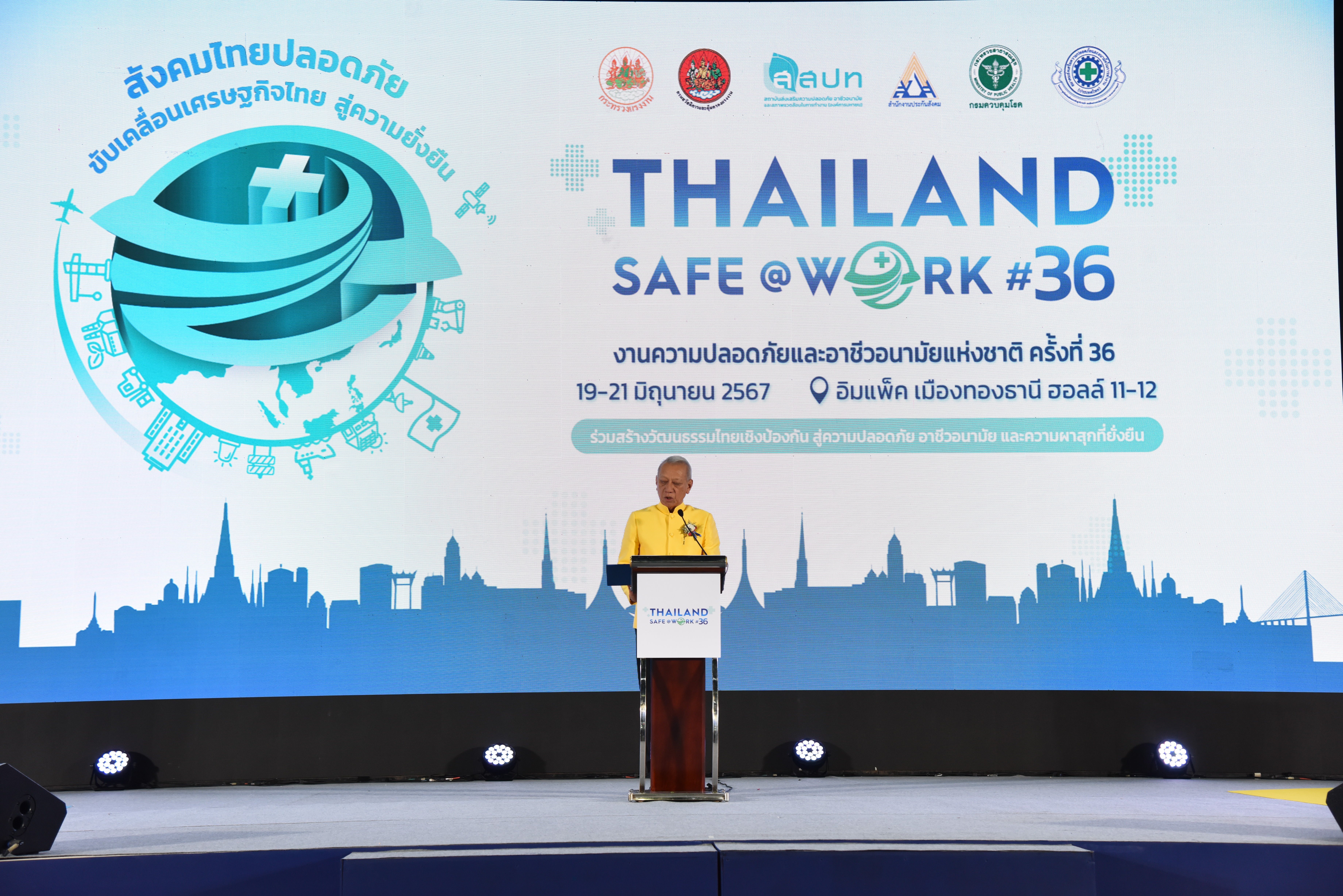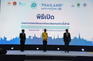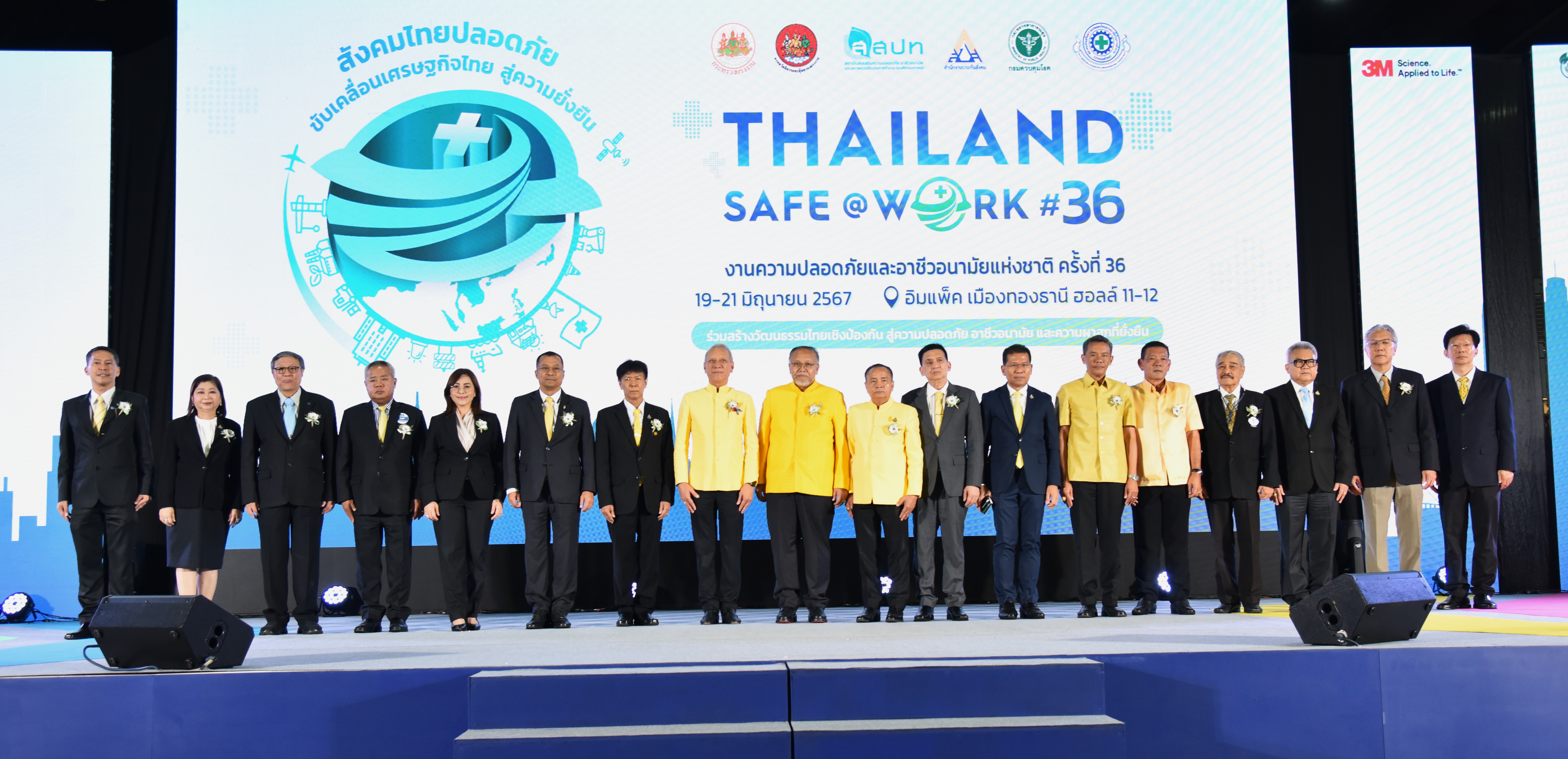 The Labour Minister, Mr. Phiphat Ratchakitprakarn, commenced the THAILAND SAFE@WORK#36 between June 19 to 21, 2024, at the IMPACT Muang Thong Thani. Mr. Amnuay Phurahong, serving as Chairman of the Executive Committee of the Thailand Institute Of Occupational Safety And Health (Public Organization) reported on the objectives of the event. The Assistant to the Labour Minister, Mr. Siraphop Duangsodsri, the Secretariat to the Labour Minister, Mr. Aree Krainara, from the Prime Minister’s Secretariat’s Office, performing duties for the Ministry of Labour, Mr. Phuchong Worasri, the Ministry of Labour’s Spokesperson, Mr. Phumiphat Mueanchan, the Permanent Secretary of Labour, Mr. Pairoj Chotikasathien, the Department of Skill Development’s Director-General, Ms. Bubpha Rueangsud, the Social Security Office’s Secretary-General, Mr. Boonsong Thapchaiyut, and the Ministry of Labour’s executives joined the occasion. The event was organized under the theme “A Safe Thai Society, Driving the Thai Economy Toward Sustainability,” emphasizing the goal of reducing work accidents to no more than 4 percent per year. The effort is by the Thailand Institute Of Occupational Safety And Health (Public Organization) or TOSH, together with the Department of Labour Protection and Welfare, the Social Security Office, the Department of Disease Control, and the Association for the Promotion of Safety and Health at Work (Thailand) under the Royal Patronage to create a forward culture of prevention for safety Thailand.