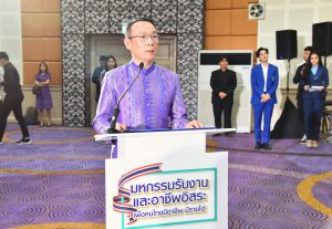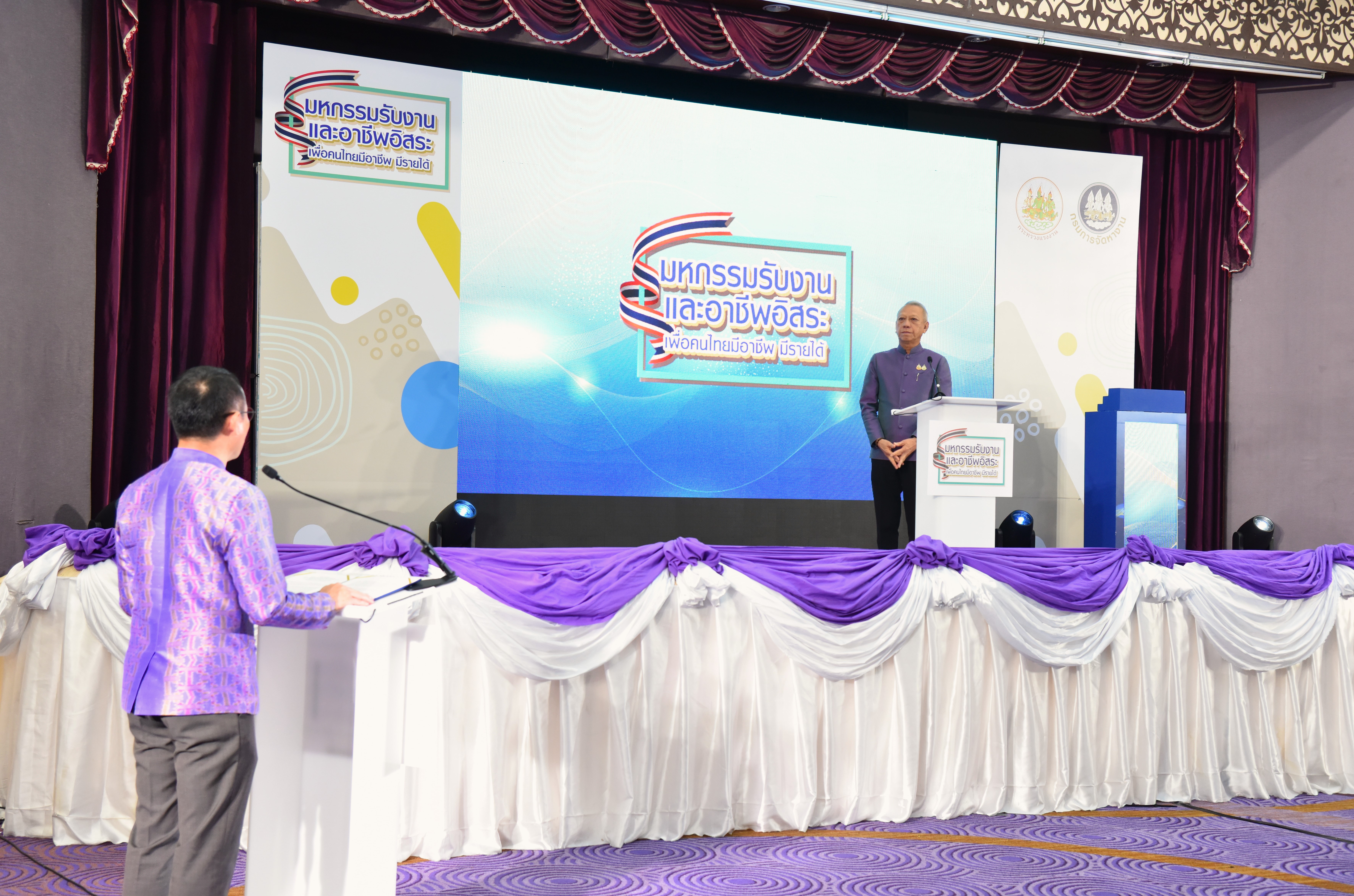 On September 4, 2024, the Labour Minister, Mr. Phiphat Ratchakitprakarn, chaired the opening of the job and freelance careers fair for Thai people to have careers and income, the DOE Craft Fair 2024. The Secretariat to the Labour Minister, Mr. Aree Krainara, the Ministry of Labour’s Spokesperson, Mr. Phumiphat Mueanchan, the Permanent Secretary of Labour, Mr. Pairoj Chotikasathien, and the Ministry of Labour’s executives gave a welcome. The Department of Employment’s Director-General, Mr. Somchai Morakotsriwan, gave a report at the Ministry of Labour’s meeting room, 5th floor, Ministry of Labour.