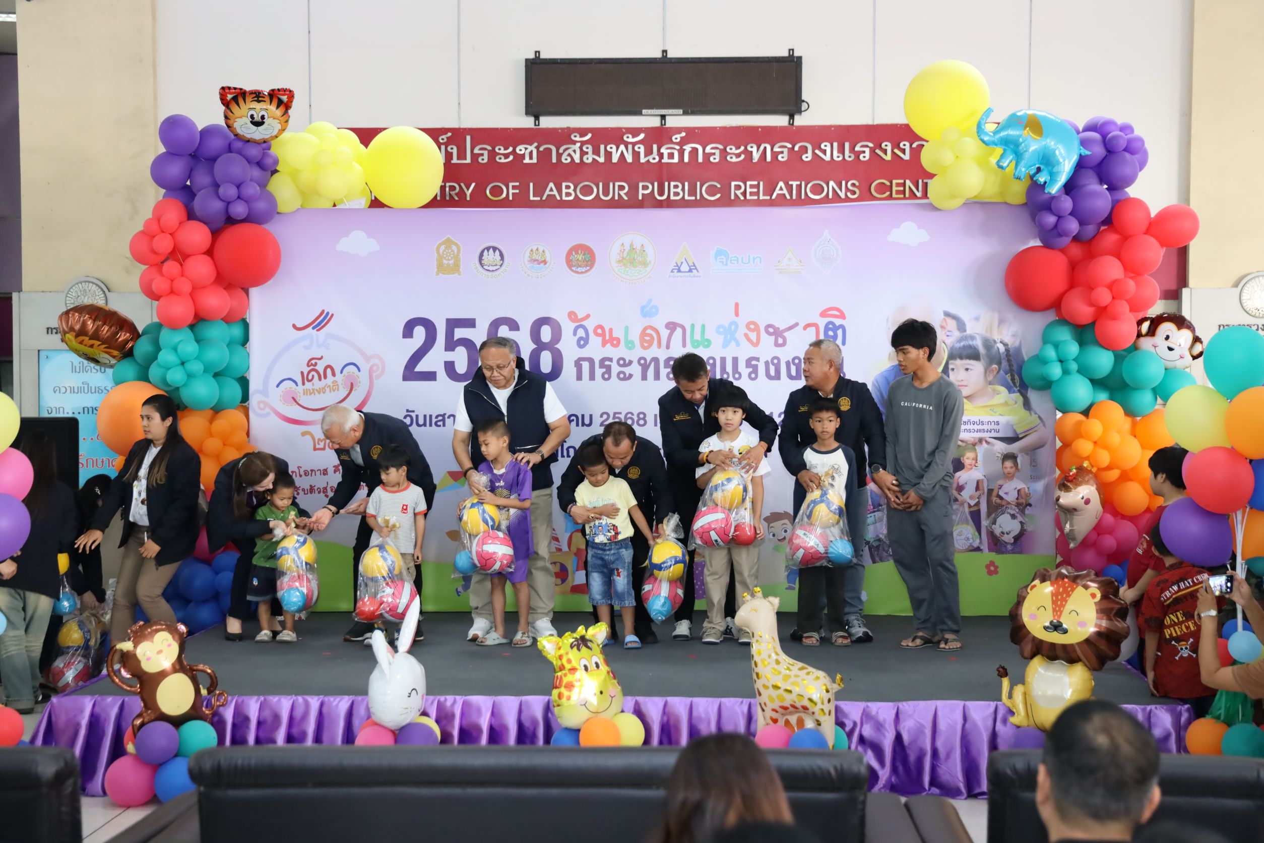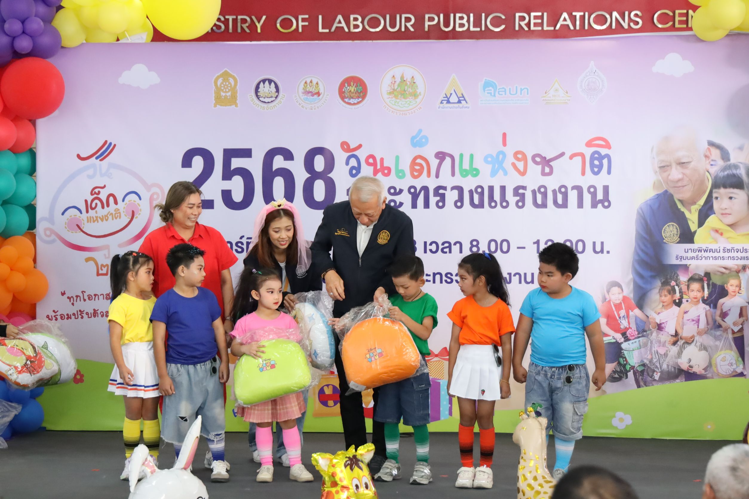 On January 11, 2025, Mr. Phiphat Ratchakitprakarn, Minister of Labour, chaired the scholarship award ceremony on the occasion of National Children’s Day 2025 by the Ministry of Labour. The Labour Minister gave an opening speech, gave gifts to children, and visited activity booths organized by agencies under the Ministry of Labour and business establishments. Mr. Siraphop Duangsodsri, Assistant to the Labour Minister, Mr. Aree Krainara, the Secretariat to the Labour Minister, and Mr. Phuchong Worasri, assigned to the Office of the Prime Minister and currently serving at the Ministry of Labour, also joined the occasion. Mr. Boonsong Thapchaiyut, the Permanent Secretary of Labour, gave a report. The Ministry of Labour’s executives and civil servants, parents, children, students, the Din Daeng Flat community, and children of the workforce joined the event, which took place in the lobby on the ground floor of the Ministry of Labour’s Building, Mitmaitri Road, Din Daeng District, Bangkok.