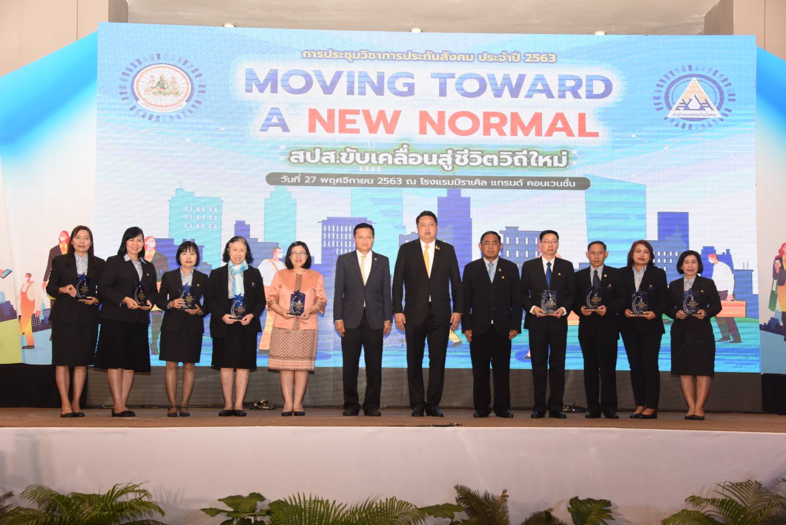 On November 27, 2020, at 13.30 hours, Labour Minister Mr. Suchart Chomklin presided over the opening ceremony of the 15th Annual Social Security Symposium in 2020 under the theme of “Moving Toward a New Normal: Driving Towards a New Way of Life.” The event presented a plaque for excellent services from surveying service recipients’ satisfaction with the Social Security Office in 2020. Permanent Secretary of Labour Mr. Suthi Sukosol and the Ministry of Labour’s senior management attended the meeting at Miracle Grand Convention Hotel Bangkok.
