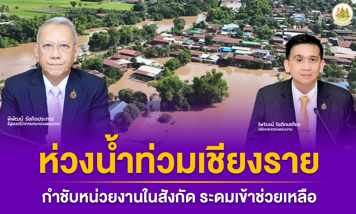 The Labour Minister, Mr. Phiphat Ratchakitprakarn, spoke about the flash floods and forest runoff resulting from mass rainfall in the northern provinces, especially Chiang Rai, Chiang Mai, and Tak provinces. The three provinces are currently experiencing flooding, affecting 22,841 businesses, 280,203 employees, and 17,941 households. He expressed his concern about the people and said that he is closely following the situation. He has instructed agencies under the Ministry of Labour in the flood-affected provinces to work with the agencies in the provinces to provide urgent assistance to the people. On the Ministry of Labour’s part, he has instructed the Permanent Secretary of Labour to assign the provincial labour offices and agencies under the Ministry of Labour in the flooded areas to provide full support to various agencies in each province. The Labour Minister has supported 90,000 bottles of drinking water for the provincial labour offices to distribute to victims in the area.