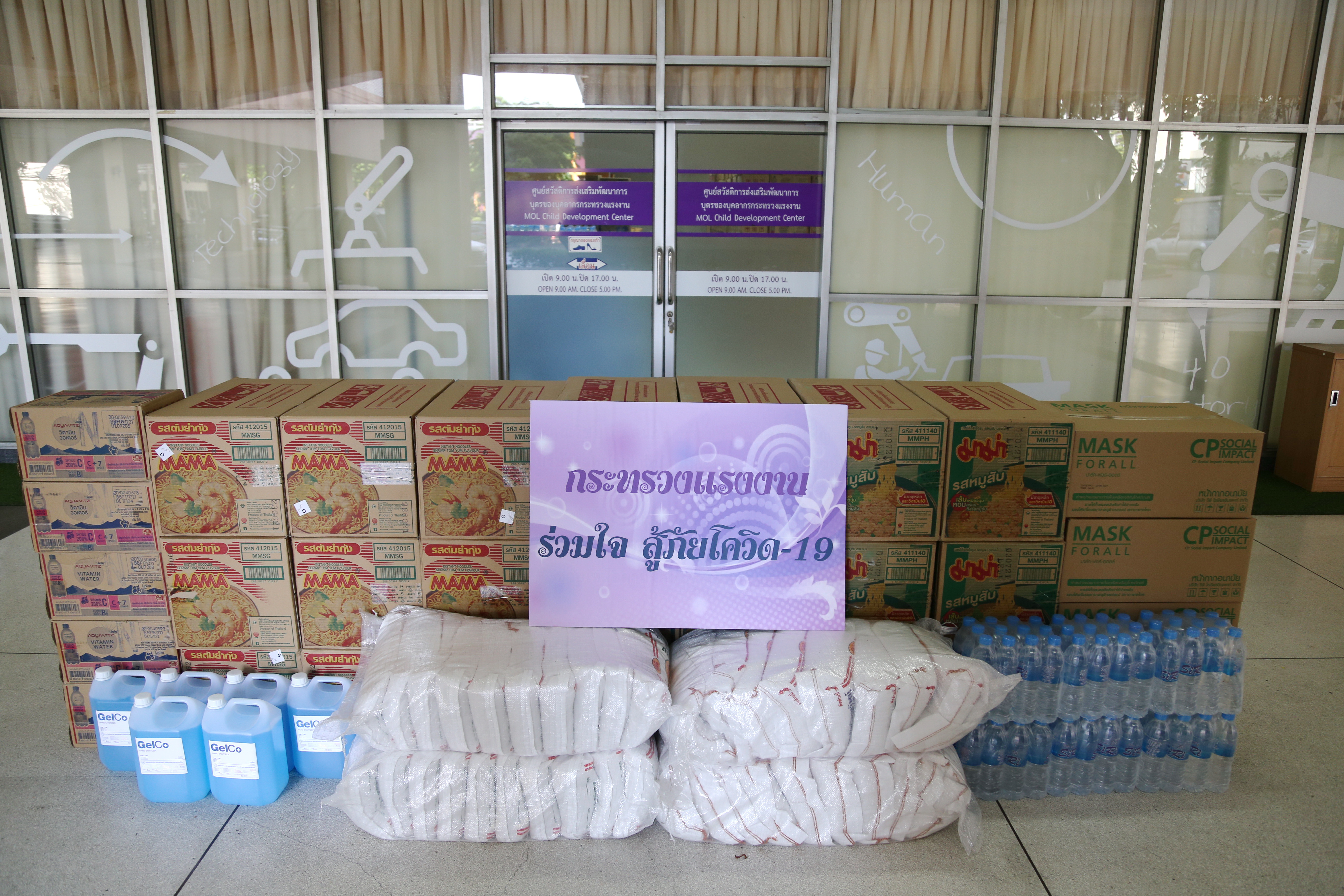 “Today, Labour Minister Mr. Suchart Chomklin assigned me to bring consumer goods donated to the Ministry of Labour by the private sector. The goods are forwarded to charitable organizations to help people affected by COVID-19, through the Fueng Fah Center, Team Help, and Khun Saowaluk Bangkoknoi, from Krua Klang Trok Kao Mai, to help each other in times of need. These items will be distributed to workers and people to alleviate their suffering and food expenses,” concluded Mrs. Thiwalrat.