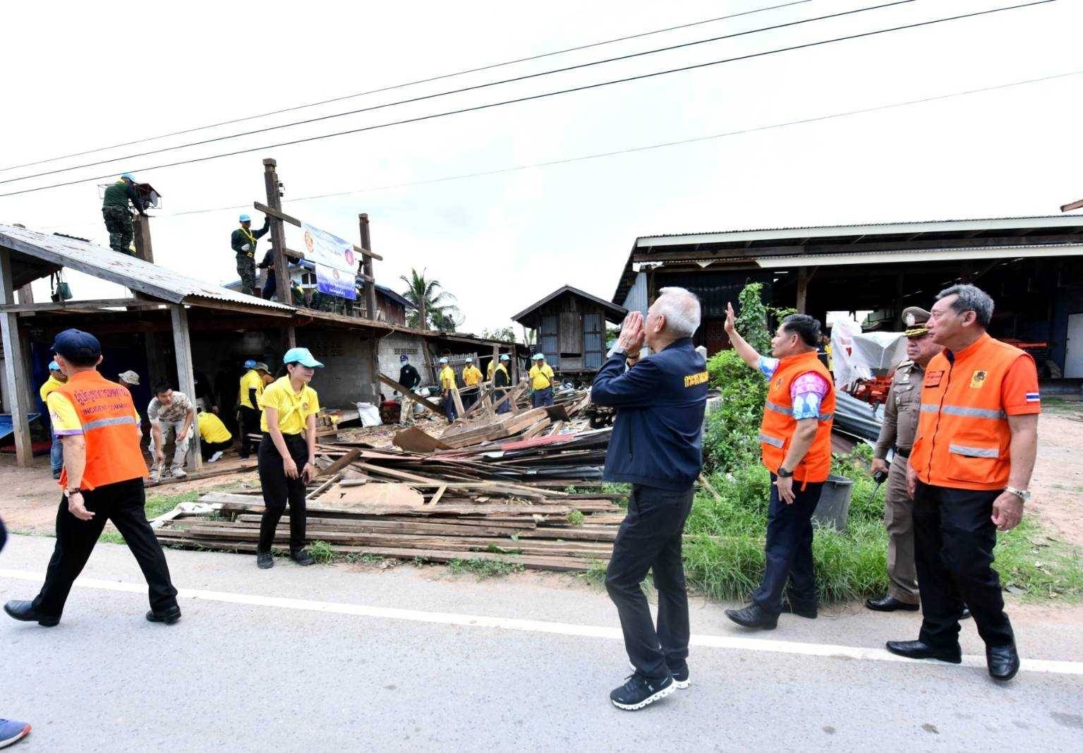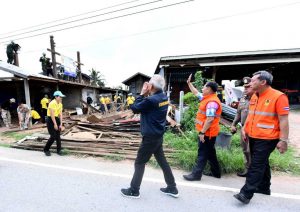 On May 19, 2024, the Labour Minister, Mr. Phiphat Ratchakitprakarn, and a delegation paid a visit and gave relief bags to boost the morale of three victims of the storm in Kao Kloi Subdistrict, Na Klang District, Nong Bua Lamphu Province. The Department of Skill Development’s Director-General, Ms. Bubpha Rueangsud, the Department of Employment’s Director-General, Mr. Somchai Morakotsriwan, the Ministry of Labour’s Inspector-General, Mr. Santi Nantasuwan, the Ministry of Labour’s executives, and heads of government agencies under the Ministry of Labour in Nong Bua Lamphu Province participated in the occasion.