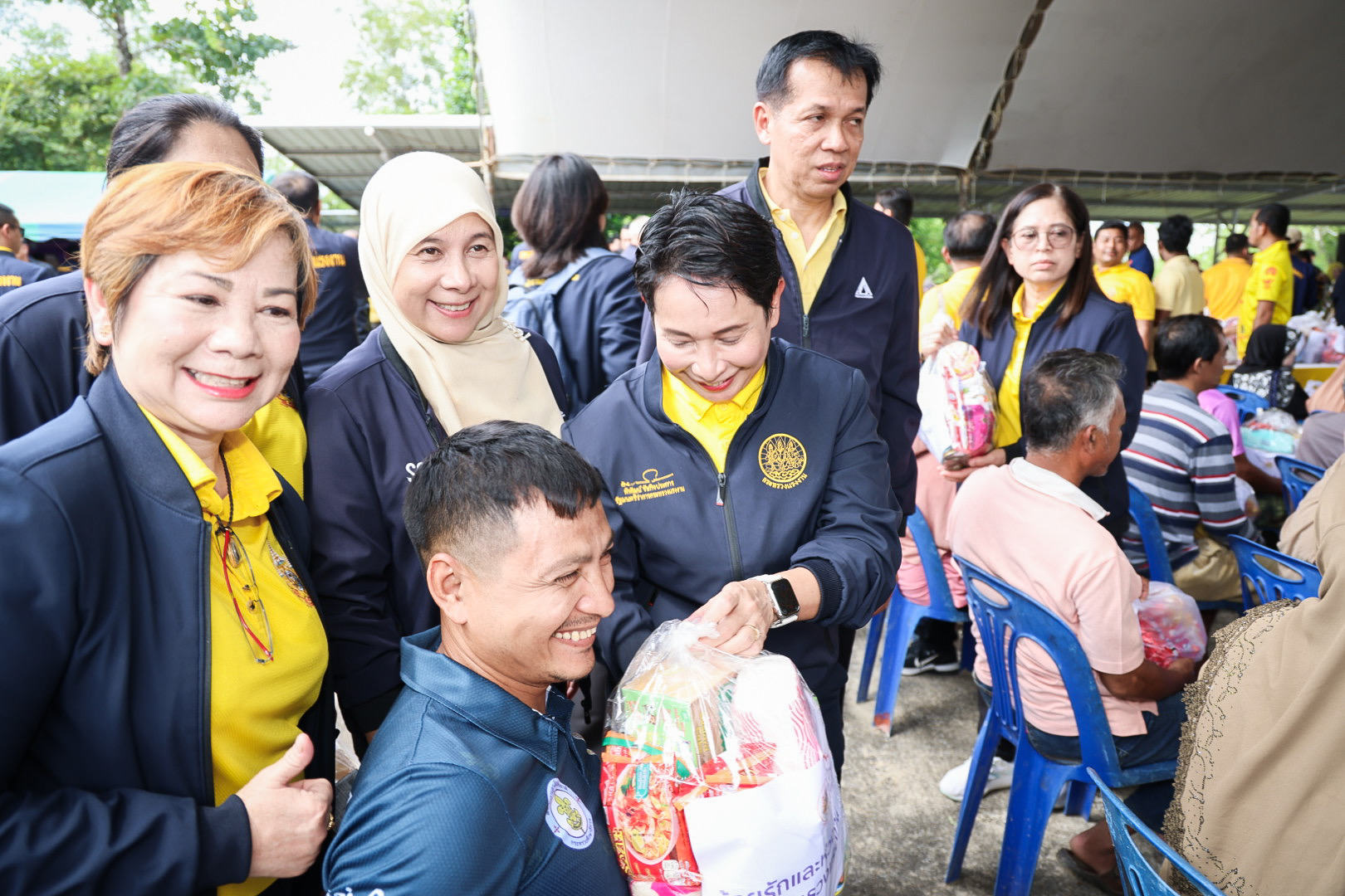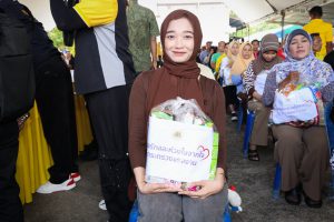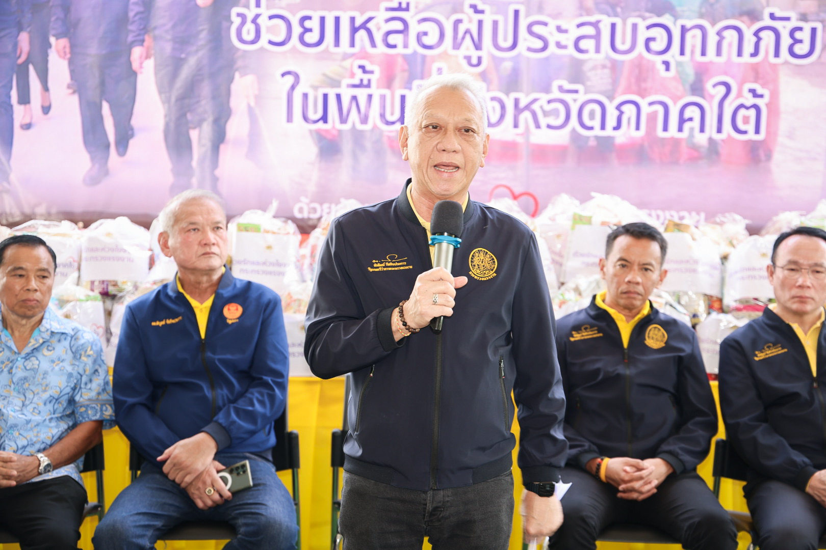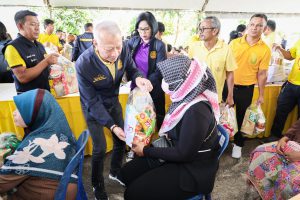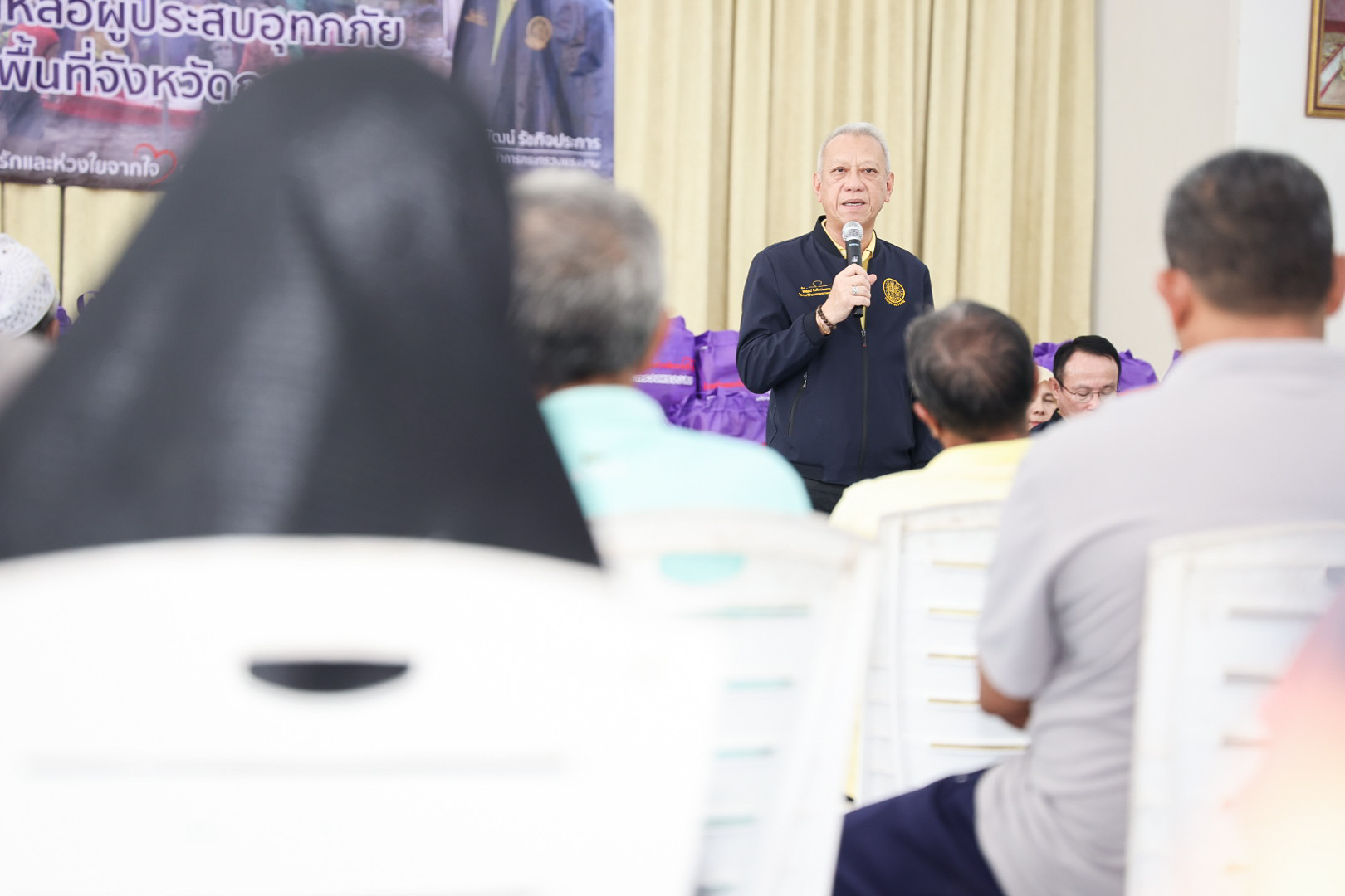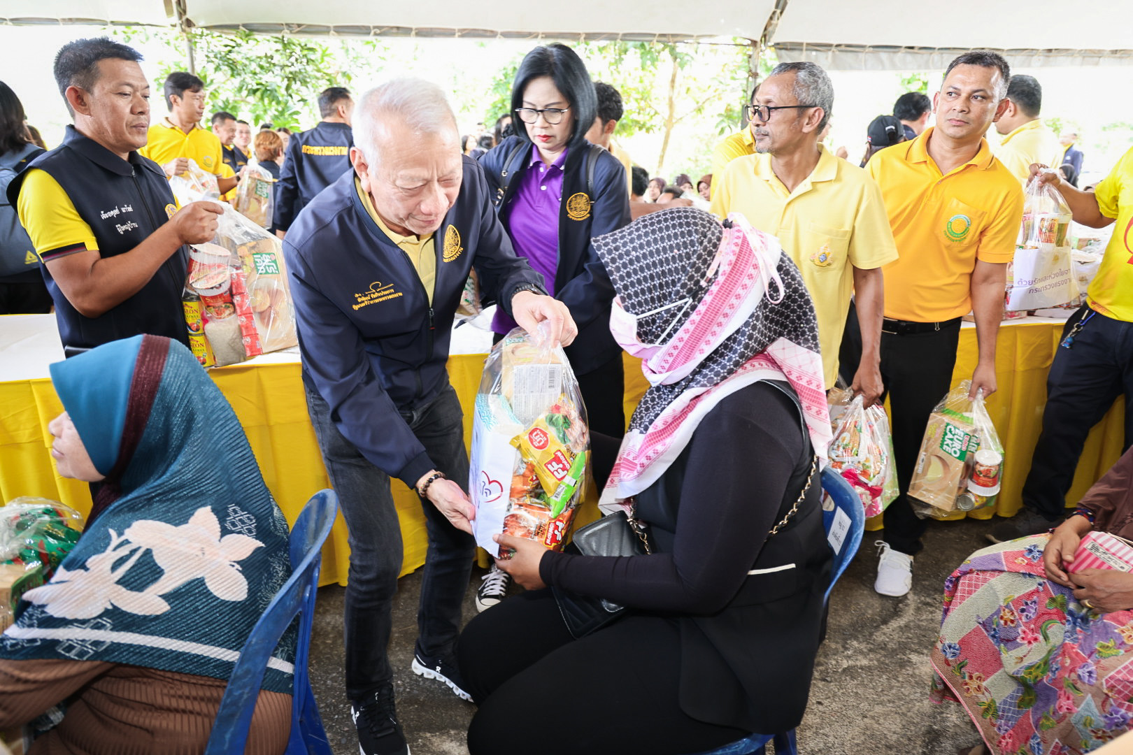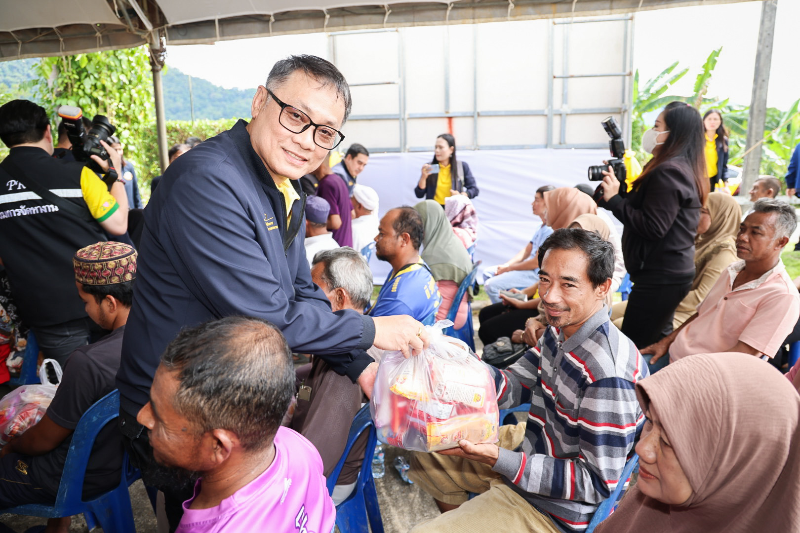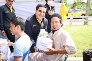 Mr. Phiphat mentioned that he visited Satun Province to assist flood victims. The majority of villagers in Satun are farmers and independent traders. The water levels have now returned to normal, but five districts were affected: Manang, Langu, and others. Today, over 300 relief packages were distributed, with the Satun Provincial Prison contributing 80 packages. Additionally, booths were showcasing the careers of gig workers and equipment repair services. The two distribution points in Satun Province were the first at the Chalung Subdistrict Administrative Organization in Mueang Satun District and the second at the Tha Phae District Community Hall. Village headmen and subdistrict headmen acted as representatives to receive the relief packages and distribute them to the affected residents.