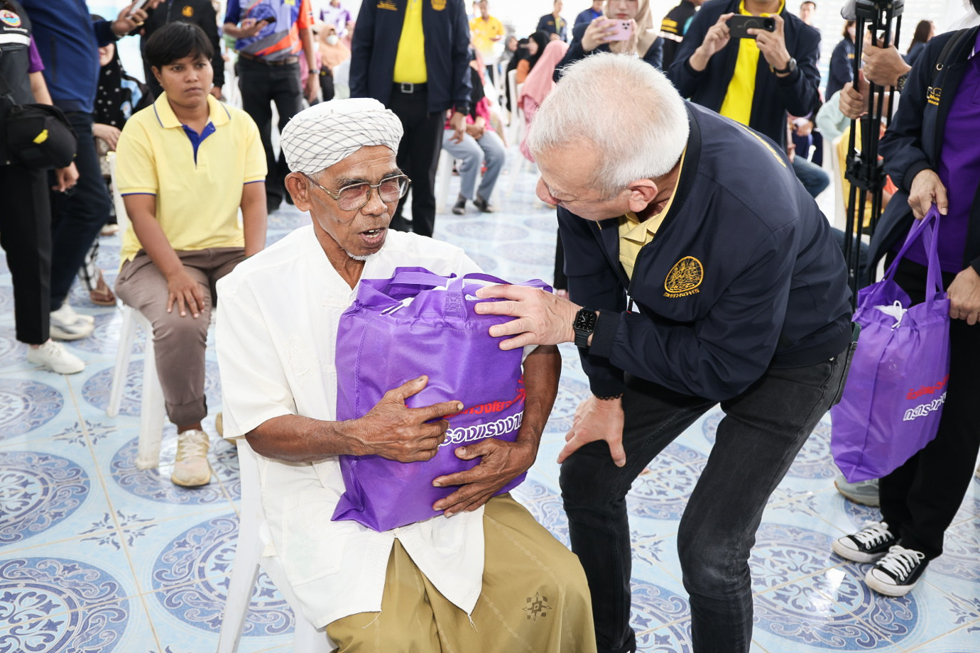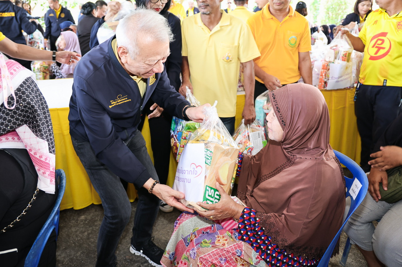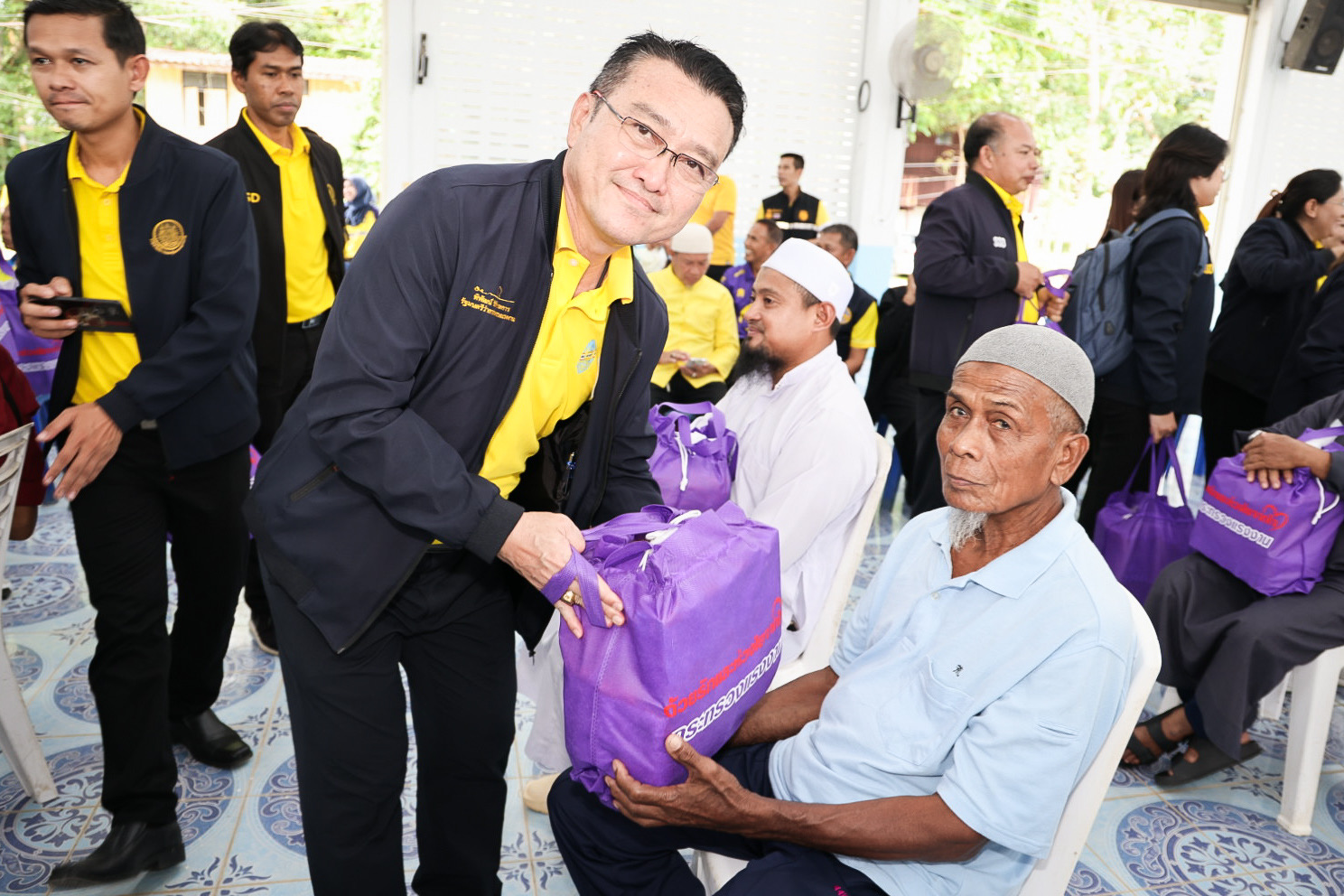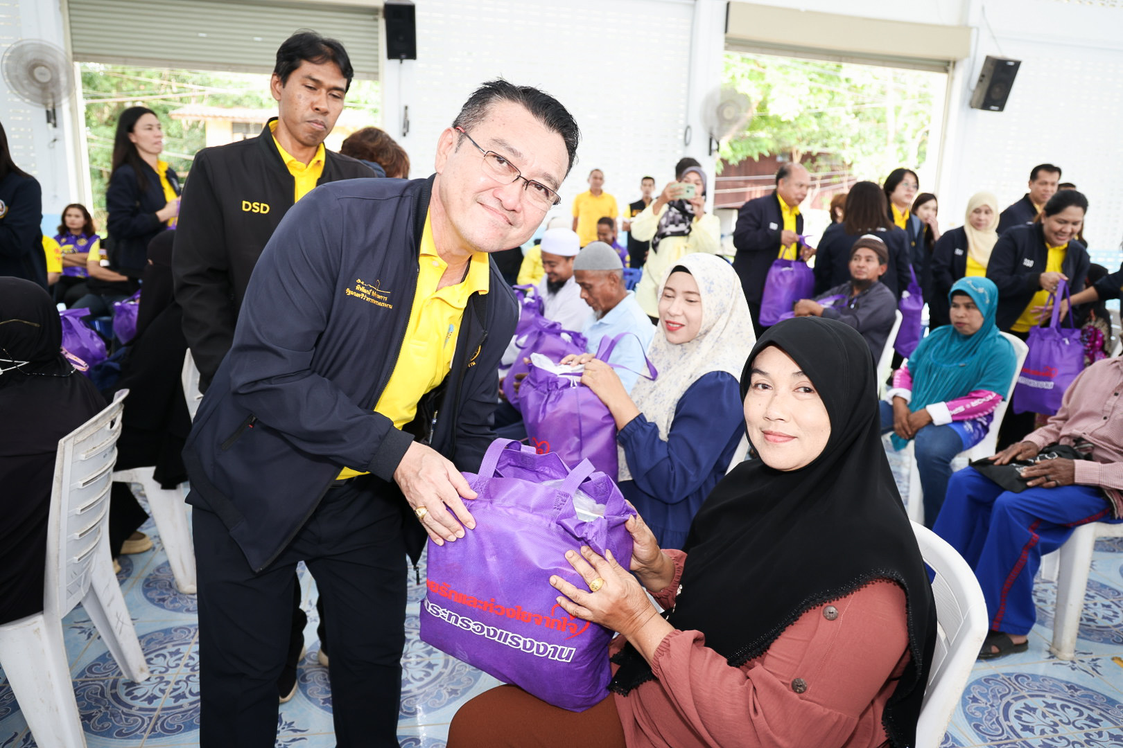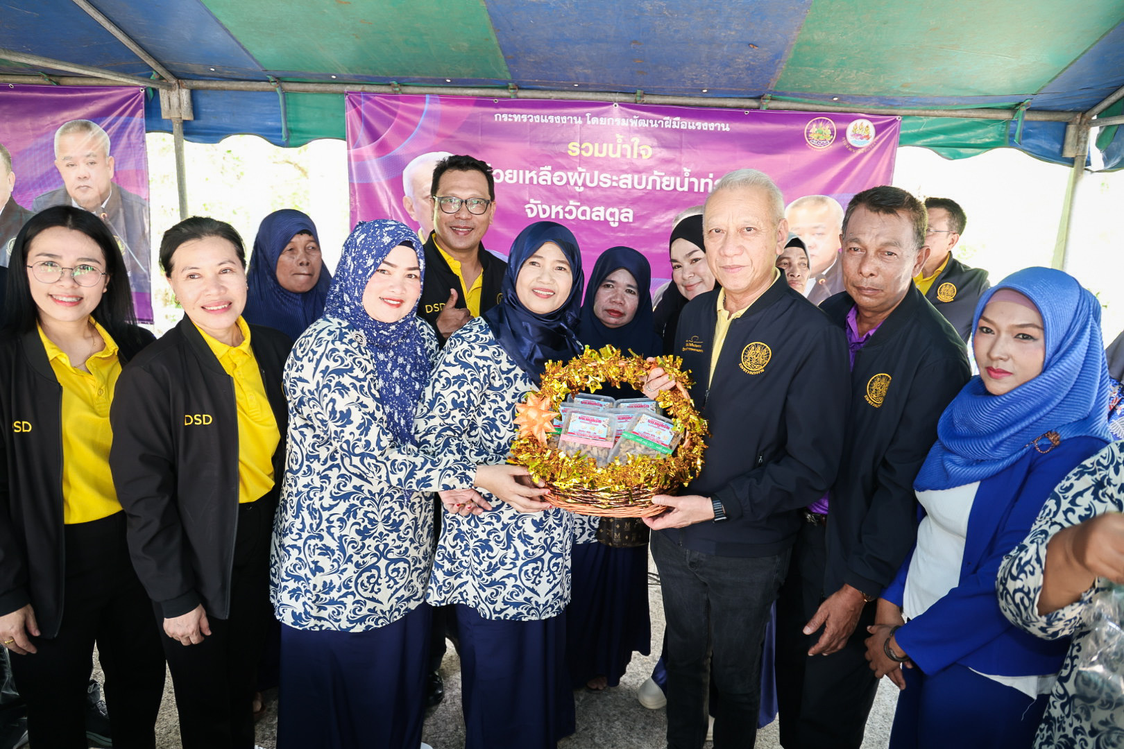 Mr. Phiphat mentioned that he visited Satun Province to assist flood victims. The majority of villagers in Satun are farmers and independent traders. The water levels have now returned to normal, but five districts were affected: Manang, Langu, and others. Today, over 300 relief packages were distributed, with the Satun Provincial Prison contributing 80 packages. Additionally, booths were showcasing the careers of gig workers and equipment repair services. The two distribution points in Satun Province were the first at the Chalung Subdistrict Administrative Organization in Mueang Satun District and the second at the Tha Phae District Community Hall. Village headmen and subdistrict headmen acted as representatives to receive the relief packages and distribute them to the affected residents.