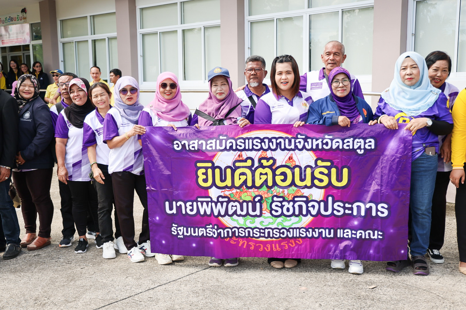 On December 6, 2024, Mr. Phiphat Ratchakitprakarn, Minister of Labor, stated, “Today, I, along with Mr. Phuchong Worasri, assigned to the Office of the Prime Minister and currently serving at the Ministry of Labor; Mr. Somchai Morakotsriwan, Director-General of the Department of Employment; Mr. Decha Phruekpattanarak, Director-General of the Department of Skill Development; Lieutenant Commander Saroj Khomkhai, Director-General of the Department of Labor Protection and Welfare; Ms. Jirapa Boonrat, Deputy Secretary-General of the Social Security Office; and Mr. Nanthachai Panyasurarit, Director of the Social Security Office, have come to this event. Additionally, Mr. Boonsong Thapchaiyut, Permanent Secretary of the Ministry of Labor, assigned Mr. Santi Nantasuwan, Inspector-General of the Ministry of Labor, and Ms. Kornjirat Phongchansatorn, Assistant Permanent Secretary of the Ministry of Labor, to participate. Heads of the Ministry of Labor’s departments in Satun Province, local administrative organizations, community leaders, labor graduates, labor volunteers, and local residents joined in welcoming us. Mr. Sakra Kapilkan, Governor of Satun Province, delivered a welcome speech.”