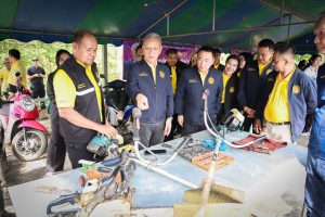 Mr. Phiphat continued by outlining the Ministry of Labor’s measures to assist flood victims in the southern provinces. The Ministry will focus on restoring the affected areas once the floodwaters have receded, a situation that is already improving. The Department of Skill Development will establish a center called “Repair, Create, Happiness,” aimed at repairing electrical appliances and motorcycles that have been flooded. A team of approximately 300 technicians from the South will be mobilized to repair electrical appliances, work equipment, houses, motorcycles, and small agricultural engines that were submerged in water, with the goal of returning them to working conditions. In the seven affected provinces, it is estimated that at least 1,000 motorcycles were damaged by the flood, with repairs set to begin on December 20. The Ministry will also request budget support for a project designed to address employment challenges, offering work opportunities for people once the floodwaters have receded so they can return to their usual occupations as quickly as possible. Other labor-related measures include reducing the contribution rate and extending the contribution period for insured employees. Employees whose workplaces were flooded and who had to stop working can apply for unemployment benefits due to force majeure. They can also register for unemployment insurance online through the Department of Employment’s website. In cases where an employee’s residence has been affected, preventing them from going to work or causing delays, employers are encouraged to allow employees to take time off without counting it as leave.