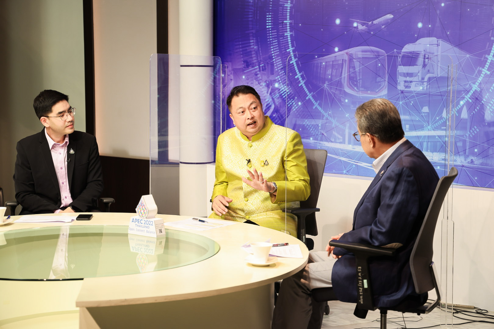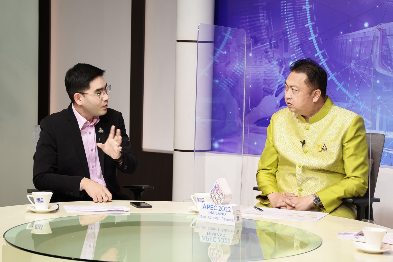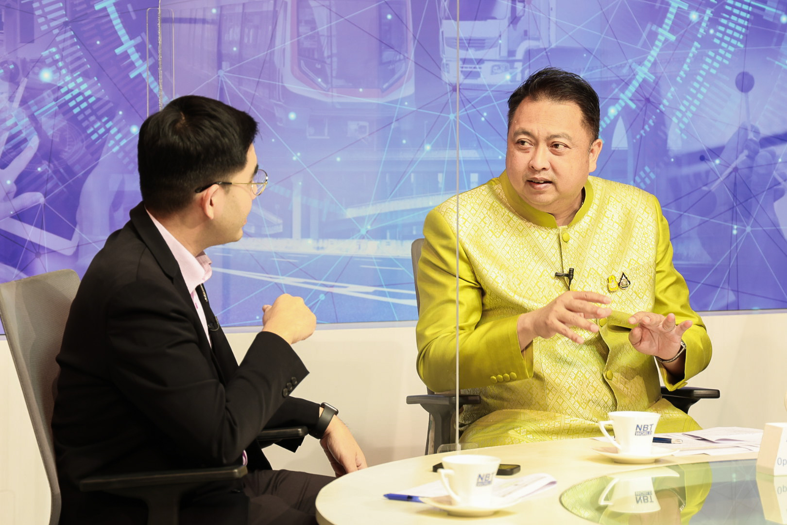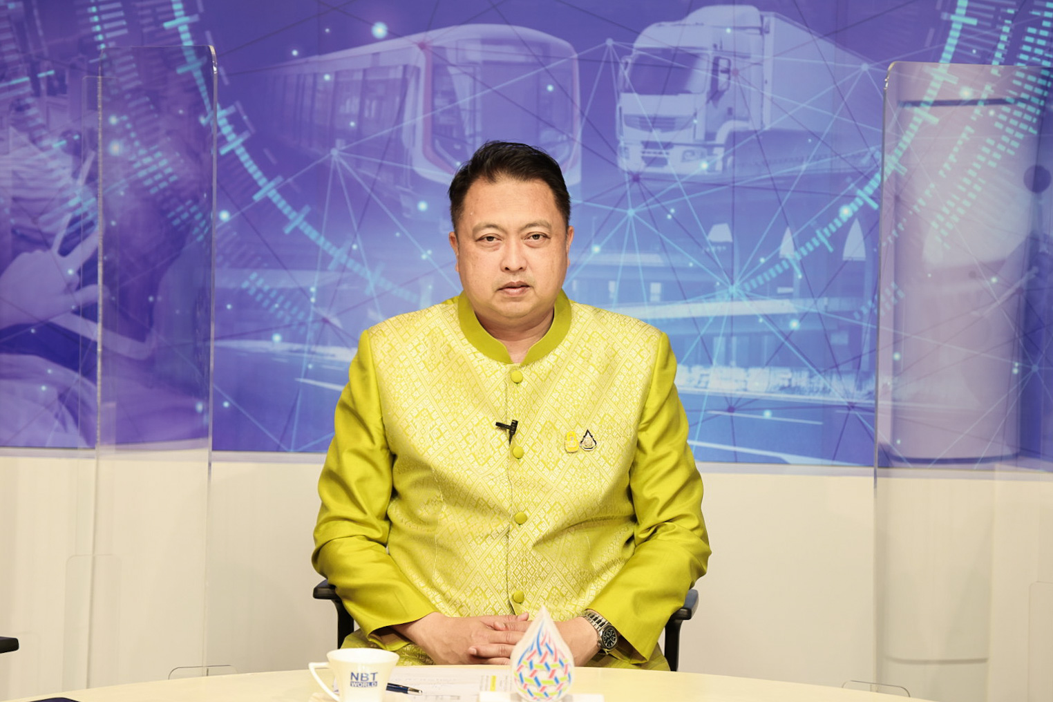 On November 1, 2022, at 16.00 hours, the Labour Minister, Mr. Suchart Chomklin, recorded an interview on the Transforming Thailand program about supporting Thai workers to travel abroad legally. The interview will broadcast on Saturday, November 5, 2022, from 15.05 to 15.55 hours on the NBT Channel. The interview took place at the News Agency Department of Public Relations.