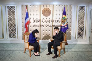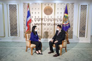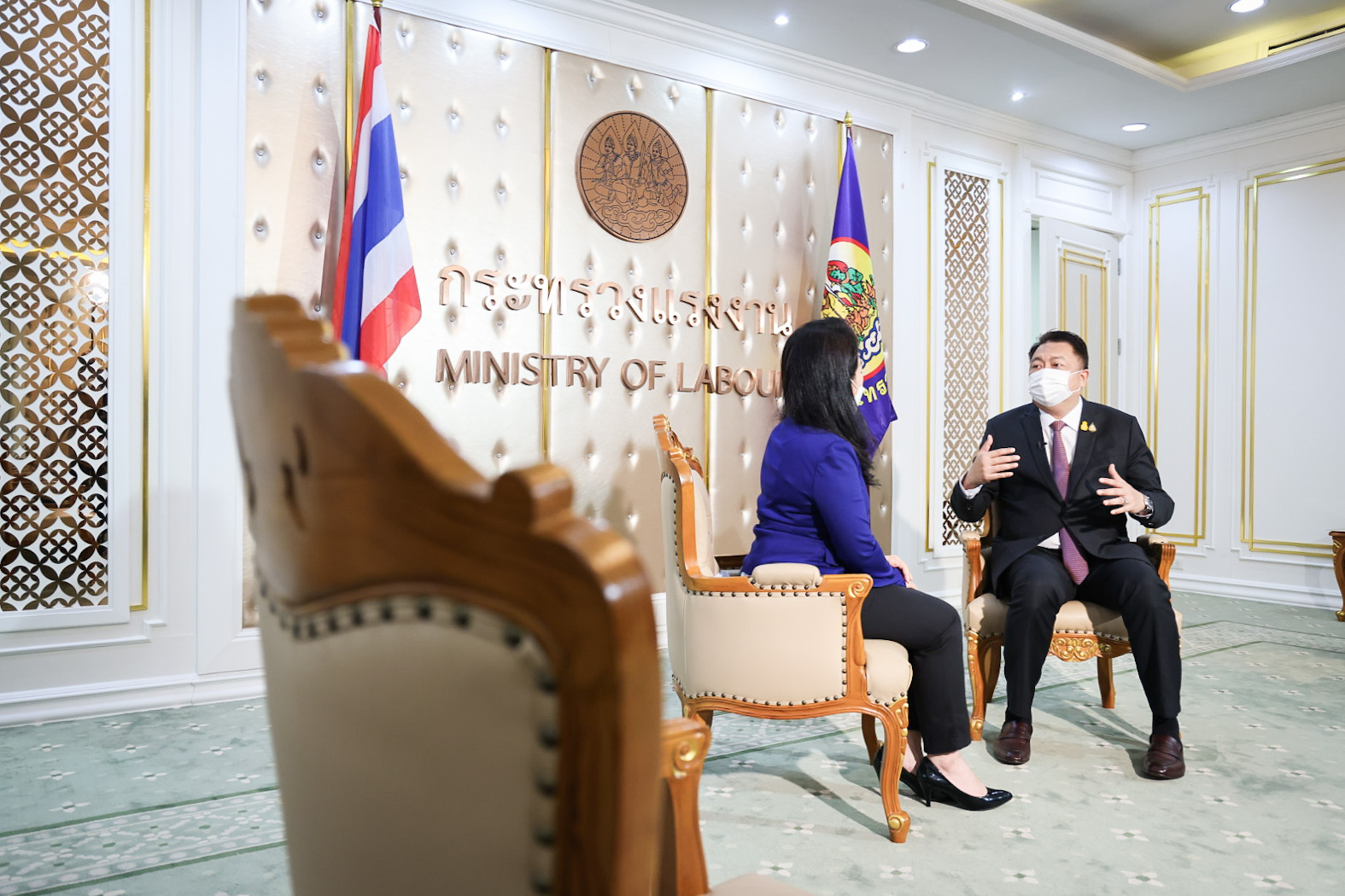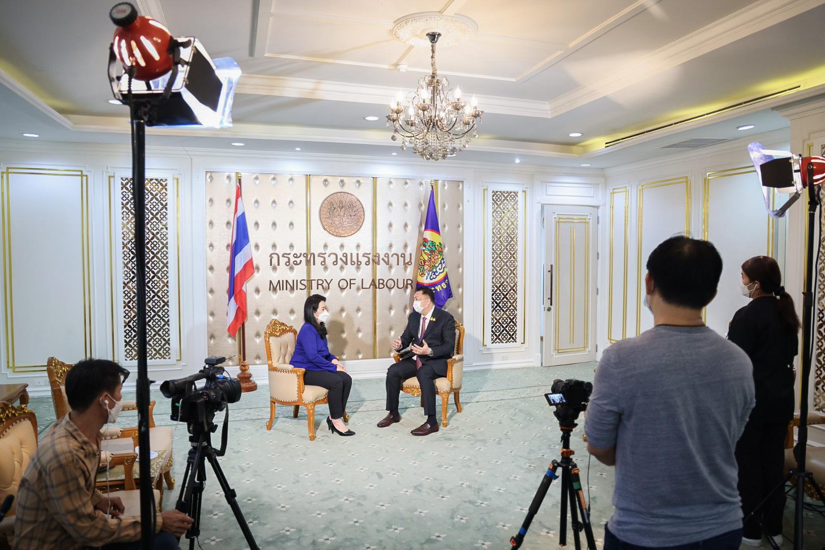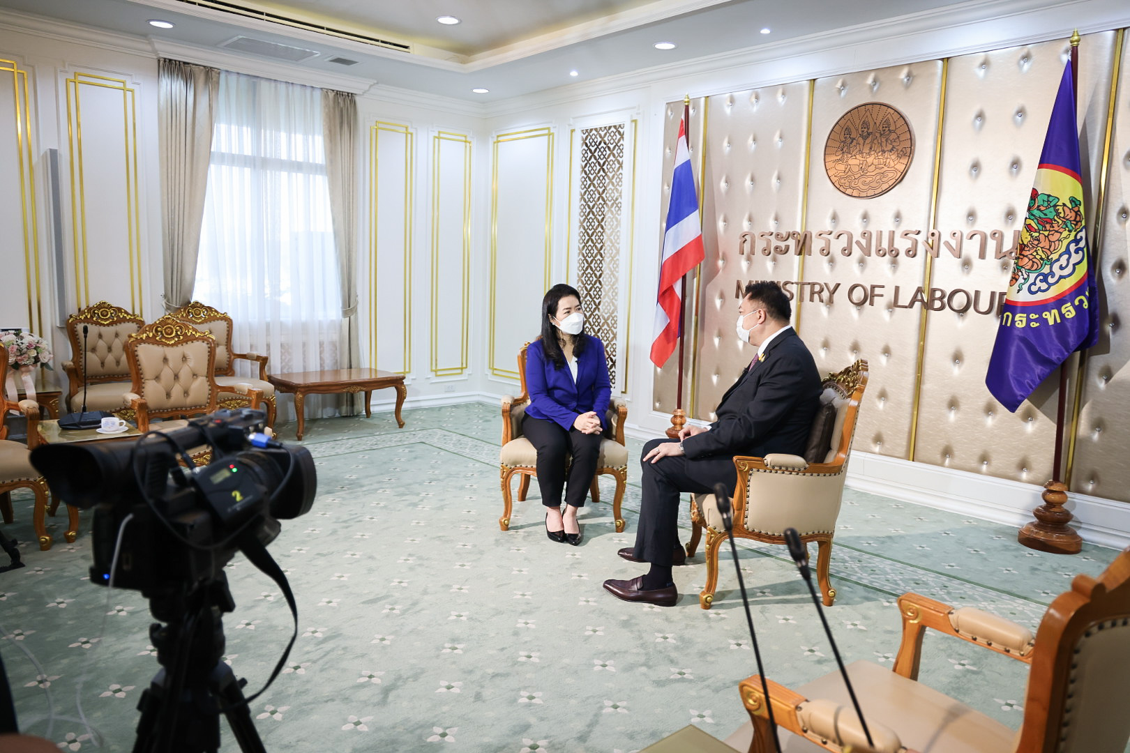 On May 12, 2022, at 09.00 hours, Labour Minister Mr. Suchart Chomklin recorded an interview with the “Direct Talk Show” on the Royal Thai Army Radio and Television Station (Channel 5 HD). The interview was on the Social Security Act (No..) B.E.….. which will broadcast on Saturday 14 and Sunday, May 15, 2022, at 17.30 hours, at the Chatumongkol Room, 6th floor, Ministry of Labour.
