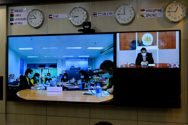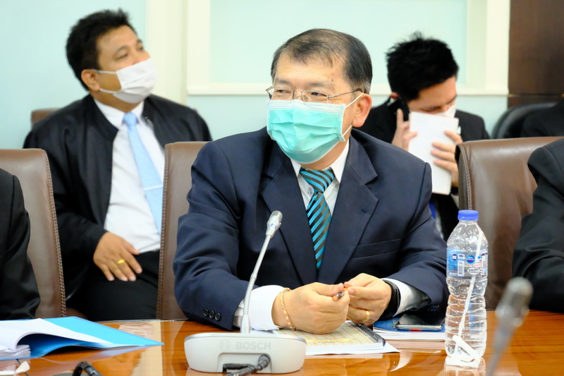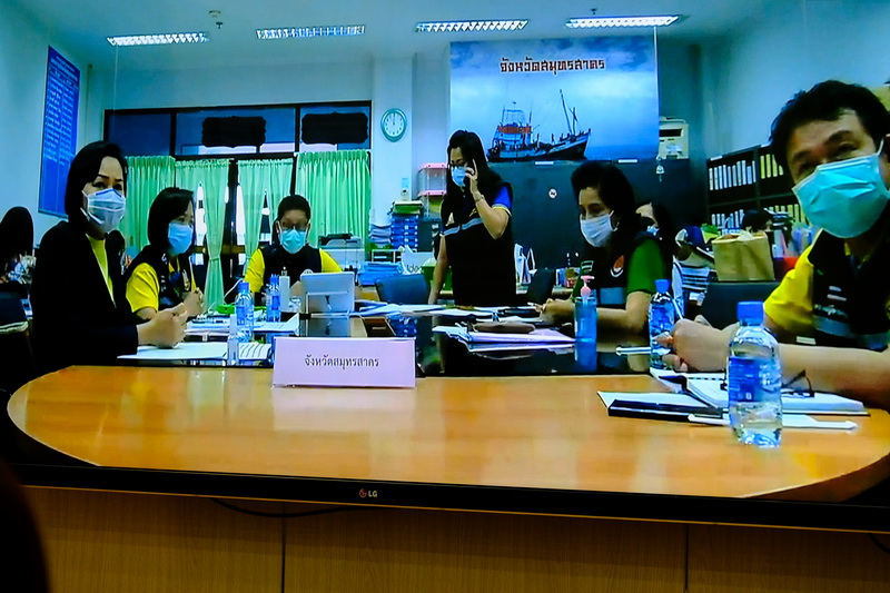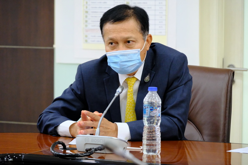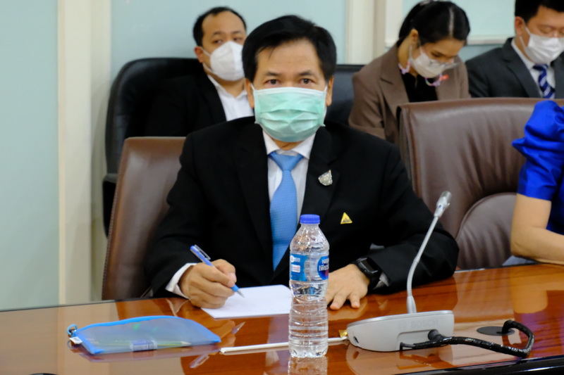 On December 20, 2020, Labour Minister Mr. Suchart Chomklin chaired a video conference to monitor the situation of the Covid-19 pandemic and suggested proactive Covid-19 screening operations among migrant workers in workplaces under the social security system in Samut Sakhon. The Labour Minister approved an interpreter to communicate with migrant workers in the workplace, get tested for infection with hospitals in the social security network, and know the screening results within 24 hours. The measure facilitates quicker actions in preventing the spread of Covid-19. Advisor to the Labour Minister Mrs. Thiwalrat Angkinan, the Labour Minister’s Secretariat Mr. Suthep Chitayavong, the Permanent Secretary of Labour Mr. Suthi Sukosol and the Ministry of Labour’s executives also joined the meeting at the Sangsingkeaw meeting room, 5th floor, Ministry of Labour.