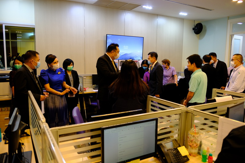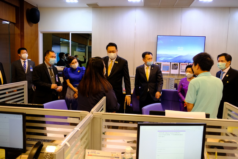 After the meeting, the Labour Minister together with his Advisor, Secretariat, Permanent Secretary of Labour, and the Ministry of Labour’s executives, visited and gave words of encouragement to workers in taking issues reported by the people who contacted the Ministry of Labour’s 1506 hotline, press 5 for the Ministry of Labour’s Center for Covid-19 Situation Administration (MOL CCSA), at the 5th floor, Ministry of Labour.