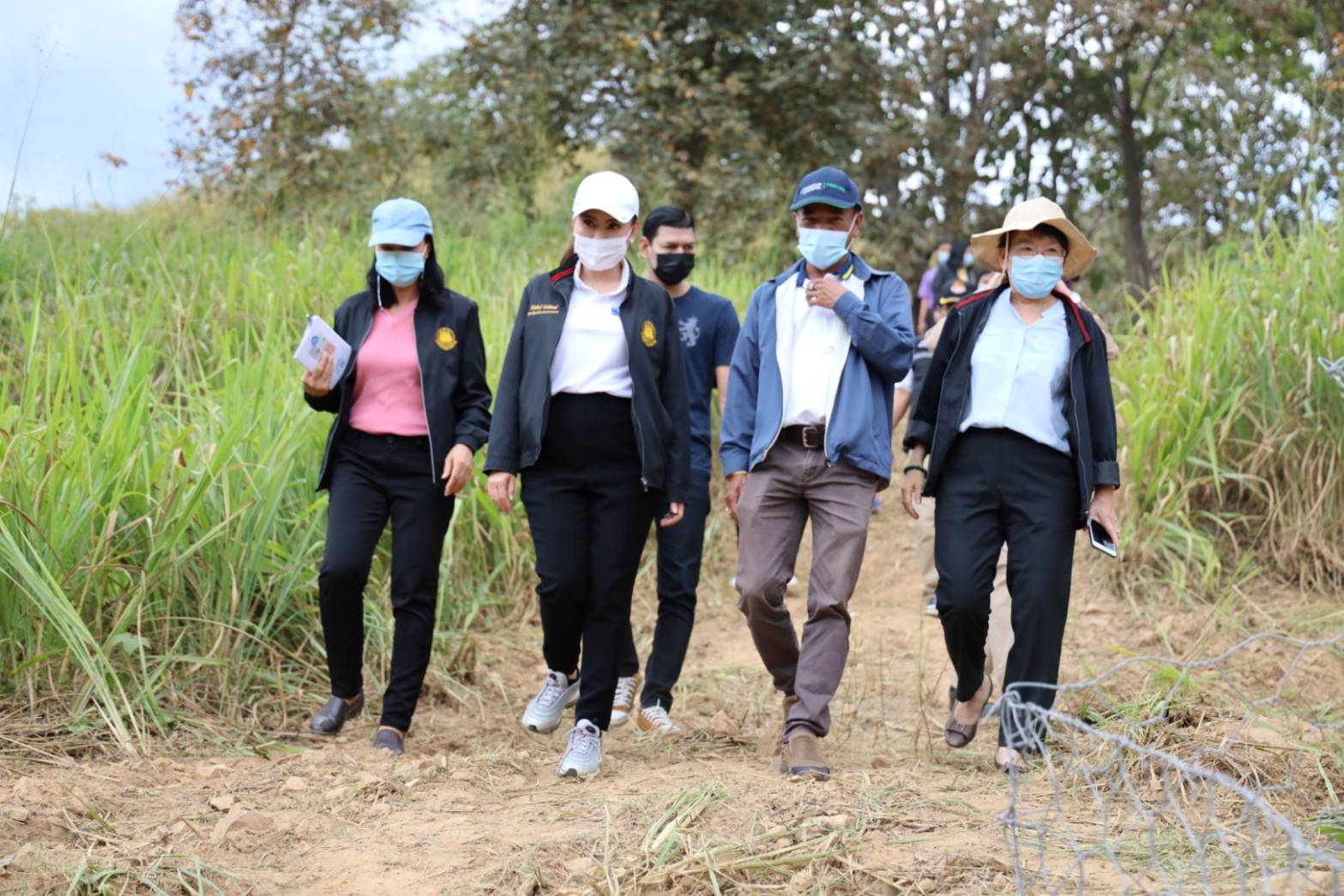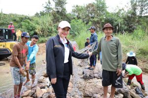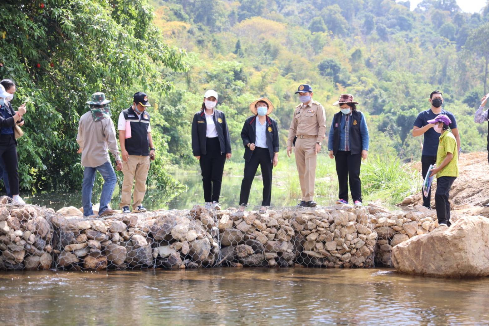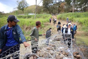 In the afternoon, Mrs. Thiwalrat also observed the projects to alleviate Prachuap Khiri Khan’s occupational problems for 2021. The urgent employment activity in constructing gabion box water retarding dams is 20 meters wide and 1 meter high. There are two areas with 10 participants each, for a total of 20 people. The activity provides urgent employment for the unemployed, people with no income, and those with occupational distress, providing temporary work by hiring them to do various jobs related to the public interest or employing them in another job which is approved by the Provincial Natural Disaster Victims Center Committee of the Ministry of Labour. Participants are paid a daily allowance of 300 Baht per day, not exceeding ten days per person.