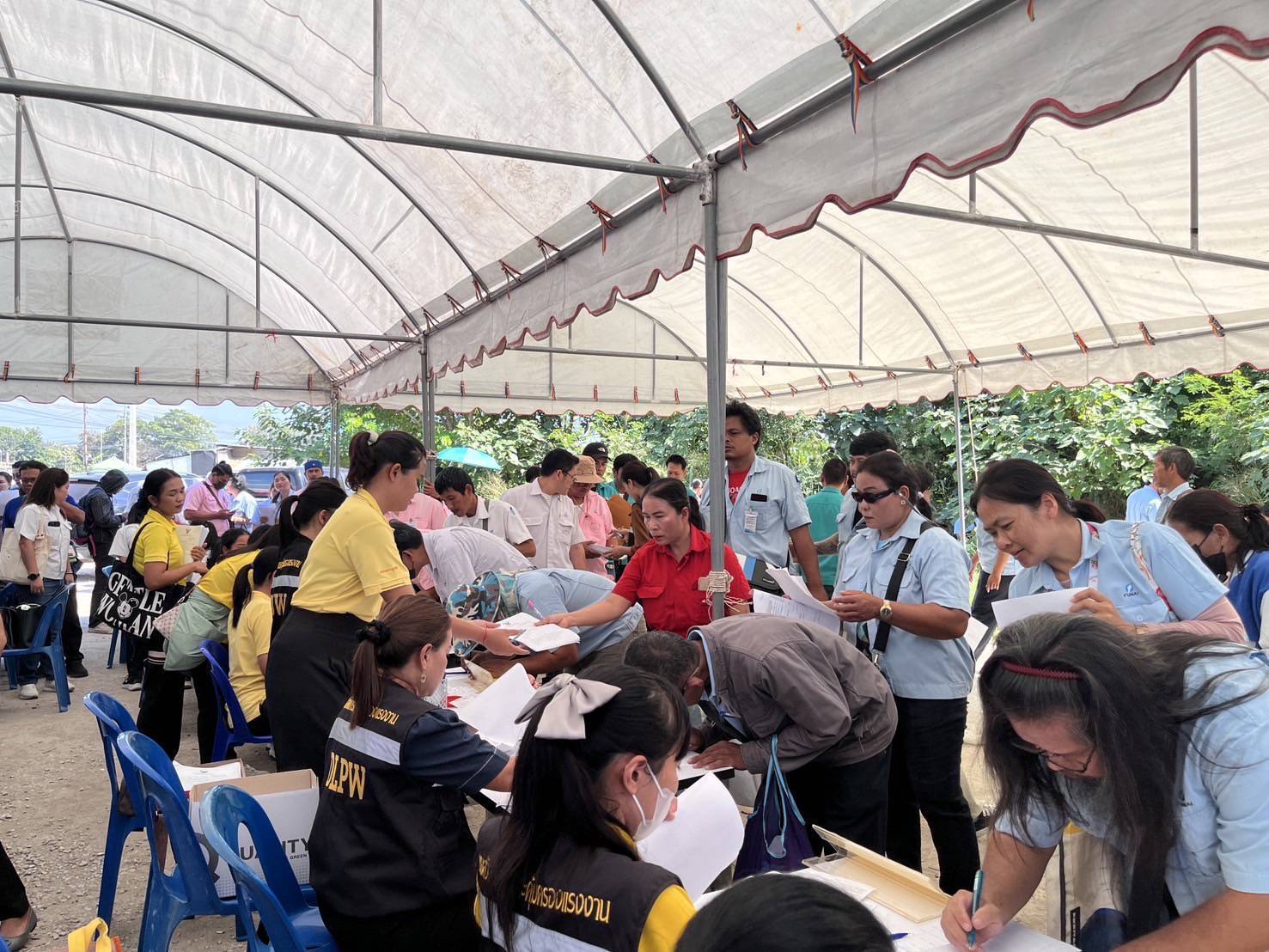 The Permanent Secretary of Labour, Mr. Boonsong Thapchaiyut said that he received a report from the Labour Officer of Nakhon Ratchasima Province yesterday (November 13, 2024), that agencies under the Ministry of Labour of Nakhon Ratchasima Province, along with the District Chief of Pak Chong, Superintendent of Pak Chong Police Station, Office of the Attorney General for the Protection of Rights and Legal Assistance and Enforcement of Nakhon Ratchasima Province (Pak Chong Branch), jointly visited the area to provide assistance and facilitate employees impacted by the company closing down. Support was offered in the area opposite the company. The agencies under the Ministry of Labour of Nakhon Ratchasima Province proceeded as follows: 1) Accepting employee petitions (Kor. 7), investigating the facts of employee, employer, and company representatives, considering the issuance of an order for labour inspectors to instruct the employer to pay wages in lieu of advance notice, compensation, and other payments in accordance with the Labour Protection Act. 2) Accepting registrations, reporting insured persons in the case of unemployment, and registering for jobs through the thaimeengantum system. 3) Explaining social security benefits in the case of unemployment and being laid off. 4) Creating a Google form to recruit for ten training courses and surveying employee training needs. 5) Preparing support in the area, preparing a place, drinking water, and food for employees.