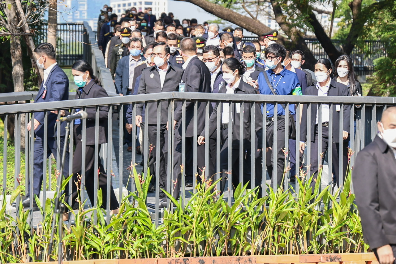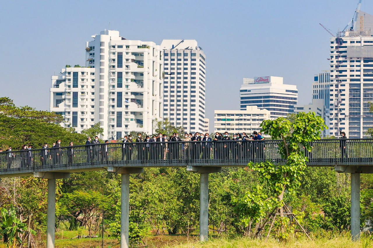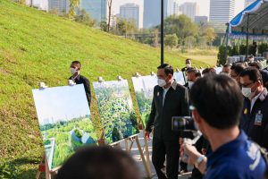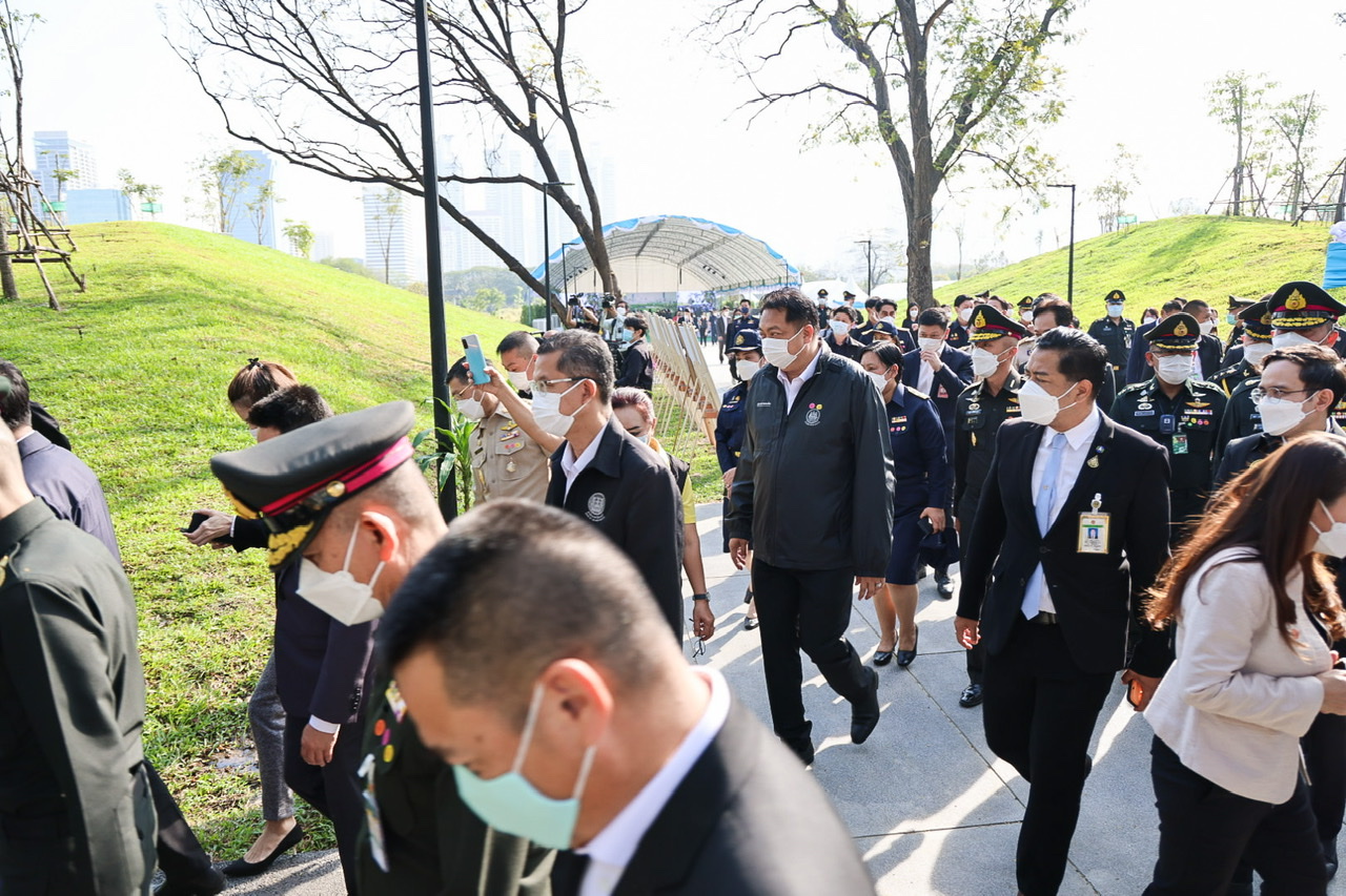 Today (December 17, 2021) at 09.00 hours, Prime Minister and Minister of Defence General Prayuth Chan-ocha and Labour Minister Mr. Suchart Chomklin joined as witnesses the signing of the memorandum of handing over some parts of the “Benjakitti” forest park phase 2 and 3, between the Royal Thai Army and the Treasury Department, and the Treasury Department and the Bangkok Metropolitan Administration. The Royal Thai Army has completed the construction of construction site one, which has an area of approximately 160 rai, one ngan, 76 square wa. The representatives of all three units consisted of 1) the Royal Thai Army, General Siripoj Rampaikul, Chairman of the Advisory Board of the Royal Thai Army, 2) the Treasury Department, Mr. Praphas Kong-iad, Director-General of the Treasury Department, and 3) Bangkok Metropolitan Administration, Khachit Chatchavanich, Permanent Secretary of the BMA. The three parties signed the memorandum of handing over and receiving some parts of the “Benjakitti” forest park phase 2 and 3. The Prime Minister handed over a letter of authorization to use the royal property to the Bangkok Metropolitan Administration.