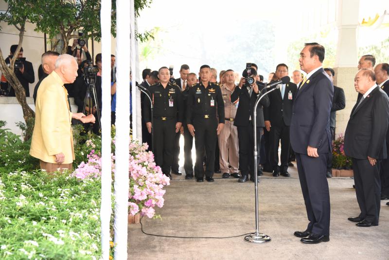 On December 27, 2018, at 09.00 hours, General Prem Tinsulanonda, President of the Privy Council and Statesman received a blessing on the occasion of the 2019 New Year’s from Prime Minister General Prayut Chan-ocha, who led the Cabinet and army commanders. Labour Minister H.E. Police General Adul Sangsingkeo also joined gave a New Year’s blessing at the Thewet Four-Pillar House.