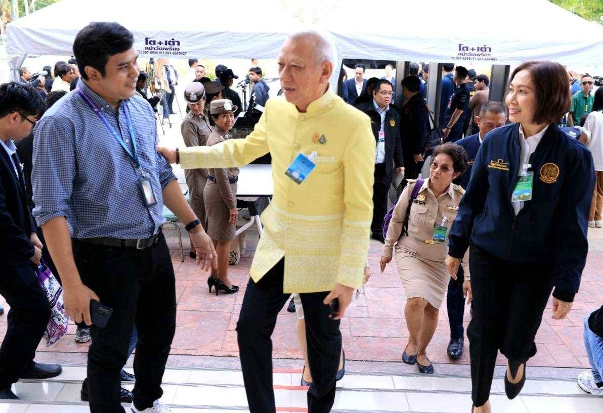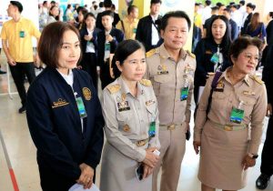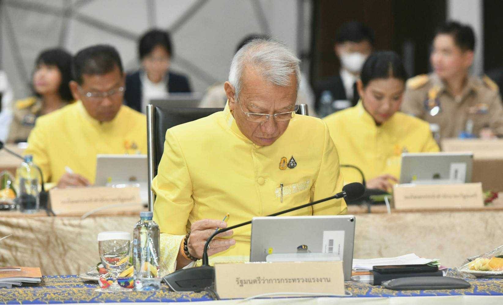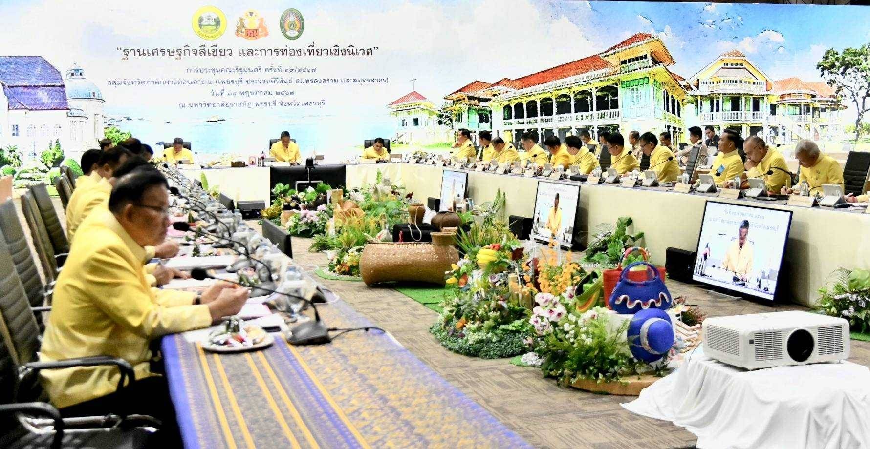 On May 14, 2024, at 09.30 hours, the Labour Minister, Mr. Phiphat Ratchakitprakarn, participated in the Cabinet’s Official Offsite Meeting No. 3/2024 on “Green Economy Base and Eco-Tourism” in the Lower Central Province Group 2 (Prachuap Khiri Khan, Phetchaburi, Samut Songkhram and Samut Sakhon). The Prime Minister, Mr. Srettha Thavisin, presided over the meeting. Before the Cabinet meeting, the Prime Minister and the Cabinet visited various exhibitions. The Ministry of Labour’s Inspector-General, Mrs. Marasri Jairangsi, and heads of government agencies under the Ministry of Labour in Phetchaburi Province joined in the welcome at the Phanom Kaew Kamnerd meeting room, 2nd floor, Sumet Tantivejkul Building, Phetchaburi Rajabhat University, Na Wung Subdistrict, Mueang Phetchaburi District, Phetchaburi Province.