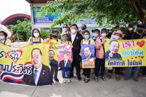 Labour Minister Mr. Suchart Chomklin joined Deputy Prime Minister General Prawit Wongsuwan’s delegation on a government inspection of Nonthaburi Province. Nonthaburi Provincial Governor Mr. Sujin Chaichumsak gave a welcoming. The Ministry of Labour’s Spokesperson (on Politics), Mrs. Thienrat Navamawat, Advisor to the Labour Minister Mr. Chamlong Chuayrod, the Ministry of Labour’s Inspector-General, Mrs. Darunee Nithithaweekul, the Ministry of Labour’s executives, and heads of government agencies from the Ministry of Labour in Nonthaburi Provinces gave a welcoming. This visit monitored the water situation and the Phra Phimon Canal development plan for the Nonthaburi – Nakhon Pathom Provinces, 2022 – 2027. The delegation also listened to the presentation on the role, and participation of network partners in the Khlong Phra Phimon area, joined the community products exhibition and met with the people in the area. The occasion took place at the Sai Yai Temple, Sai Noi Subdistrict, Sai Noi District, and Nonthaburi Province.