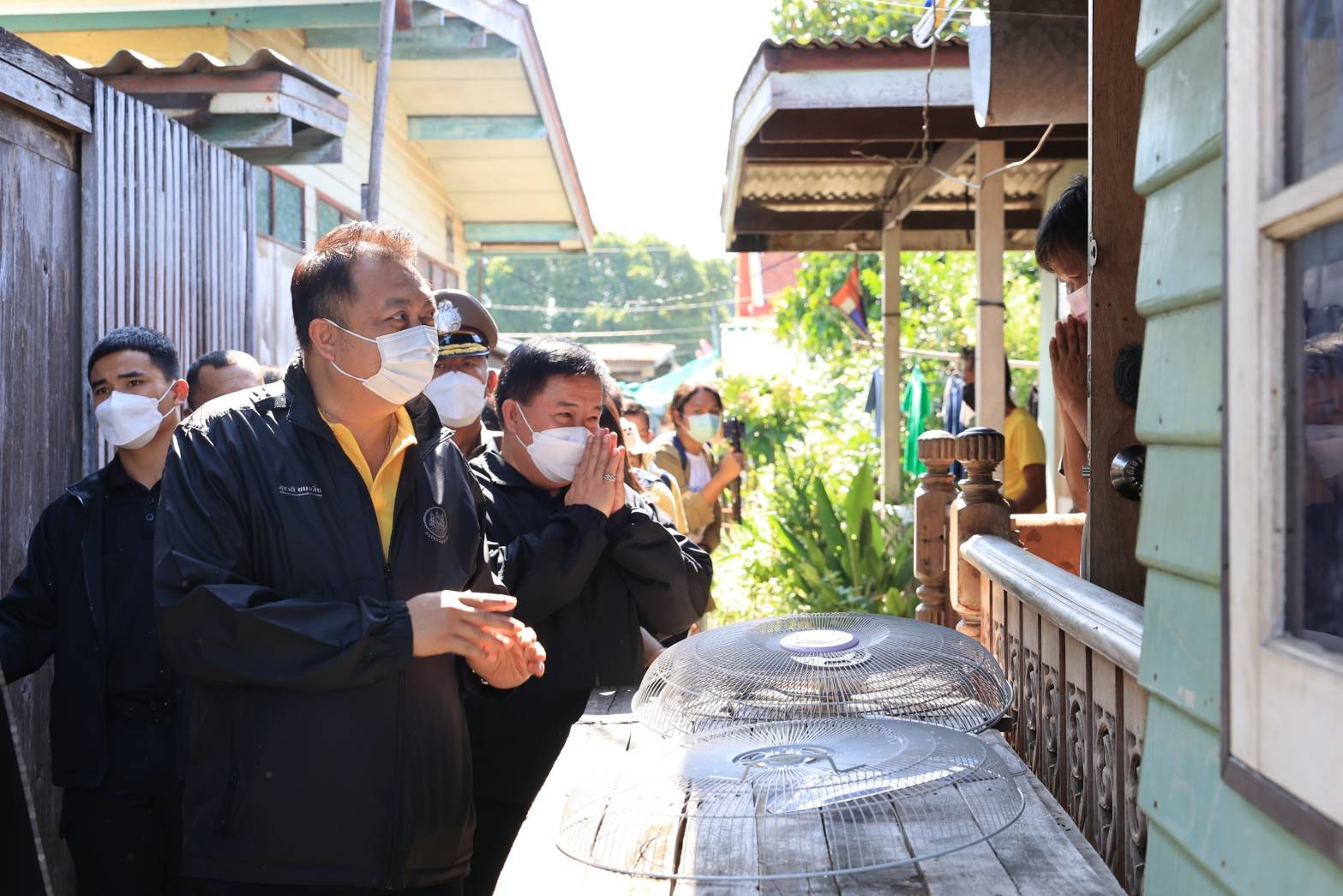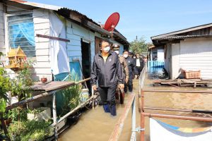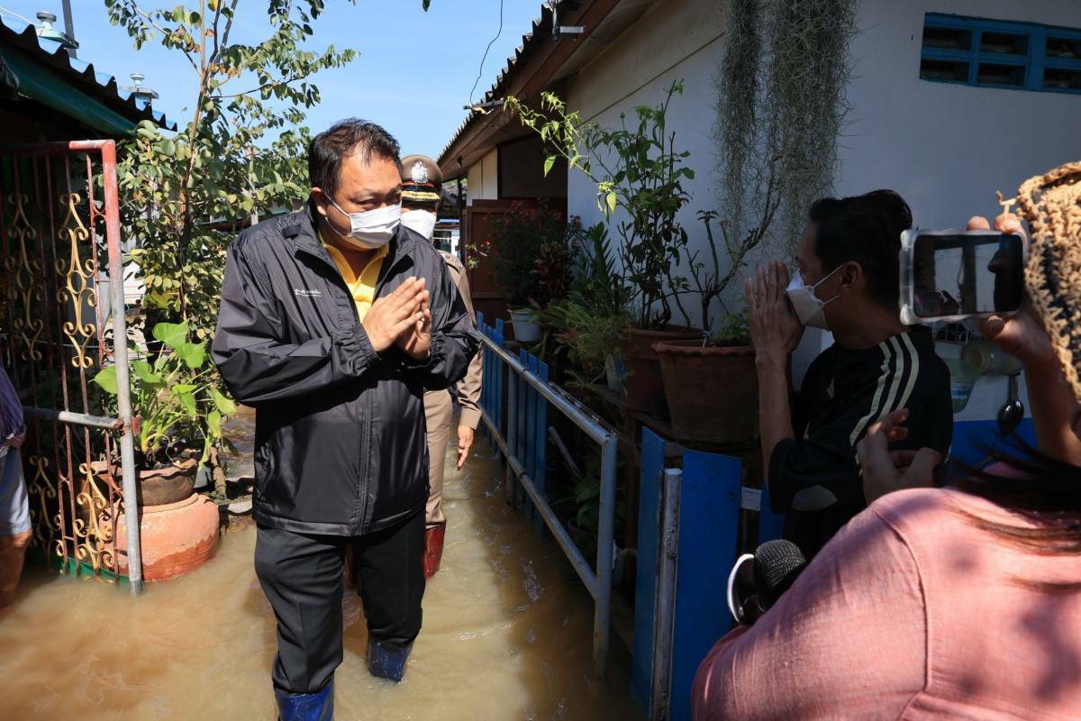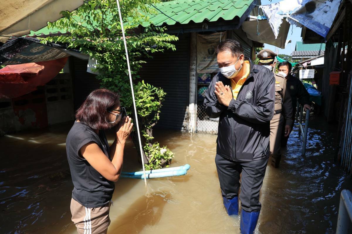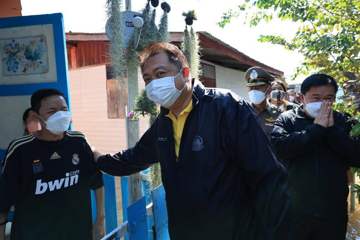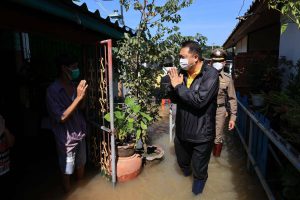 On October 13, 2022, the Labour Minister, Mr. Suchart Chomklin, joined the delegation of the Prime Minister and Minister of Defense, General Prayuth Chan-ocha, to visit the area, to monitor and resolve flooding issues for the people and establishments in Wat Saeng Siritham, Tha It Subdistrict, Pak Kret District, Nonthaburi Province. Provincial governors, heads of government agencies involved, labour volunteers, and community members in the area welcomed the delegation.
