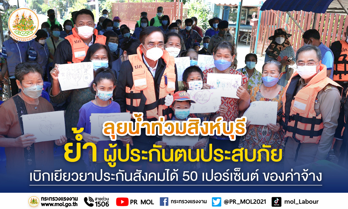 Mr. Suchart continued that Singburi Province has announced flood-affected areas in six districts: In Buri, Mueang Tha Chang, Phrom Buri, Bang Rachan, and Bang Rachan Camp. People have suffered in 24 subdistricts and 145 villages, affecting 18,575 households. There have been six deaths, including three insured and three non-insured persons. The Ministry of Labour’s Provincial Social Security Office in Singburi has paid benefits and assistance to deceased insured persons’ dependents, totaling 1,091,419.42 Baht. Additionally, the Ministry of Labour’s agencies has worked with provincial agencies to set up a war room to receive incident reports and coordinate assistance in distributing consumer goods to flood victims in the area. The Singburi Skill Development Office has set up a center to help affected people repair services for electrical appliances and small agricultural tools. From a survey of flood victims in Singburi Province, thirteen workers from agencies under the Ministry of Labour in Singburi were affected, including fifteen labour volunteers in Singburi, out of 43 labour volunteers. There were 1,571 company employees with homes that were flooded and seven workplaces that were flooded. People, employers, employees, and insured persons who have been affected by the flood in each area and need support from the Ministry of Labour’s agencies, can contact the Ministry of Labour’s 1506 hotline.