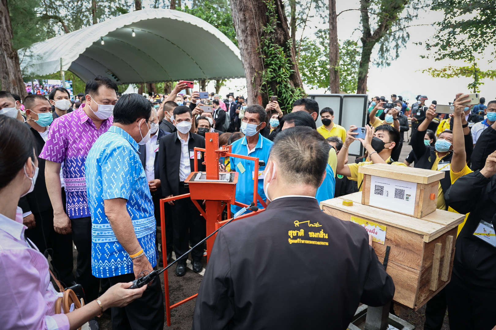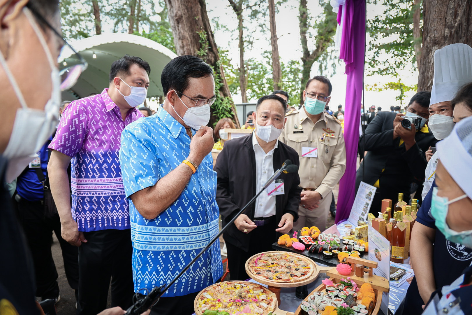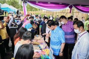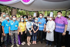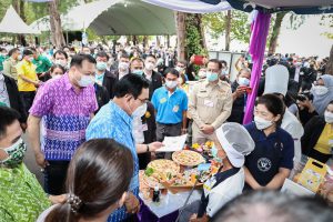 On this occasion, the Labour Minister led the Prime Minister to visit the Ministry of Labour’s activity booths which brought products from groups that have been successful from the promotion of vocational training from the Ministry of Labour’s agencies in Krabi Province. The groups included the Ban Nai Nang Bee Farming Community Enterprise, formed by gathering members of the bee-keeping professions in rubber plantations, raised around their houses, for example. The Krabi Skill Development Office has carried out knowledge and skill development provided to members through workshops to increase productivity, reduce wastage and reduce the loss of productivity from the bees moving the group’s hives. It also promotes the use of defective materials and non-standard honeycomb columns to increase revenue by reducing honeycomb relocation by 10 percent, representing 63,000 Baht per year. The effort reduces labour losses and saves time by 50 percent through increased labour productivity. It generates income for the group, for at least 300,000 Baht per year. The Bagan Batik group also joined the event. The group’s members were trained in a profession that can be used as an additional occupation, with an income of 10,000 – 20,000 Baht per month. A group of elderly people formed the Five Suea Community Group with different knowledge, abilities, and wisdom in each occupation. The Krabi Employment Office has implemented a project to promote occupations for the elderly, expand employment opportunities and increase income. For such groups, there has been a training course for the development of the elderly’s potential to become speakers to pass on wisdom so that everyone can pass on their knowledge to other people or groups. It generates an average income for members at 25,000 Baht per month. The Khlong Thom Community Enterprise Group members who passed the training can grow into a career to increase income and be a lecturer in sharing knowledge to other groups with an average income of 5,000 – 10,000 Baht per month. Other occupational groups included healthy herbs, pastries, bakeries, herbal juice, the European food group, the women’s tailoring group, fabric painting, and embroidery.