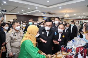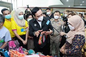 Before the meeting, labour volunteer leaders at the subdistrict level and Yala labour graduates who serve to publicize the Ministry of Labour’s information, news, work, and missions to people in the area, also joined the welcoming. The Prime Minister met the people and showed encouragement and appreciation for supporting the Ministry of Labour and the people in the area. The Labour Minister then led the Prime Minister to visit the Ministry of Labour’s activity booths in Yala Province. The booths showcased products from successful occupational groups from professional training promotion. For example, the occupational group in sewing bags made from Patek cloth, the Luk Yee Krisrahmanh product group, the crispy roti, chilled roti community enterprise group, and the agricultural market community occupation promotion group.