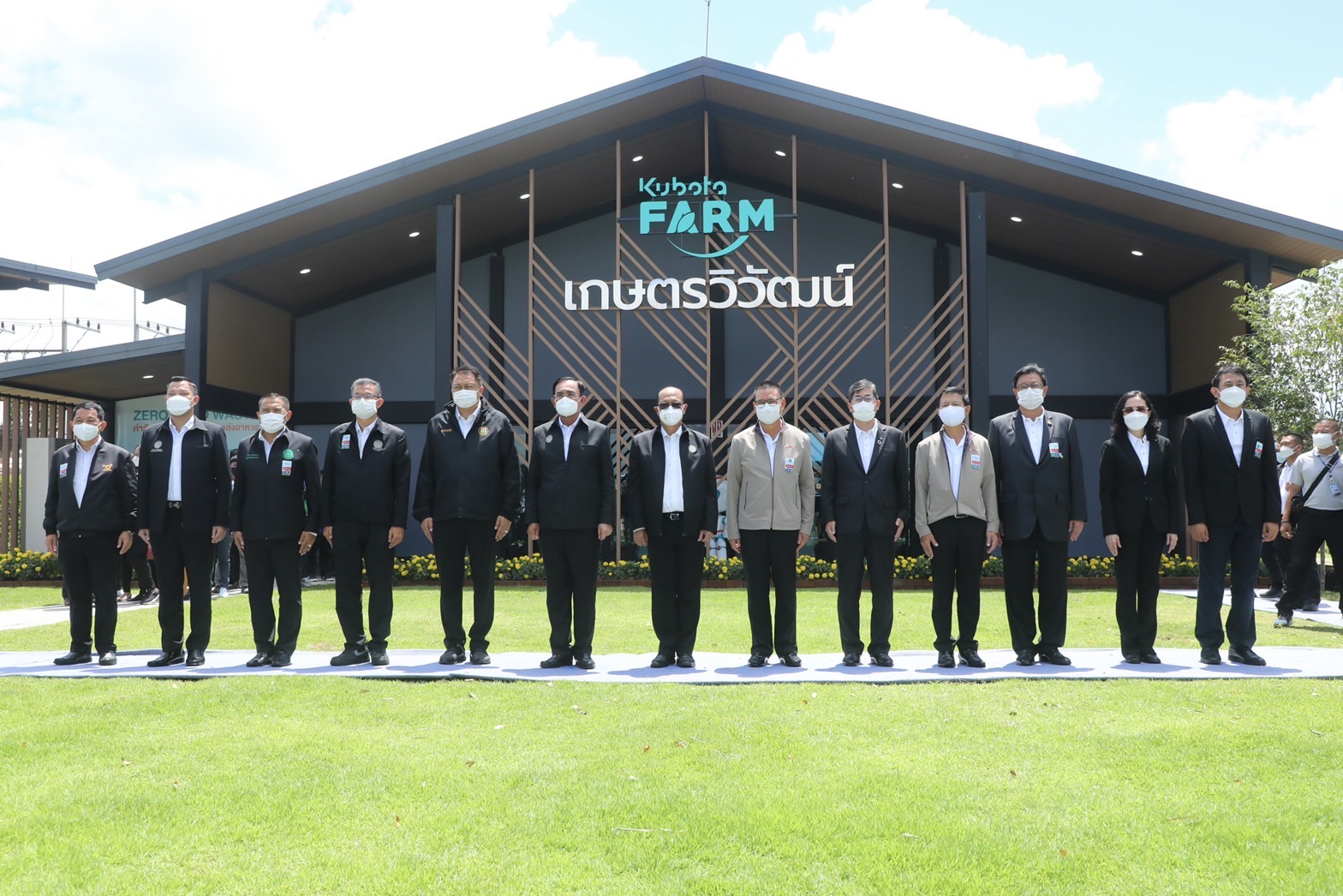 On May 9, 2022, Labour Minister Mr. Suchart Chomklin joined the delegation of Prime Minister and Minister of Defense General Prayuth Chan-ocha on a visit to observe Kubota Farm’s operations and discuss ways to develop Thai agriculture towards Smart Farming. The occasion took place at the meeting room in Kasetwiwat Building, Kubota Farm, Nong Irun Subdistrict, Ban Bueng District, Chonburi Province. President of Siam Kubota Corporation Co., Ltd., Mr. Takanobu Azuma, welcomed the delegation. Governor of Chonburi Province, Mr. Pakakorn Thianchai, the Ministry of Labour’s Spokesperson (on politics), Mrs. Thienrat Navamawat, the Department of Employment’s Director-General, Mr. Pairoj Chotiksetian, the Department of Skill Development’s Director-General, Mr. Prateep Songlamyong, the Social Security Office’s Secretary-General, Mr. Boonsong Thapchaiyut, and the Ministry of Labour’s executives also joined the welcoming.
