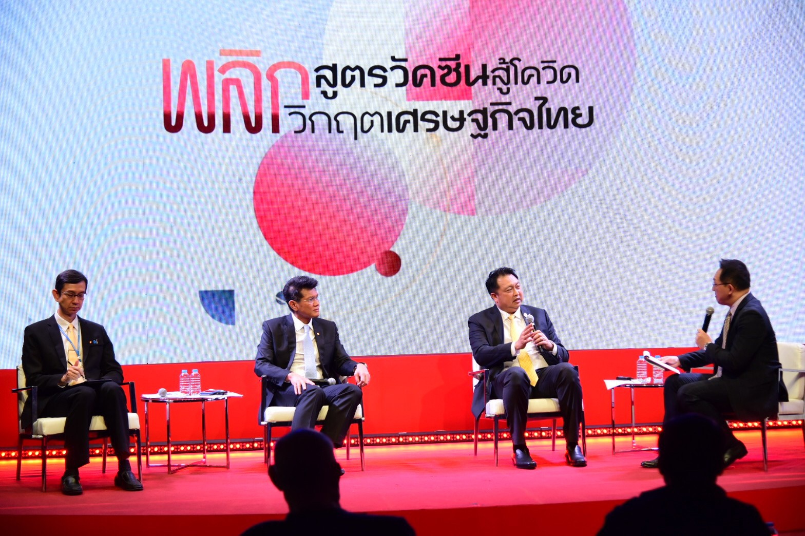 On February 4, 2021, at 10.00 hours, Labour Minister Mr. Suchart Chomklin joined as a speaker at the seminar on “Changing the vaccine formula against Covid-19 to turn the Thai economic crisis” through live streaming organized by Matichon newspaper. Deputy Prime Minister and Minister of Public Health Mr. Anutin Charnvirakul presided over the opening ceremony and gave the opening speech at Matichon Public Company Limited’s office building.