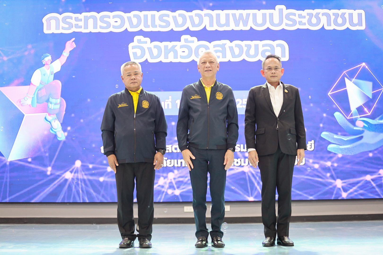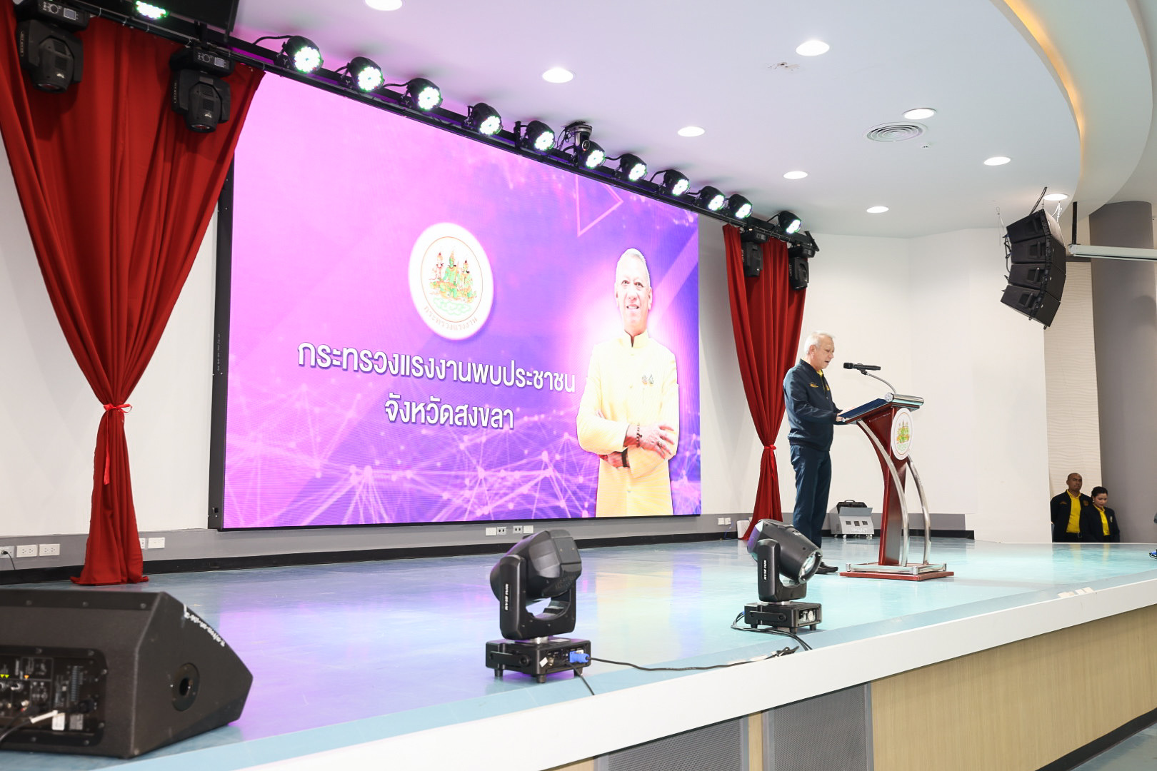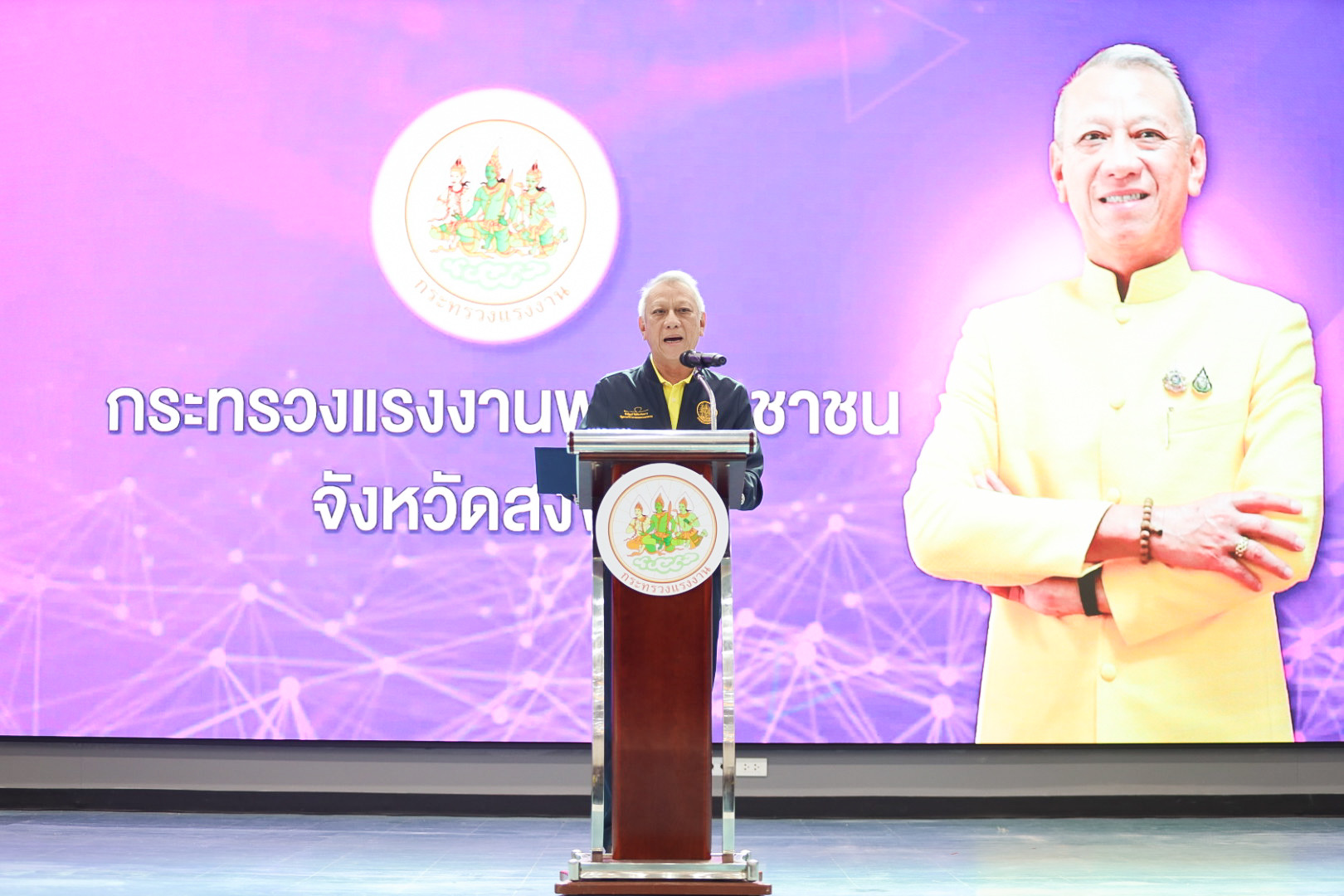 On January 19, 2025, Mr. Phiphat Ratchakitprakarn, Minister of Labour, chaired the opening ceremony of the Ministry of Labour’s 2025 Meet the People Project in Songkhla Province. Mr. Pairoj Chotikasathien, Chairman of the Advisory Board to the Minister of Labour, Mr. Phuchong Worasri, assigned to the Office of the Prime Minister and currently serving at the Ministry of Labour, Mr. Phumipat Mueanchan, the Ministry of Labour’s Spokesperson, Mr. Boonsong Thapchaiyut, the Permanent Secretary of Labour, Mr. Samat Pattamasukon, the Deputy Permanent Secretary of Labour, Ms. Kornjirat Phongchanthorn, Assistant to the Permanent Secretary of Labour, and the Ministry of Labour’s executives joined the occasion. Mr. Santi Nantasuwan, the Ministry of Labour’s Inspector-General and Acting Deputy Permanent Secretary of Labour, gave a report. Mr. Chotinrin Ketsom, Governor of Songkhla Province, gave a welcome speech. Heads of government agencies under the Ministry of Labour, labour volunteers, labour graduates, insured person networks, and business establishments joined in welcoming the participants at the Chuphan Meeting Room, 2nd floor, Faculty of Industrial Education and Technology, the Rajamangala University of Technology Srivijaya, Songkhla Campus, Mueang Songkhla District, Songkhla Province.
