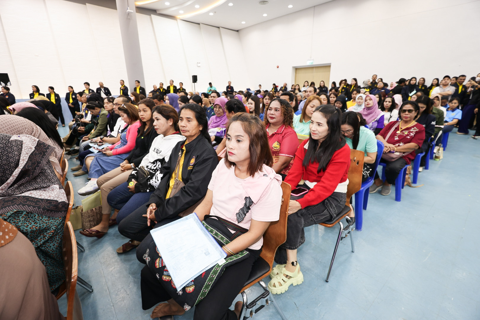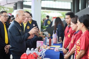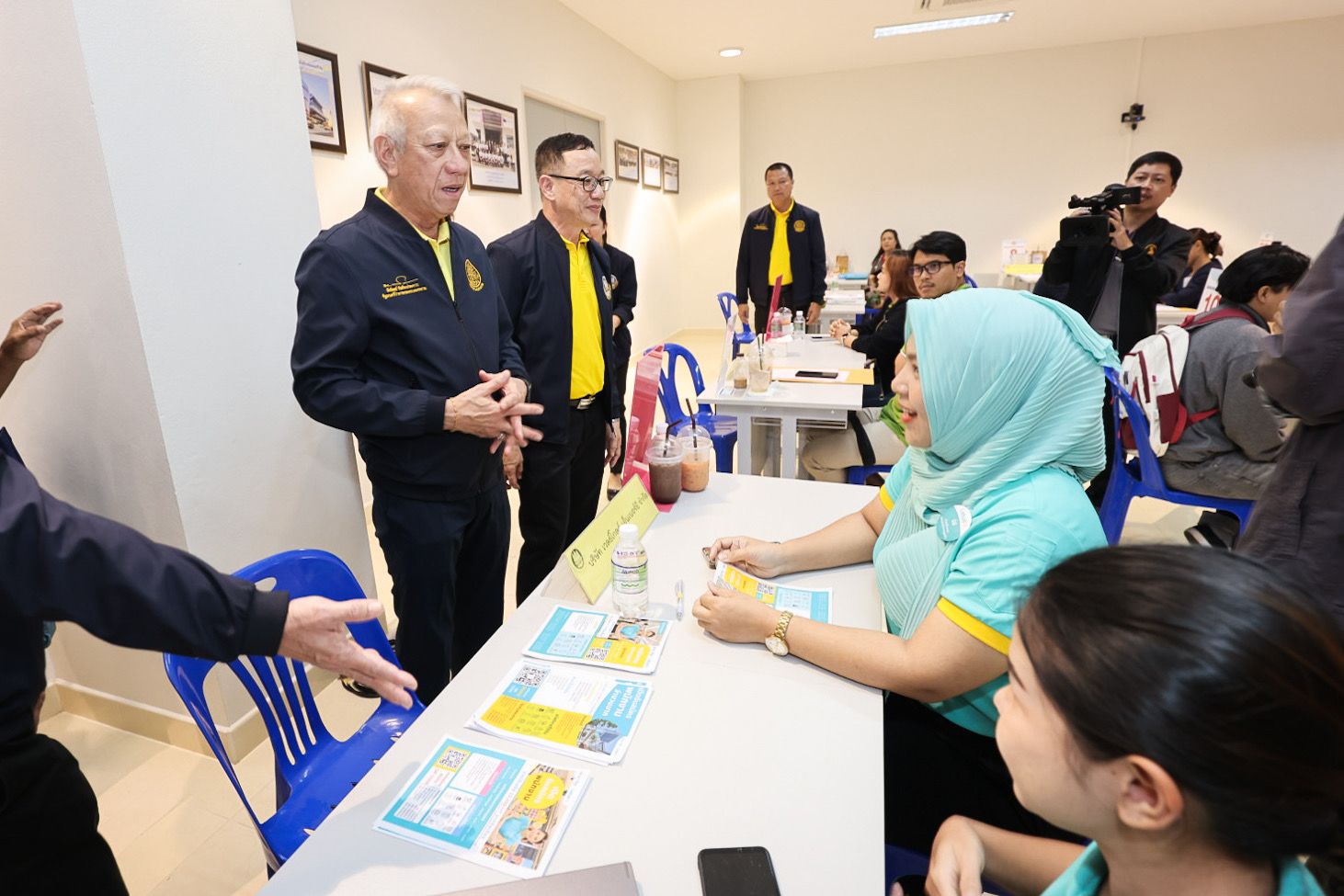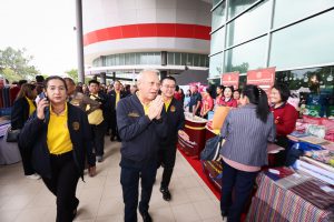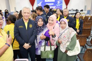 Mr. Phiphat said that the Ministry of Labour’s Meet the People Project in 2025 will bring the Ministry of Labour’s agencies’ missions and services to the people in Songkhla Province. Songkhla Province is equipped with transportation channels, including land, sea, and air, and has many businesses and high employment. Songkhla Province has a lake basin that connects 3 provinces: Songkhla, Nakhon Si Thammarat and Phatthalung. Therefore, the Ministry of Labour has made efforts to promote career development for the people in the Songkhla Lake Basin, most of whom work in agriculture and the tourism industry, to create an economic triangle and promote employment for all ages. There are over 1,000 positions, including part-time jobs for students and jobs for retirees, the elderly, vulnerable groups, and people with disabilities, to boost employment opportunities, as well as provide knowledge to freelance and home workers. It aims to promote labour protection and welfare, provide a loan fund for careers and social security benefits, and free health checks and vaccinations for the people of Songkhla Province and the southern region. He thanked the labour network, the government sector, the private sector, businesses, and the Rajamangala University of Technology Srivijaya, Songkhla Campus for supporting personnel and venues and jointly organizing the project today.