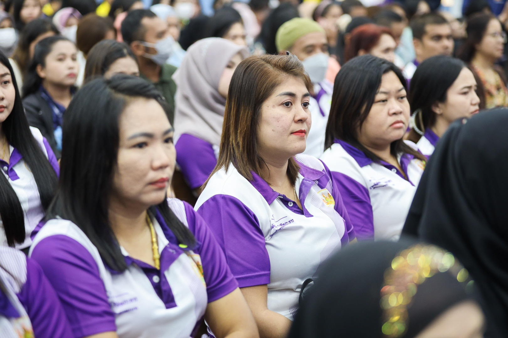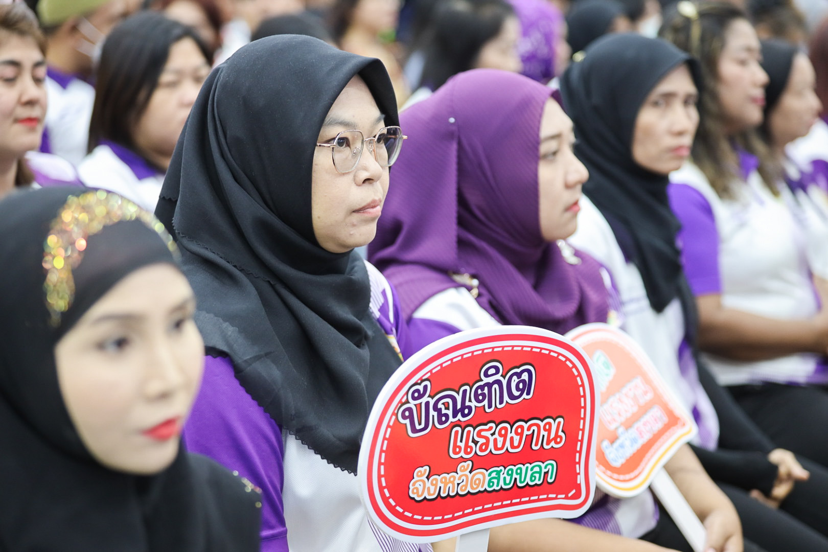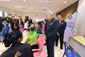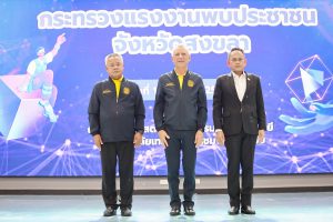Mr. Boonsong Thapchaiyut, the Permanent Secretary of Labour, said that the purpose of organizing the Ministry of Labour’s Meets the People event in Songkhla Province, is to integrate collaboration between the Ministry of Labour’s agencies in Songkhla and nearby provinces, including government and private sector networks, to integrate proactive labour missions to provide services to the people of Songkhla and nearby provinces. The activities in the event included 1) A meeting with the workforce, offering over 1,000 vacancies, 2) Social security activities under all sections and health checkups to prevent diseases by providing flu vaccinations, blood sugar level checks, and worker rehabilitation, 3) Independent worker activities with vocational training to boost income through the One Tambon One Occupation Group, 4) Activities to promote companies and good workforce practices according to the Sufficiency Economy philosophy, and 5) Academic services on safety.