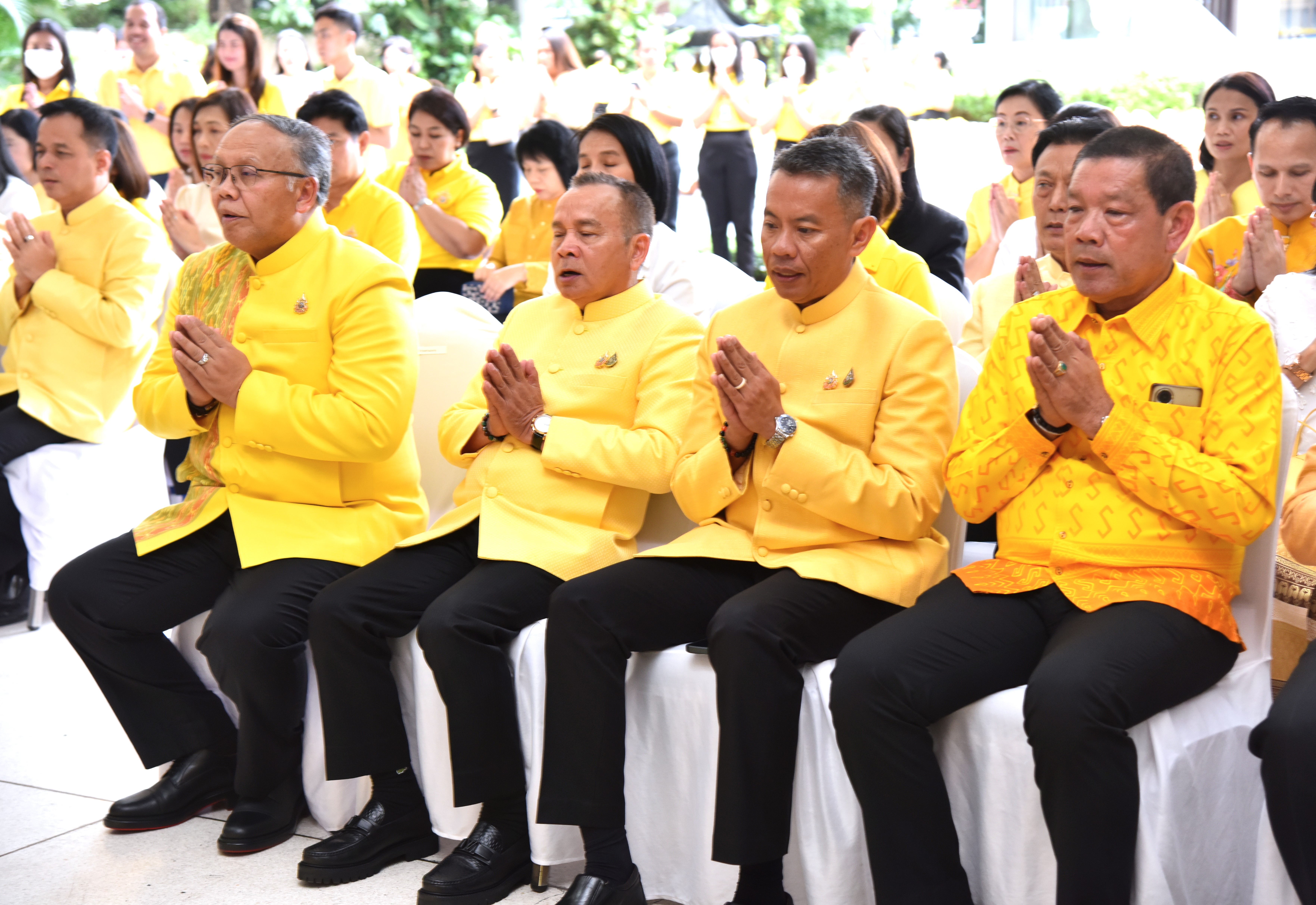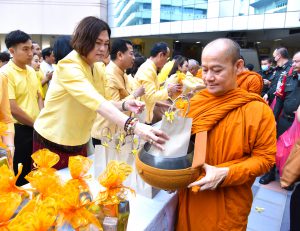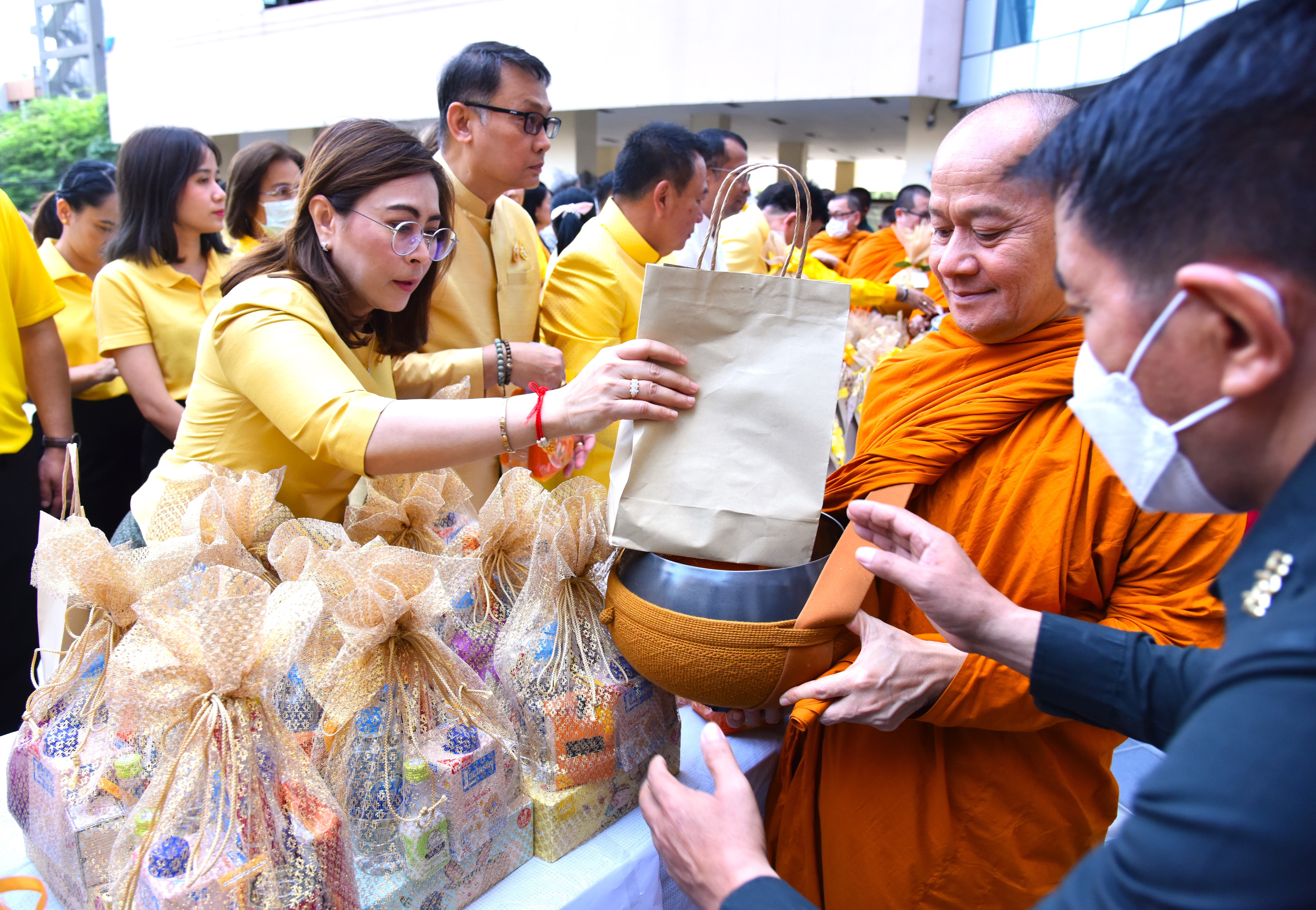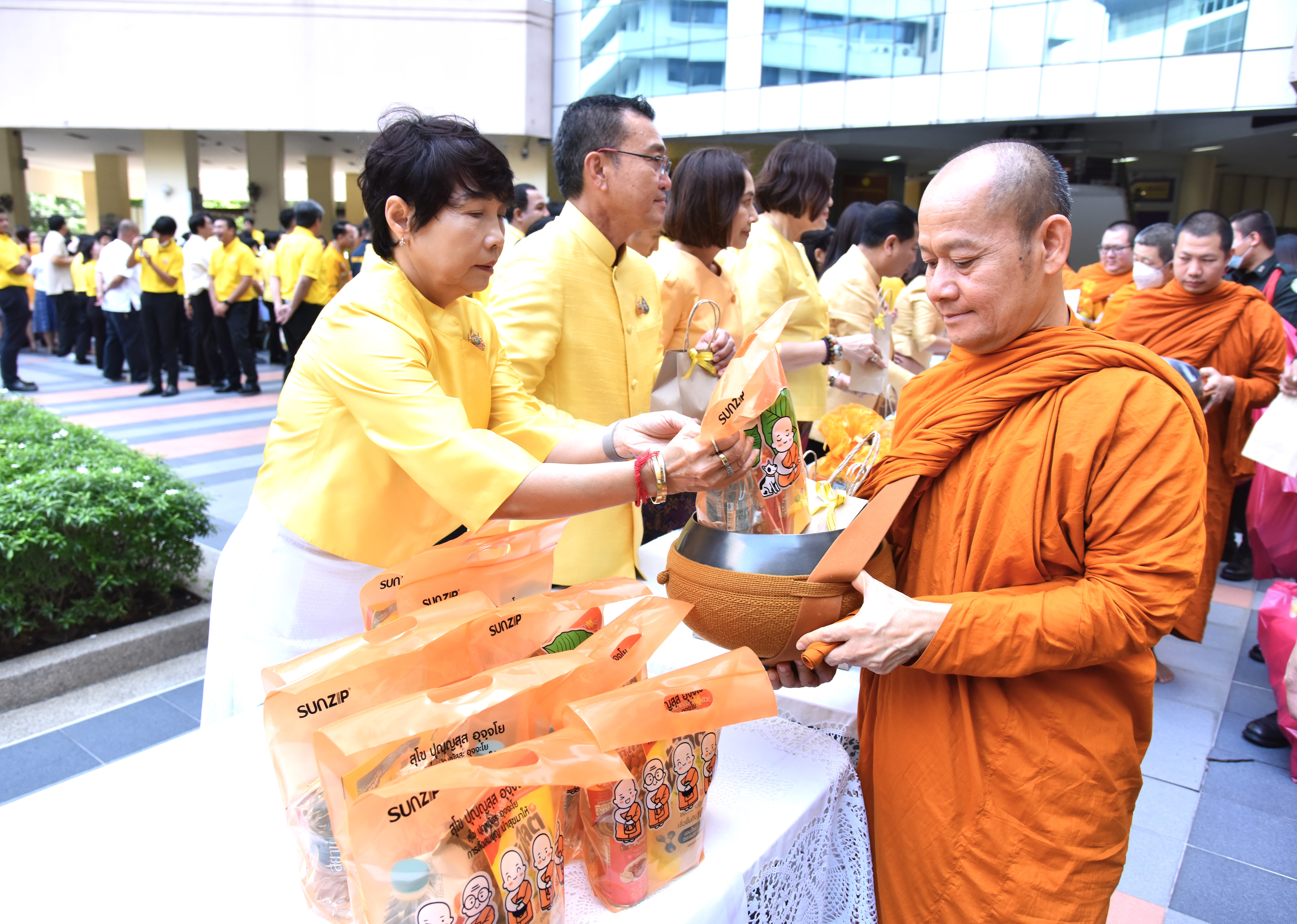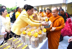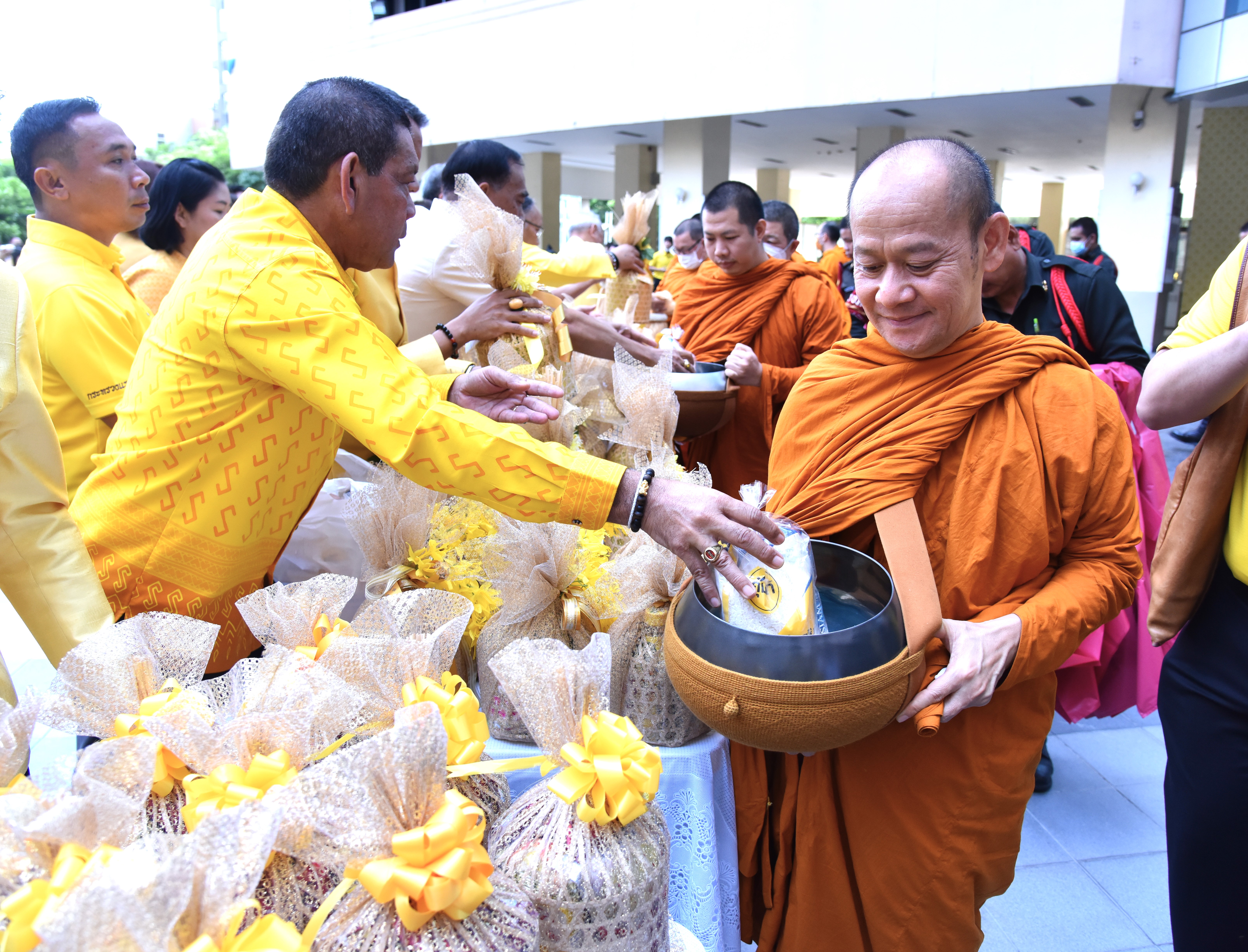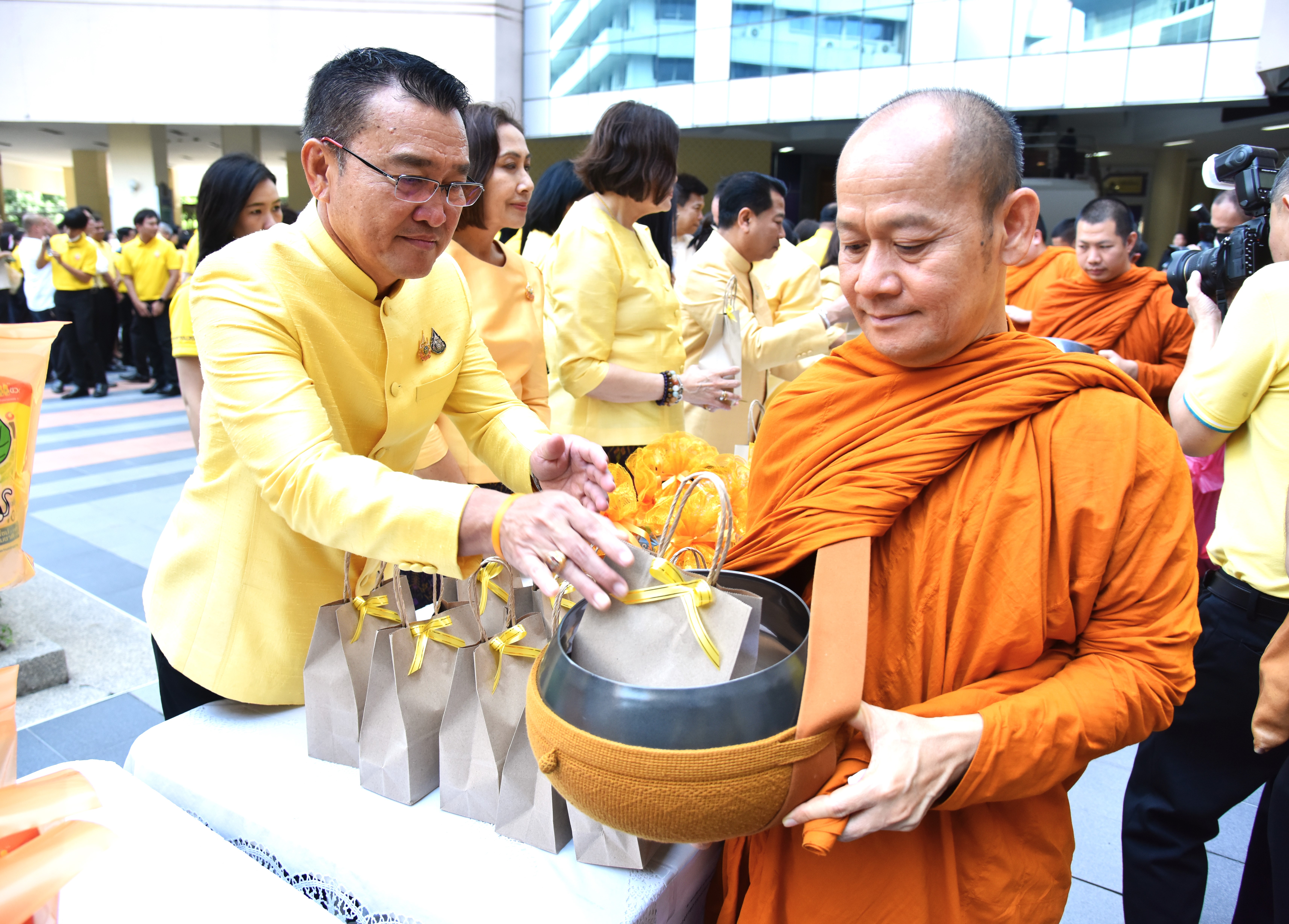 On July 17, 2024, at 08.30 hours, the Labour Minister, Mr. Phiphat Ratchakitprakarn, presided over the alms-giving ceremony to 10 monks, an activity promoting morality and ethics in Buddhism on the occasion of Asahna Bucha Day and Buddhist Lent Day 2024. The Assistant to the Labour Minister, Mr. Siraphop Duangsodsri, the Secretariat to the Labour Minister, Mr. Aree Krainara, from the Prime Minister’s Secretariat’s Office, performing duties for the Ministry of Labour, Mr. Phuchong Worasri, the Ministry of Labour’s Spokesperson, Mr. Phumiphat Mueanchan, the Permanent Secretary of Labour, Mr. Pairoj Chotikasathien, the Ministry of Labour’s executives, civil servants, and employees under the Ministry of Labour participated in activities at the ground floor hall of the Ministry of Labour building and the Phra Phuttha Sutthithambophit area.